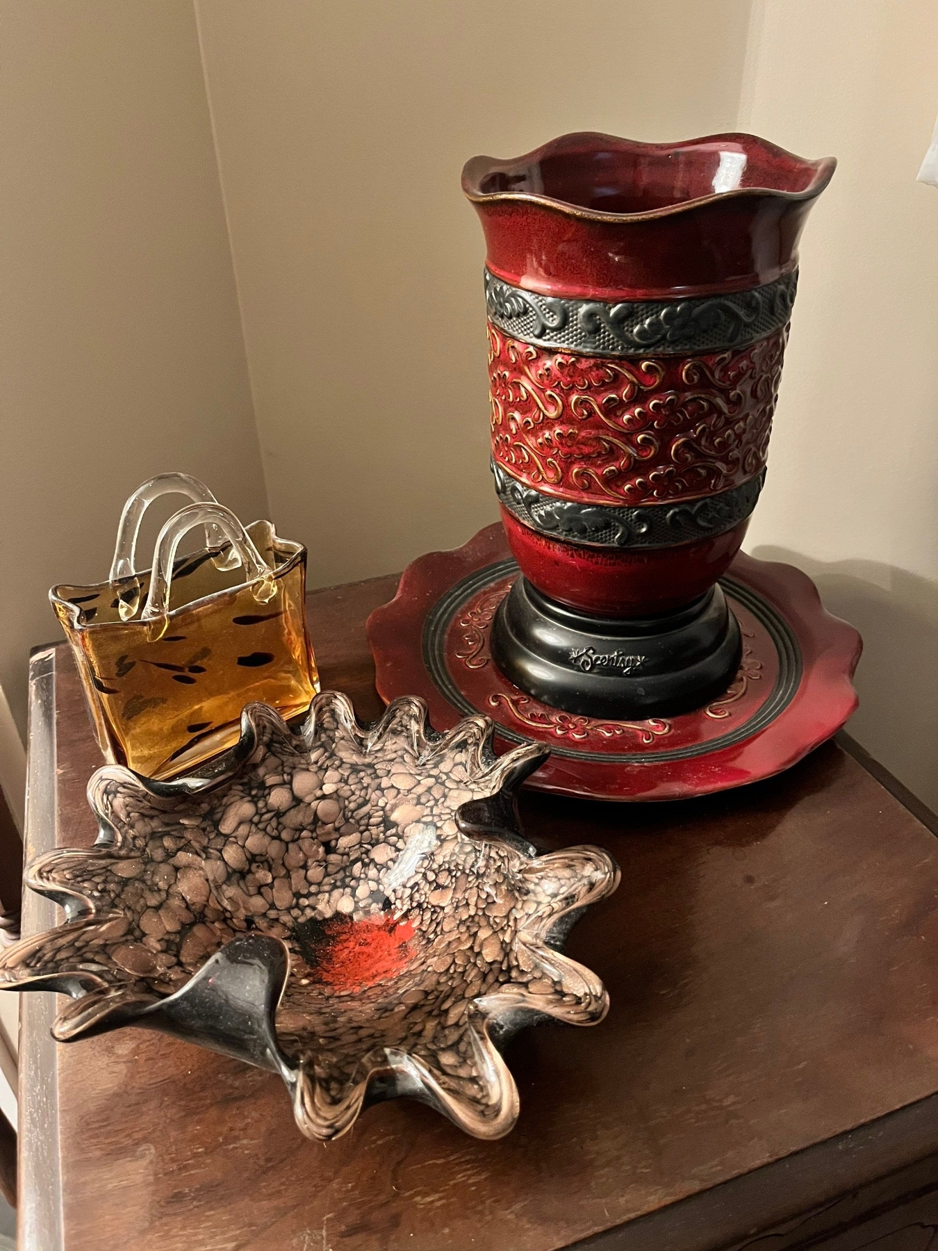 Large sensei Voz with plate hand blowing glass napkin holder, ornate decorative plate/candy dish