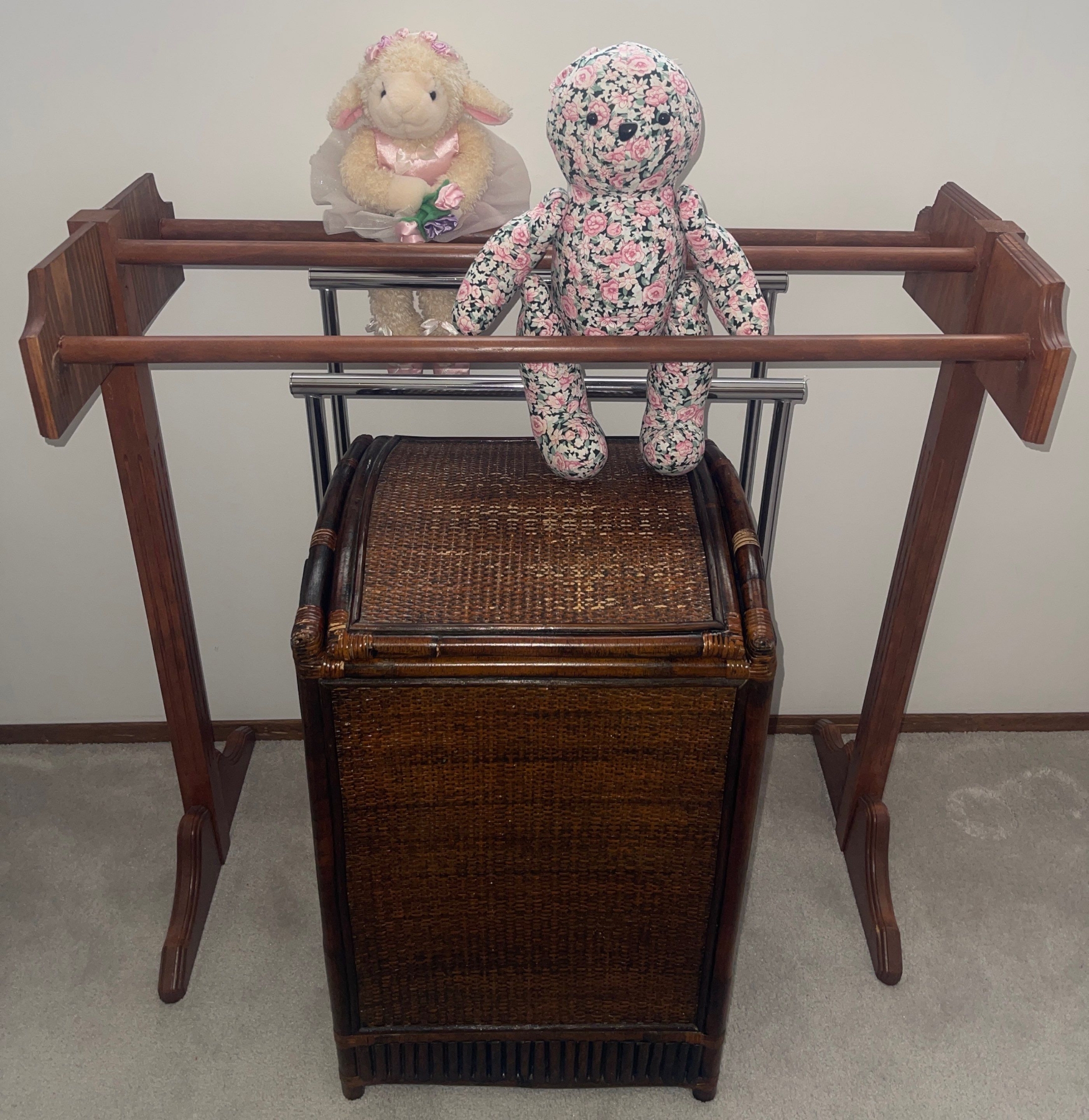 Laundry Essentials - Wicker Hamper 27T w/ Adjustable Garment Racks