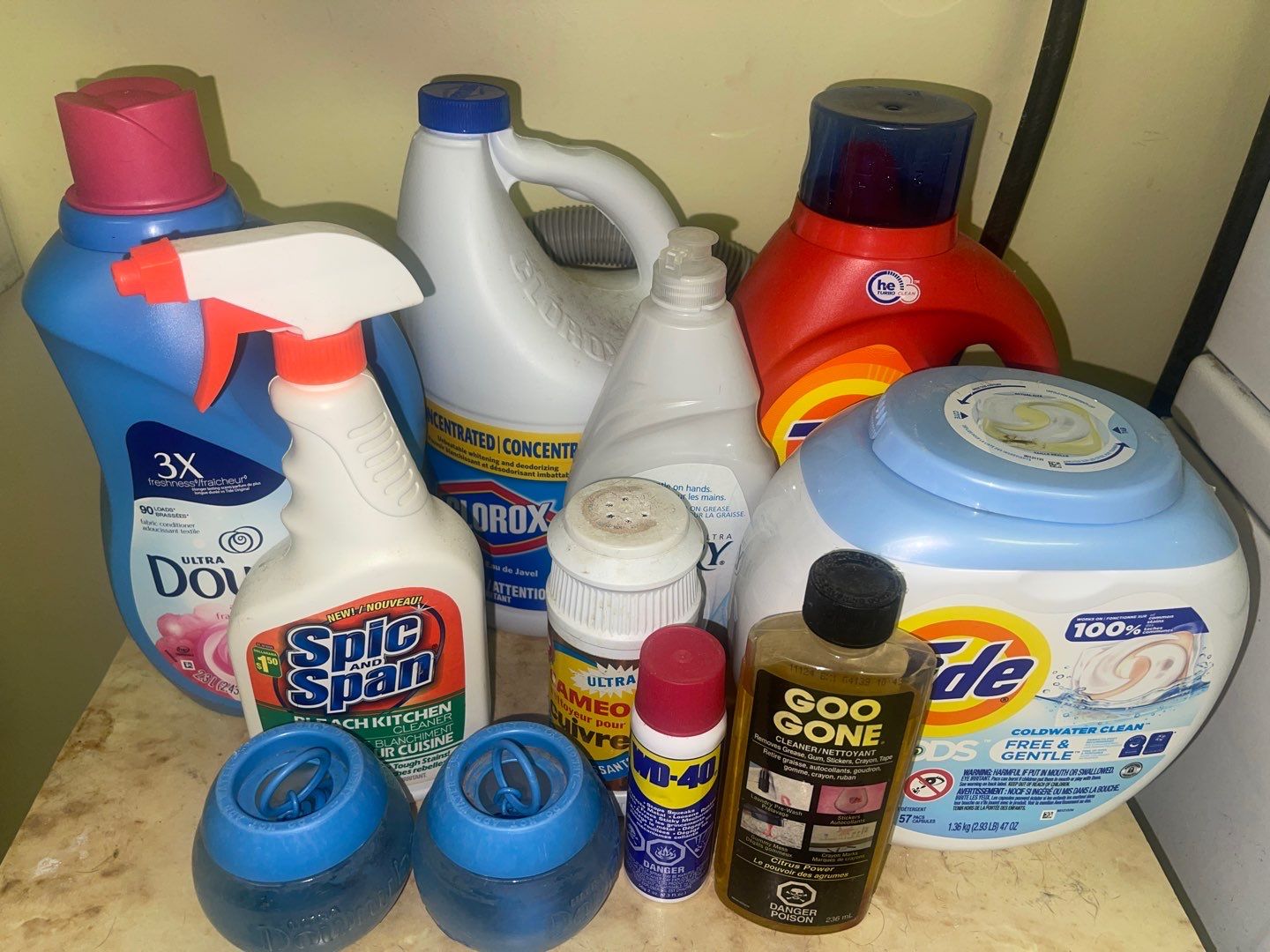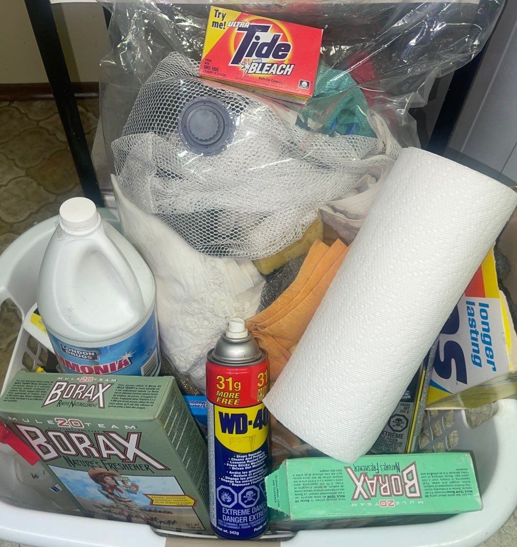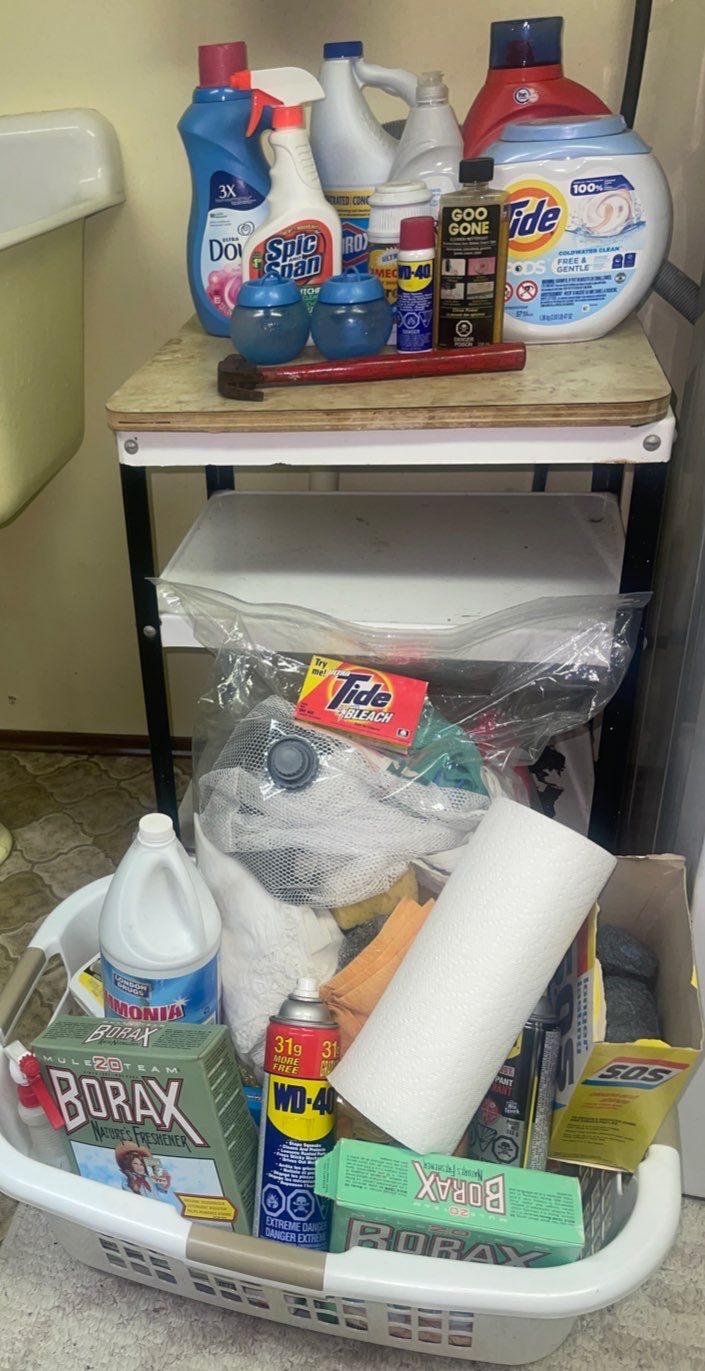 Laundry Supplies & Shelf w/ Laundry Basket Full Of Everyday Essentials