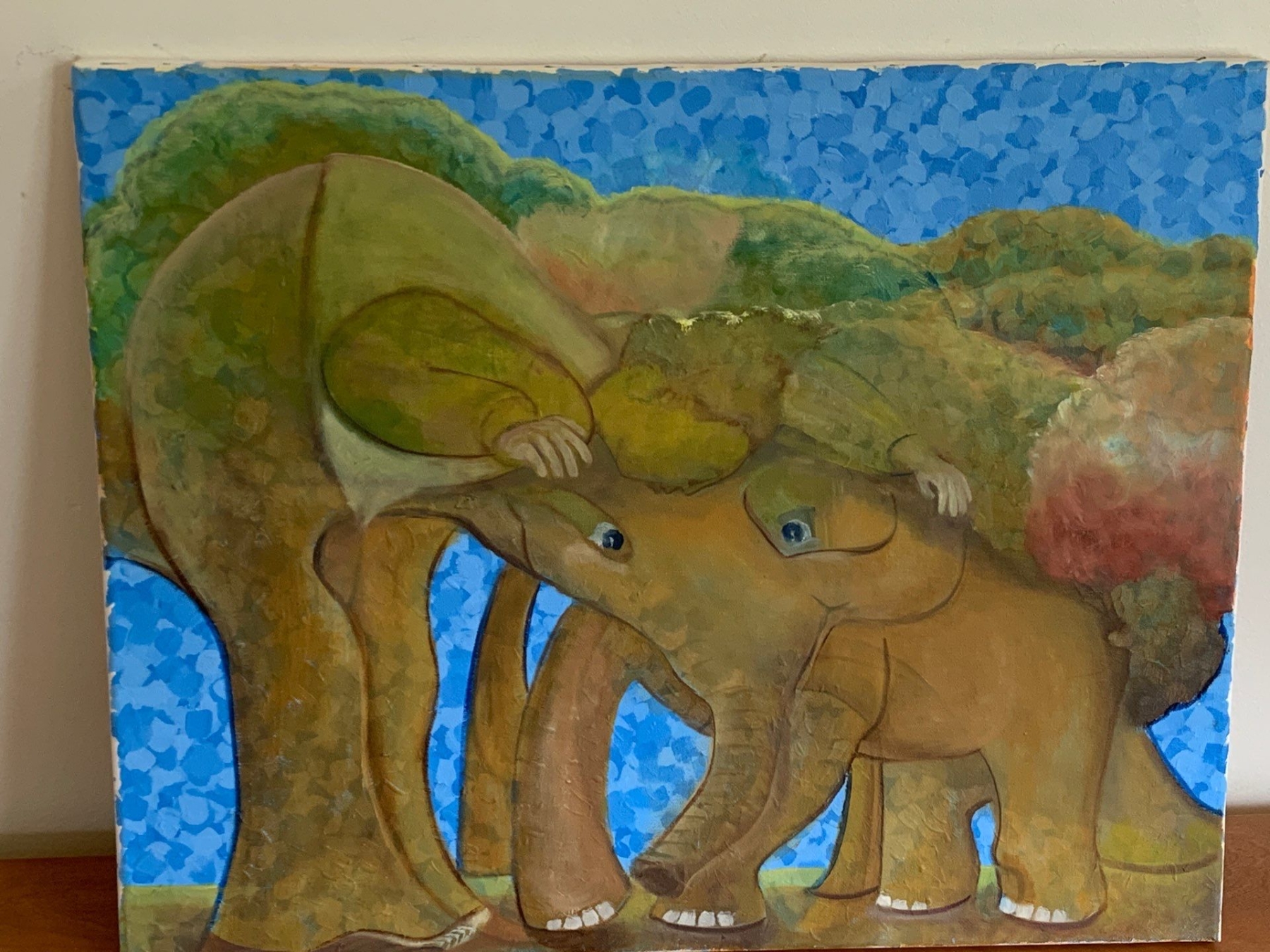 Lauri Ansell Elephant Tree Oil On Board 16 x 20