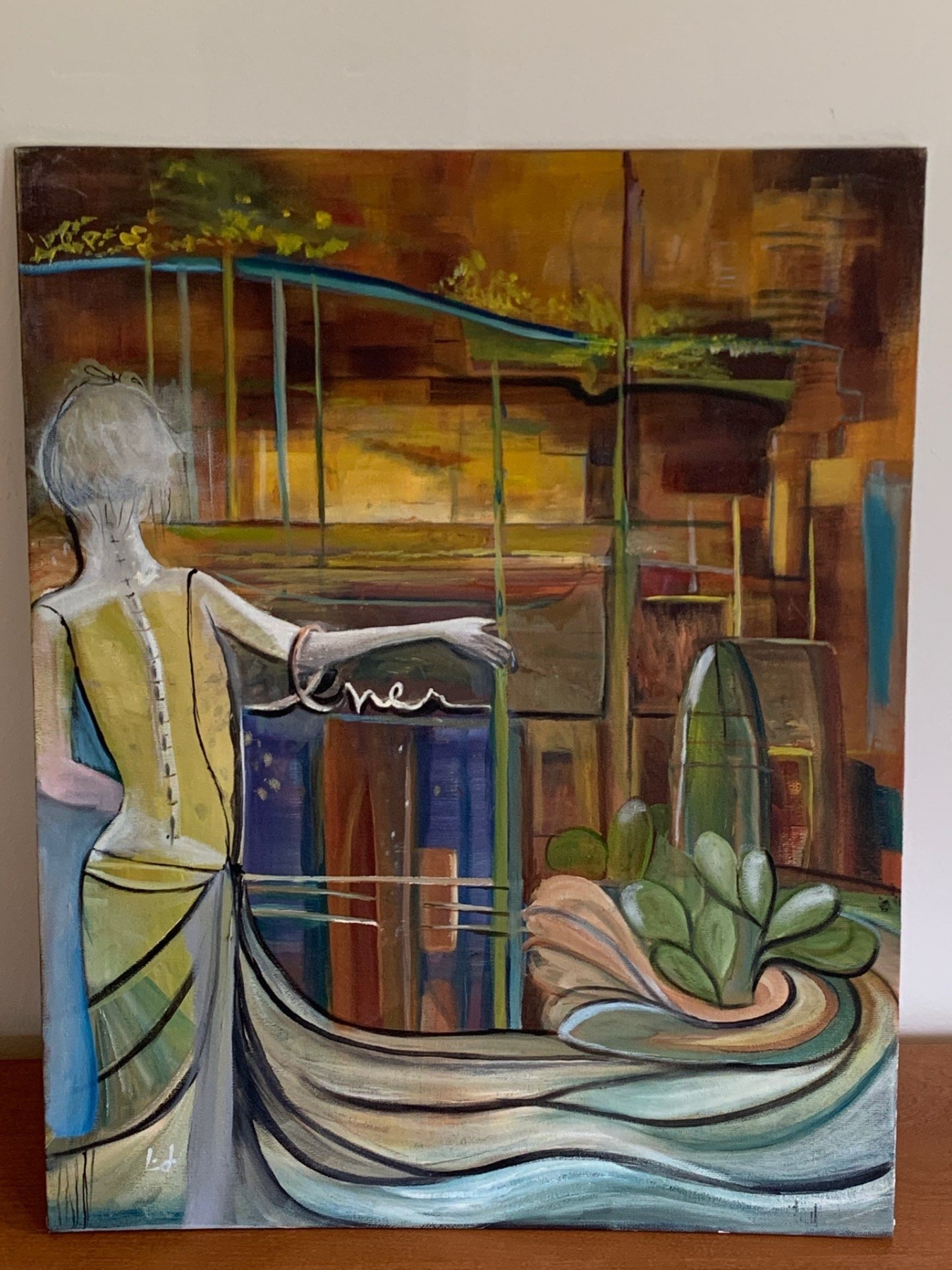 Lauri Ansell Girl & Cactus Oil On Board 16 x 20
