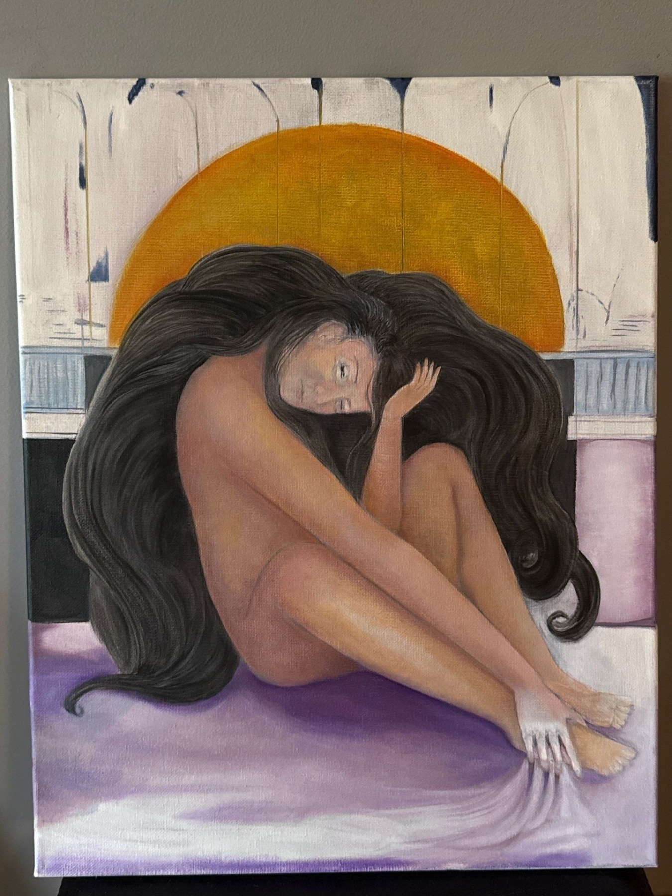 Lauri Ansell - Girl With Black Hair - Oil On Canvas 16 x 20