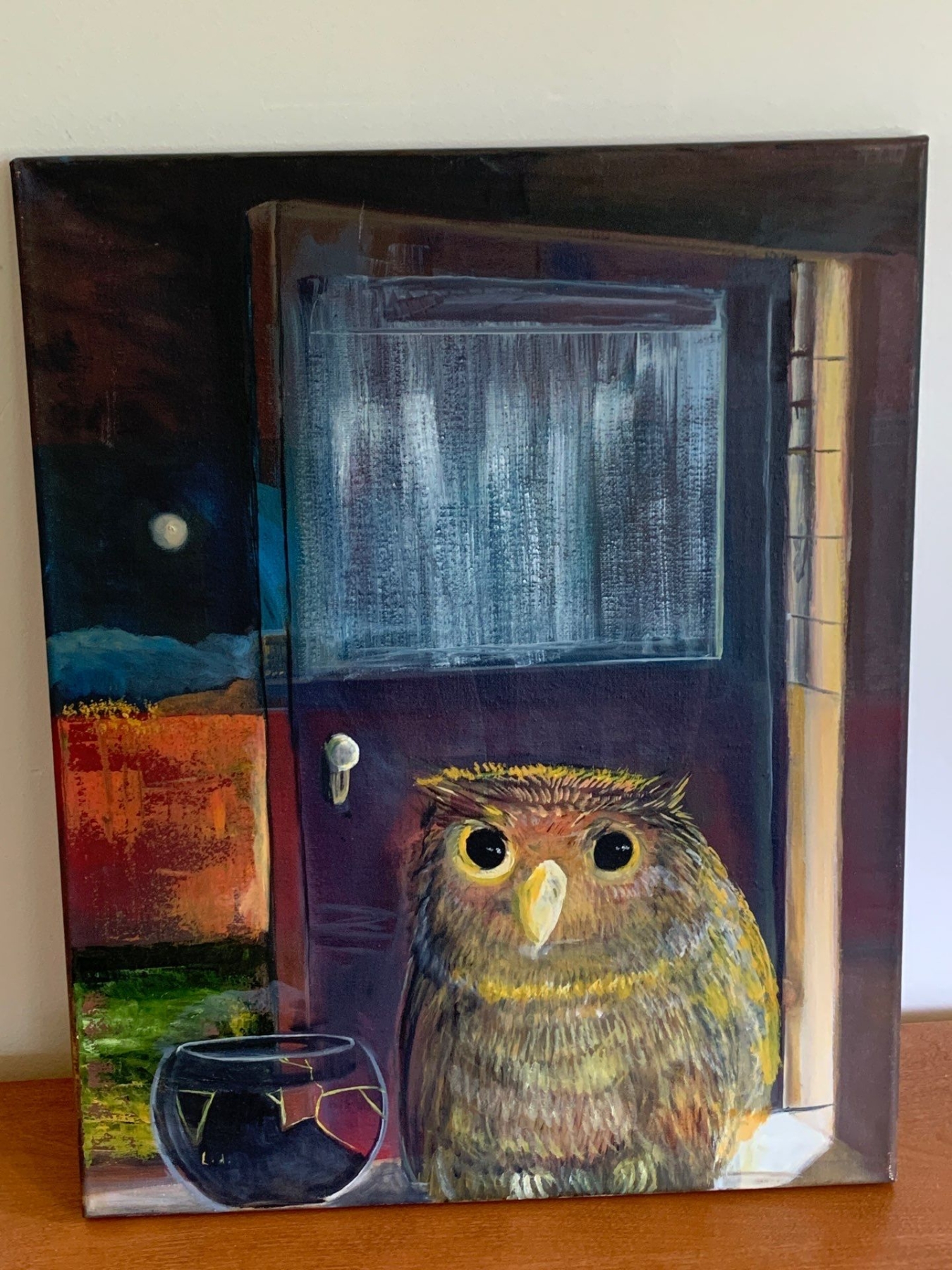 Lauri Ansell Owl & Cup Canvas Board 16 x 20