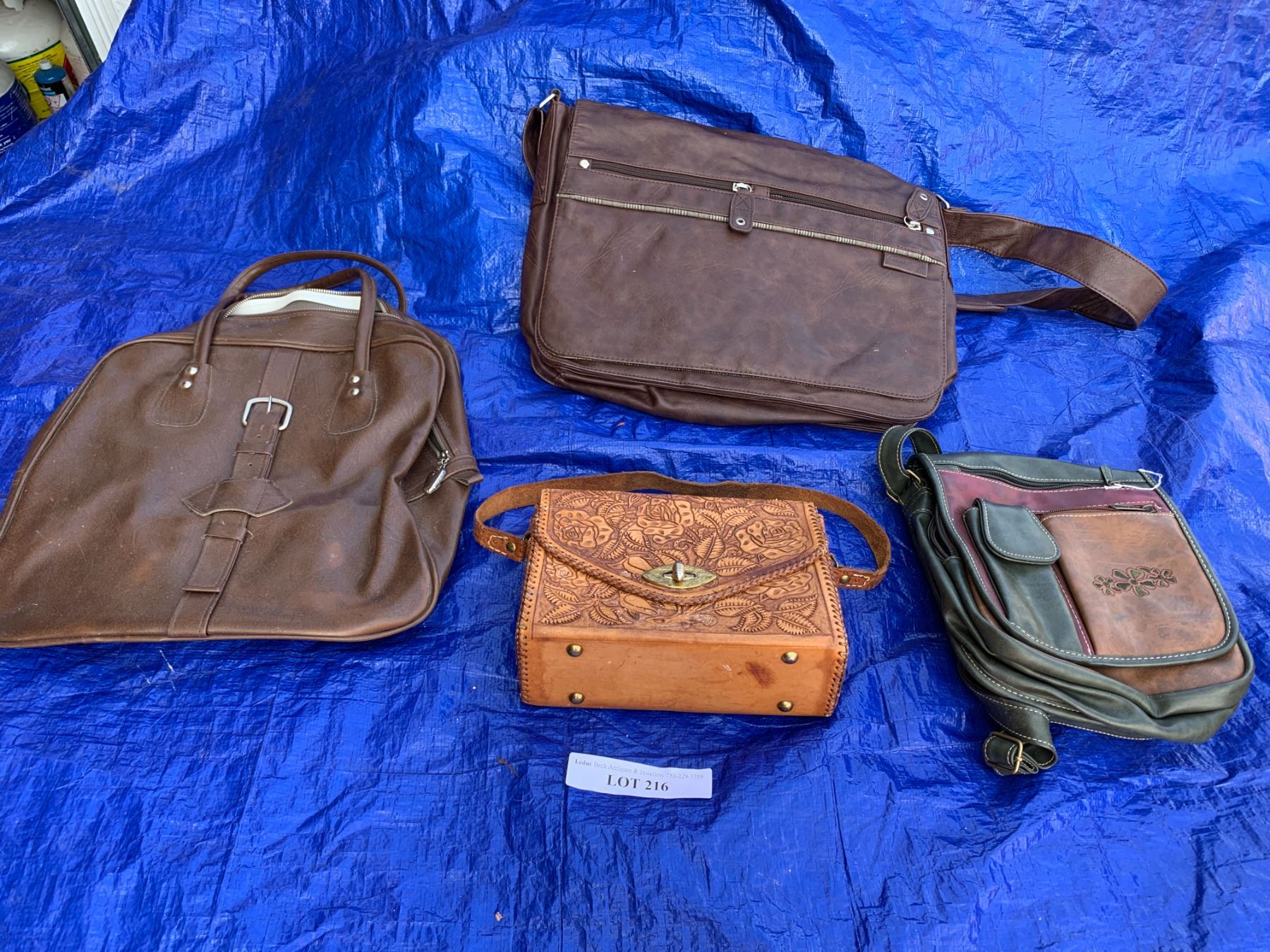 Leather Floral Purse, Burgundy/Green Purse, Brown Bowling Bag & Brown Laptop Carrying Case