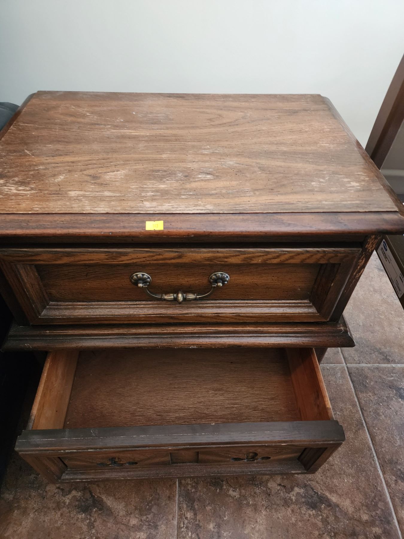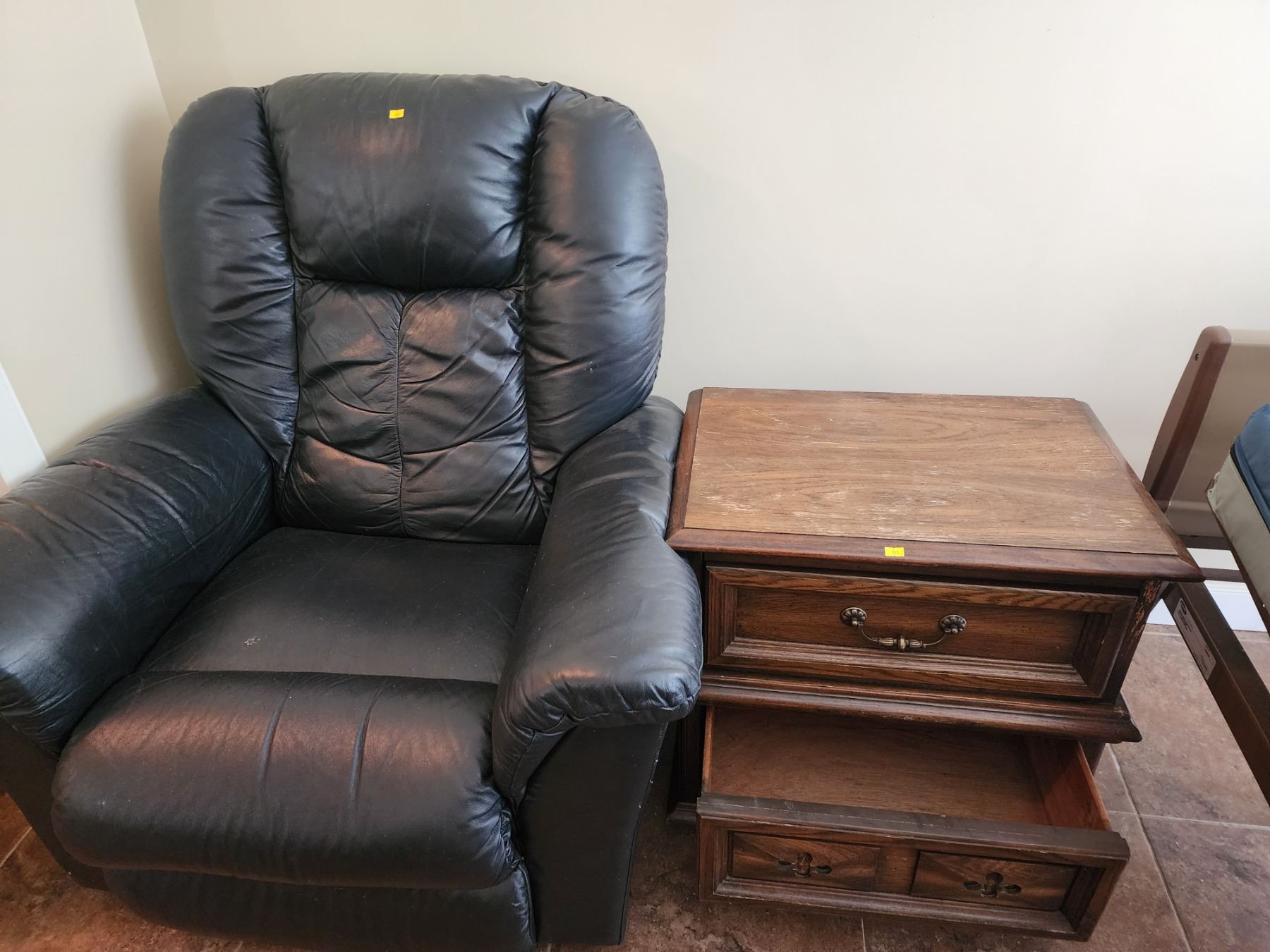 Leather Lazy Boy (38" H x 35" W) w/ Vintage Side Table (25" H x 25" L)