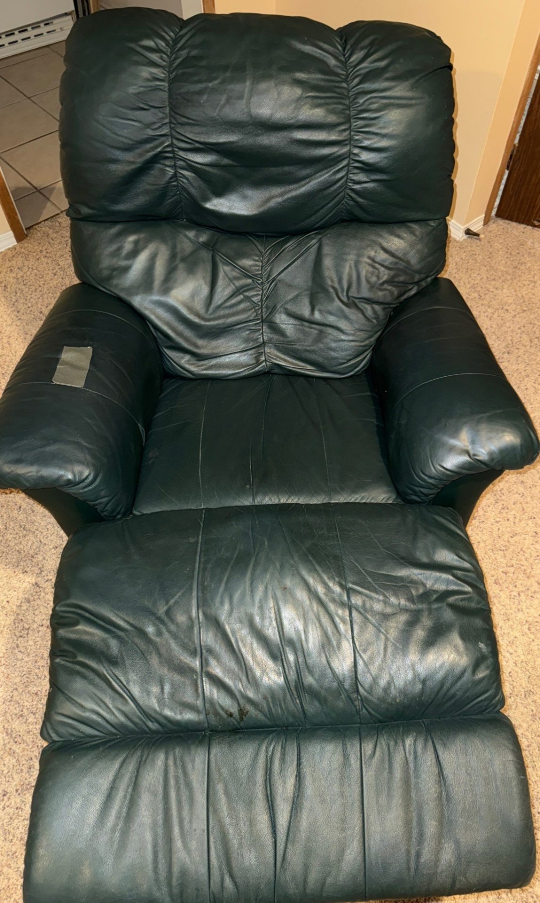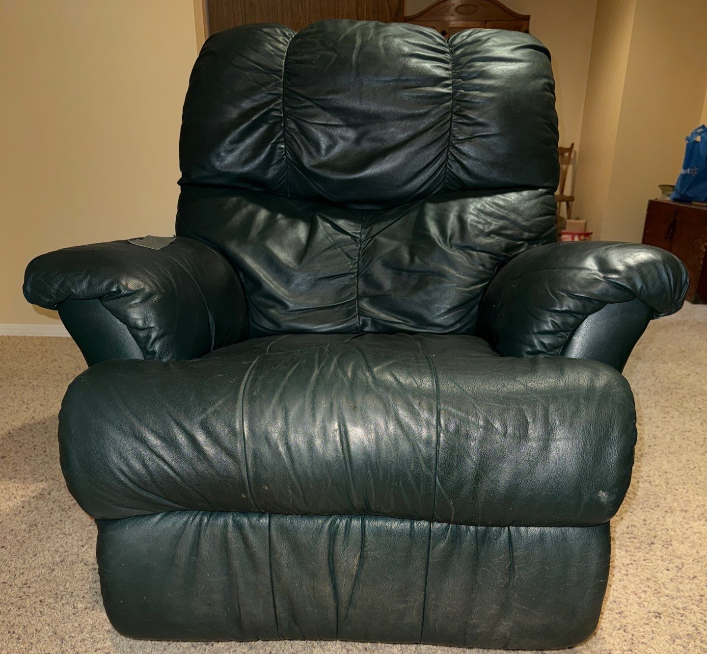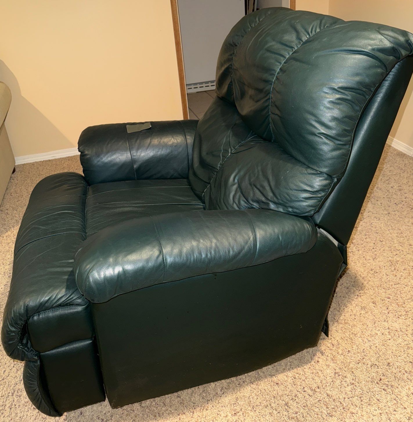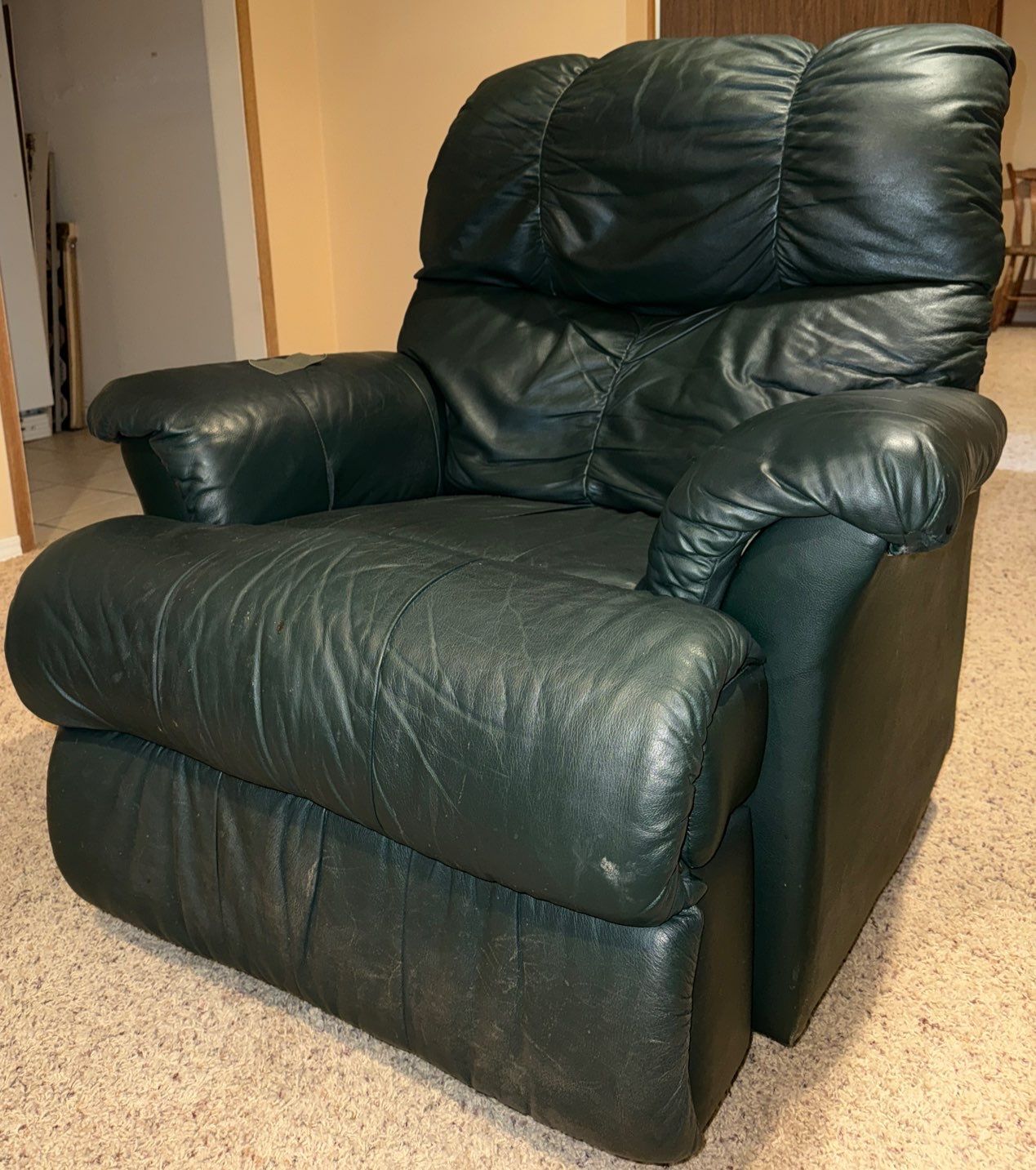 Leather Rocker/ Recliner Well Loved, Small Tear on Arm