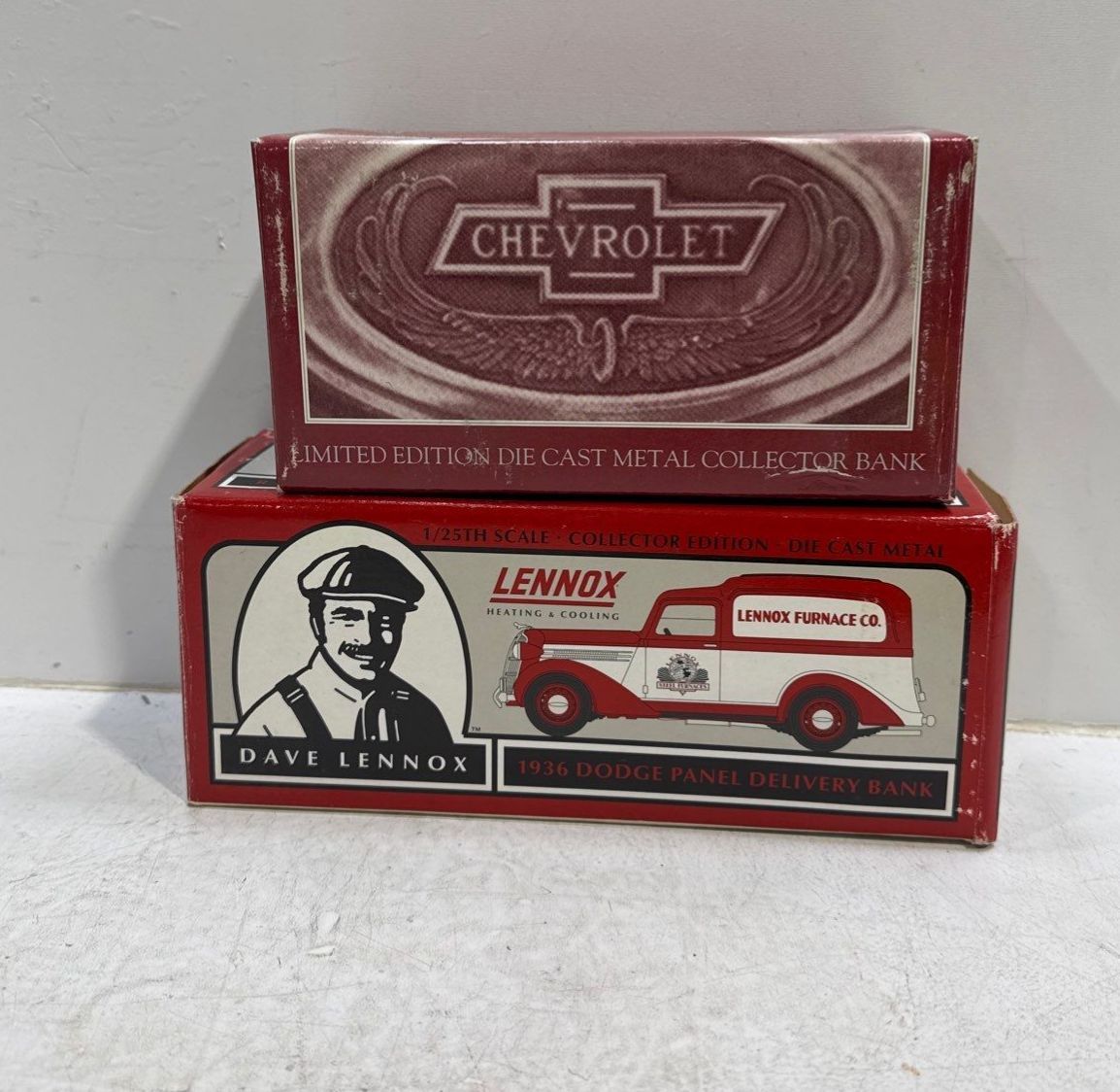Lennox and Chevrolet Die Cast Piggy Bank Vehicles