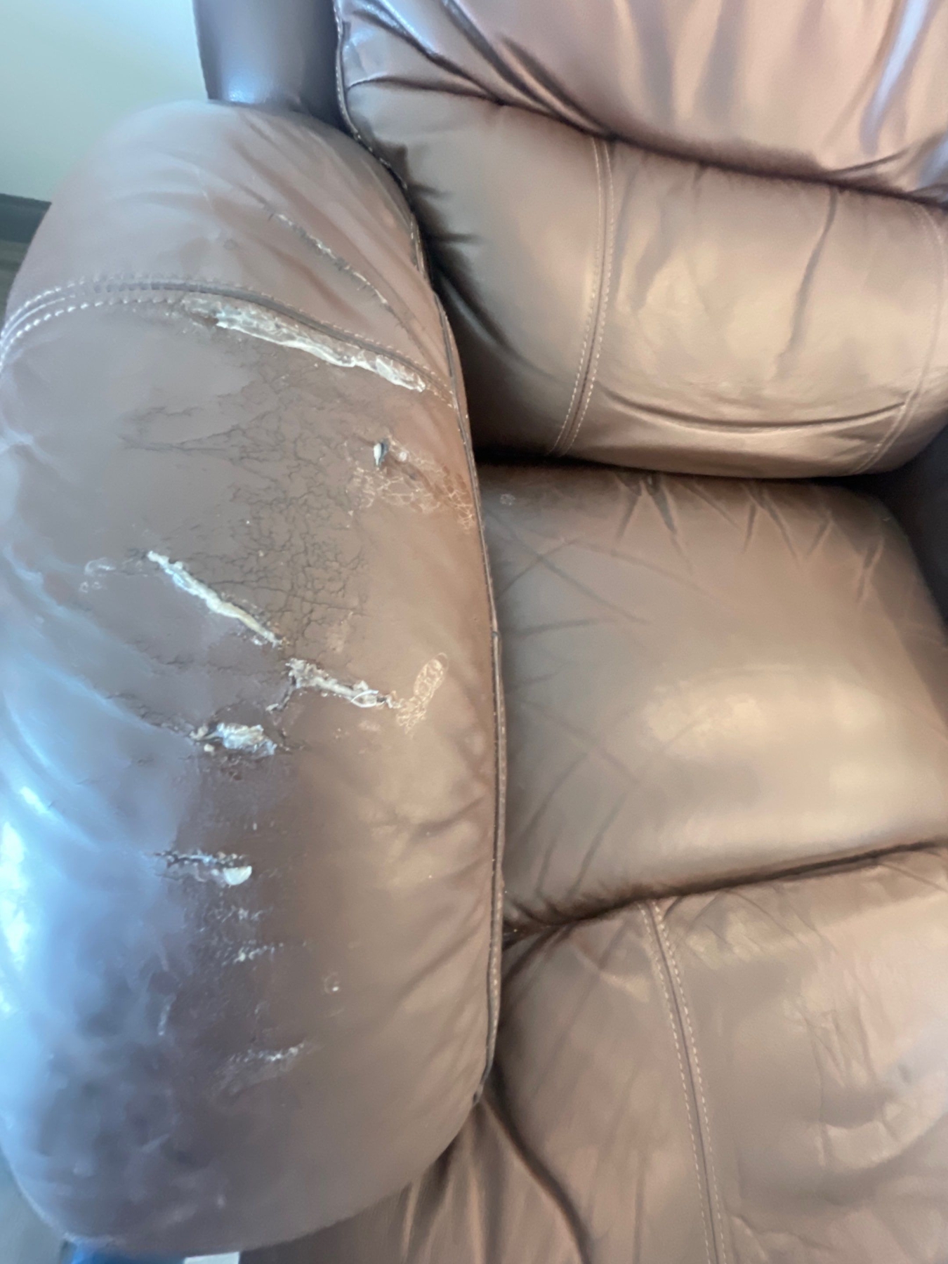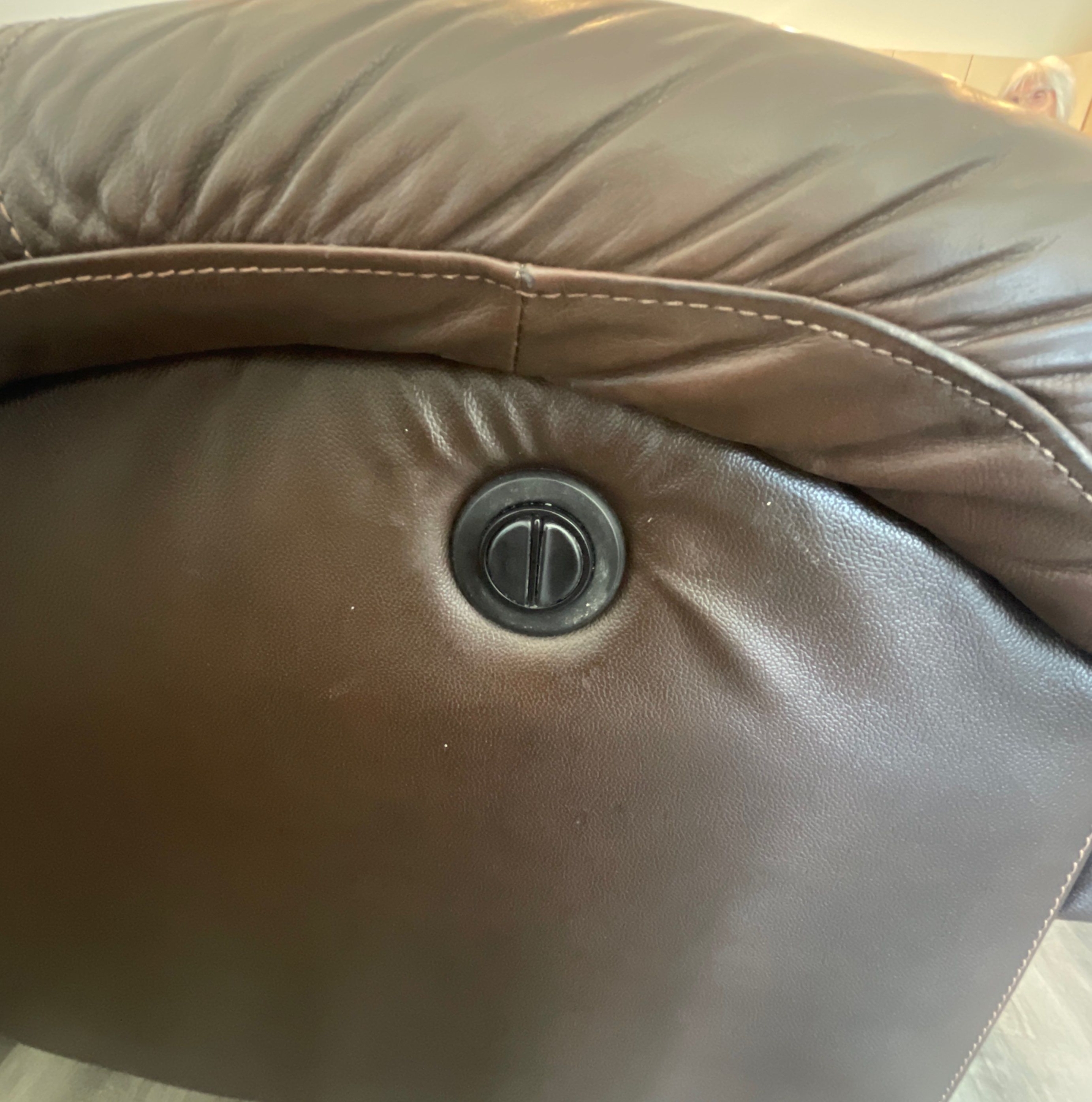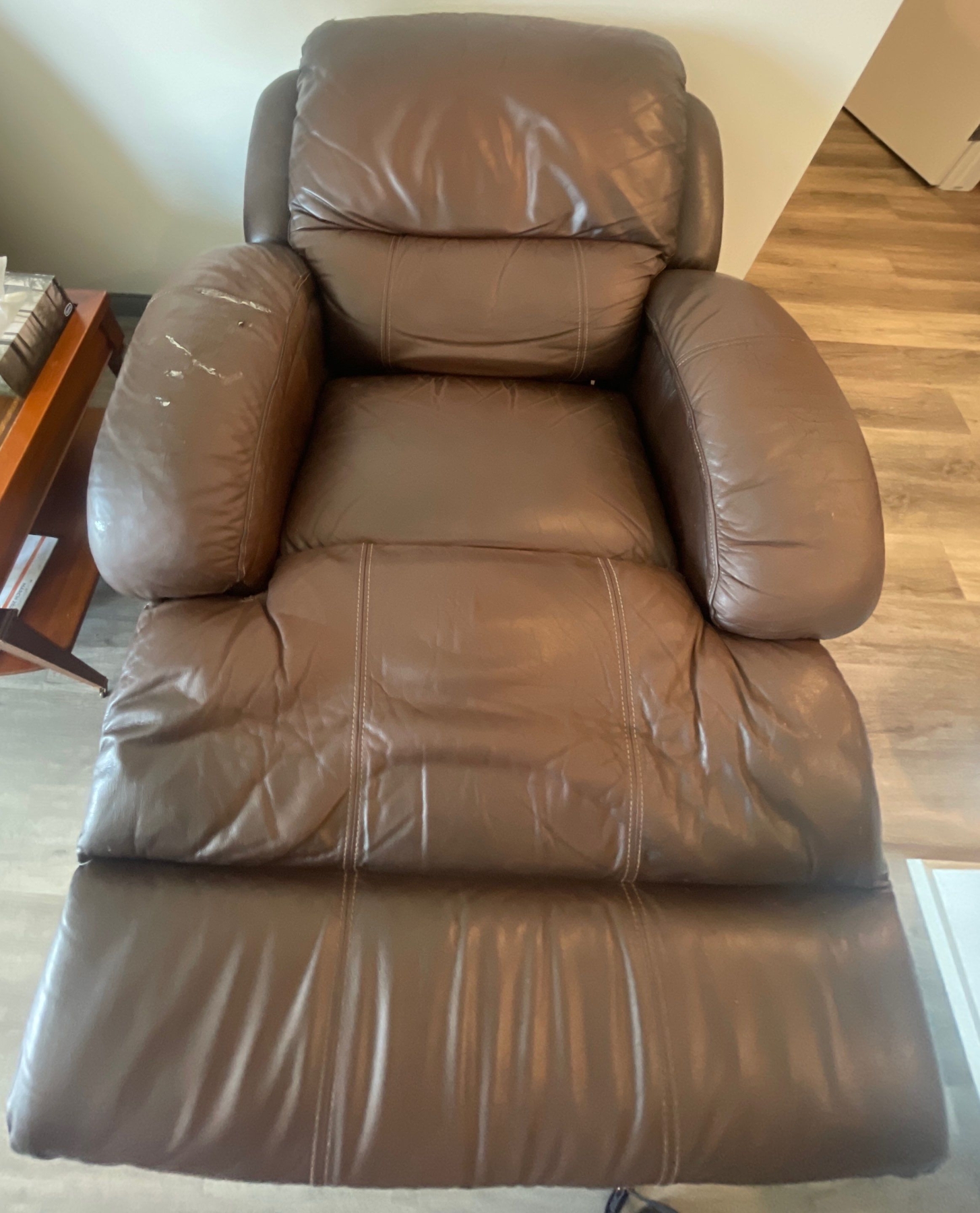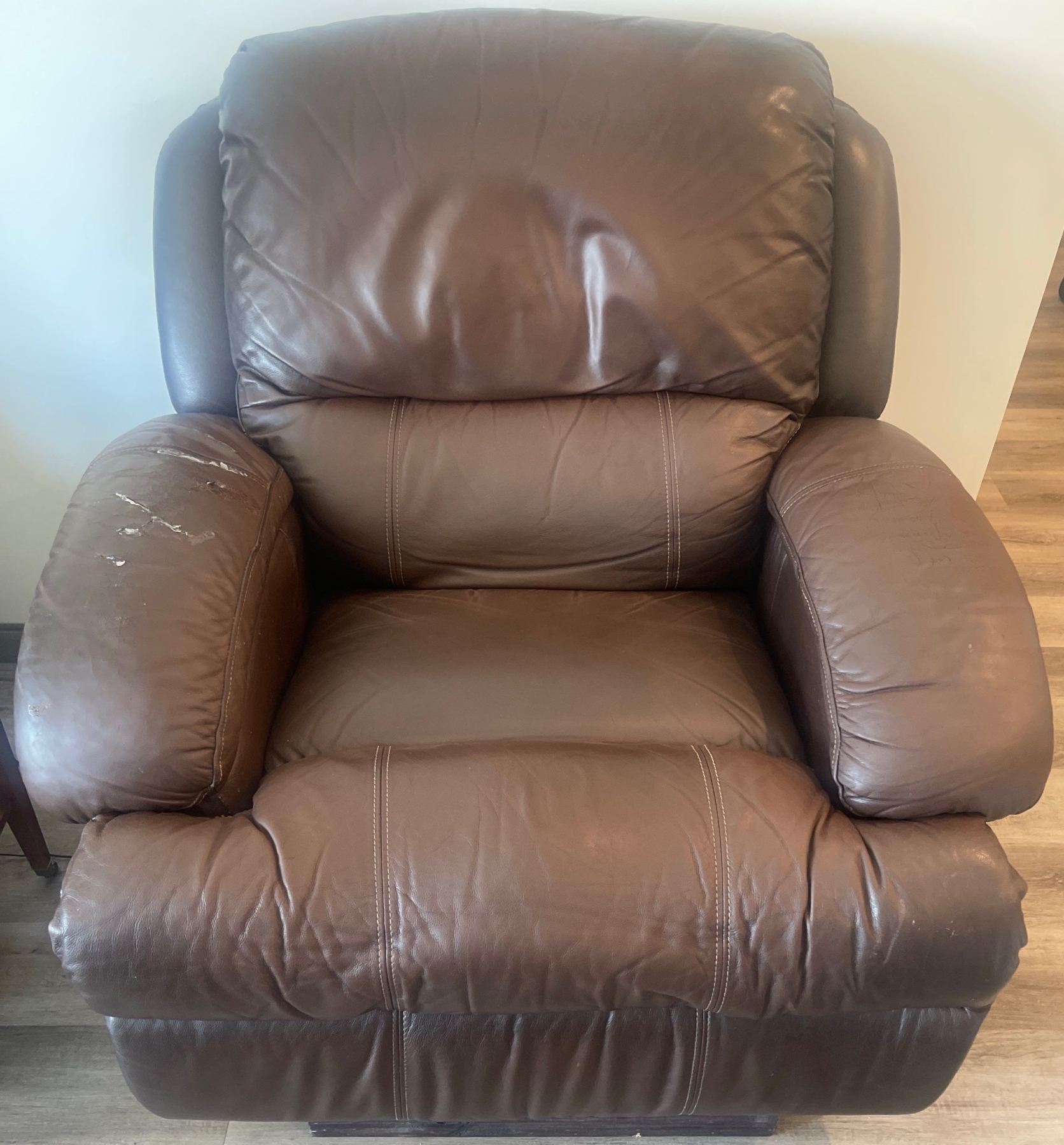 Leon's Brown Reclining Leather Chair (Some Damage) 42"w x 44"d x 38"tall