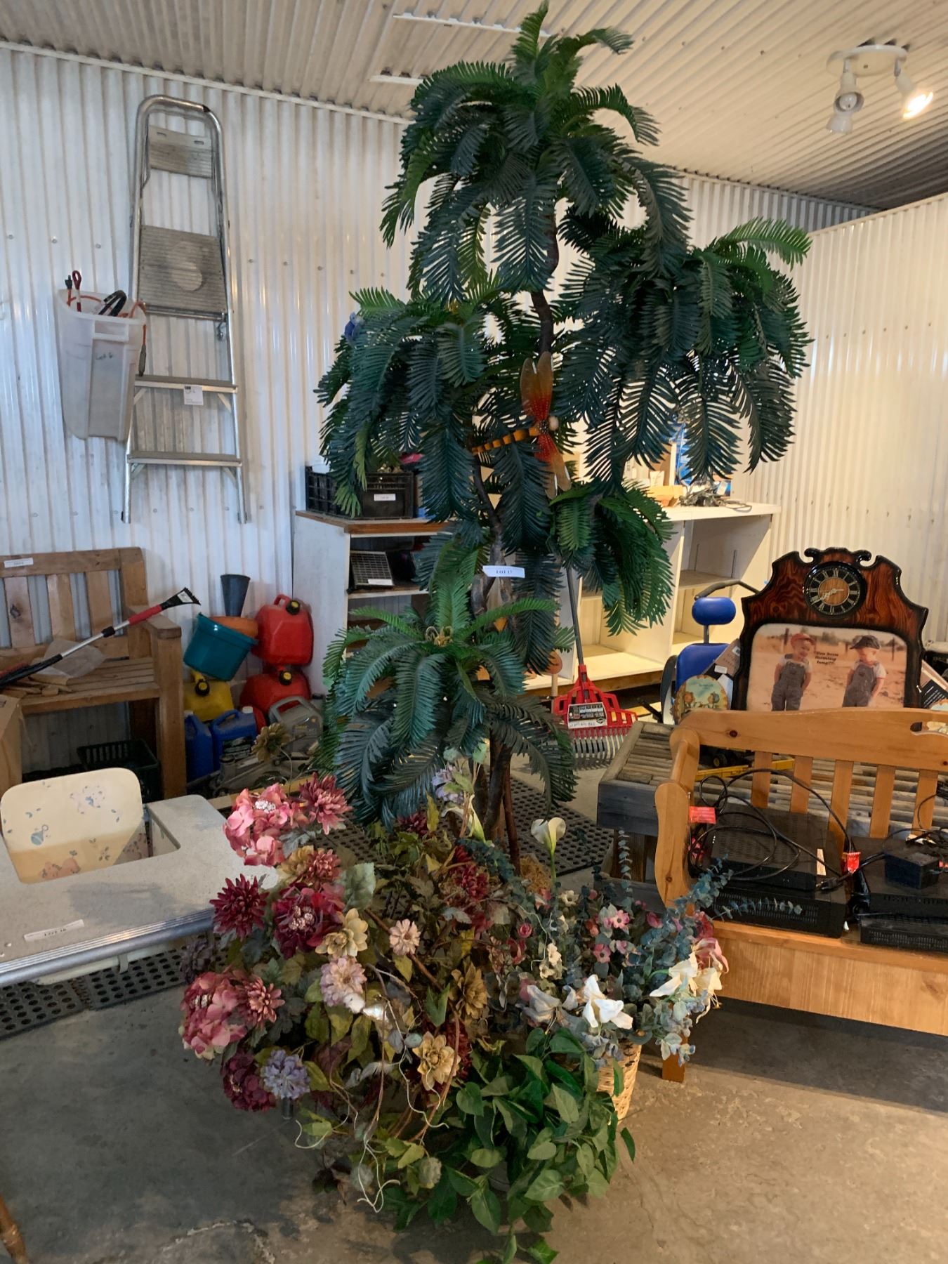 Lg Selection of Silk Flowers, Plants & 8' Tree w Butterfly, Dragonfly & Bird Ornaments