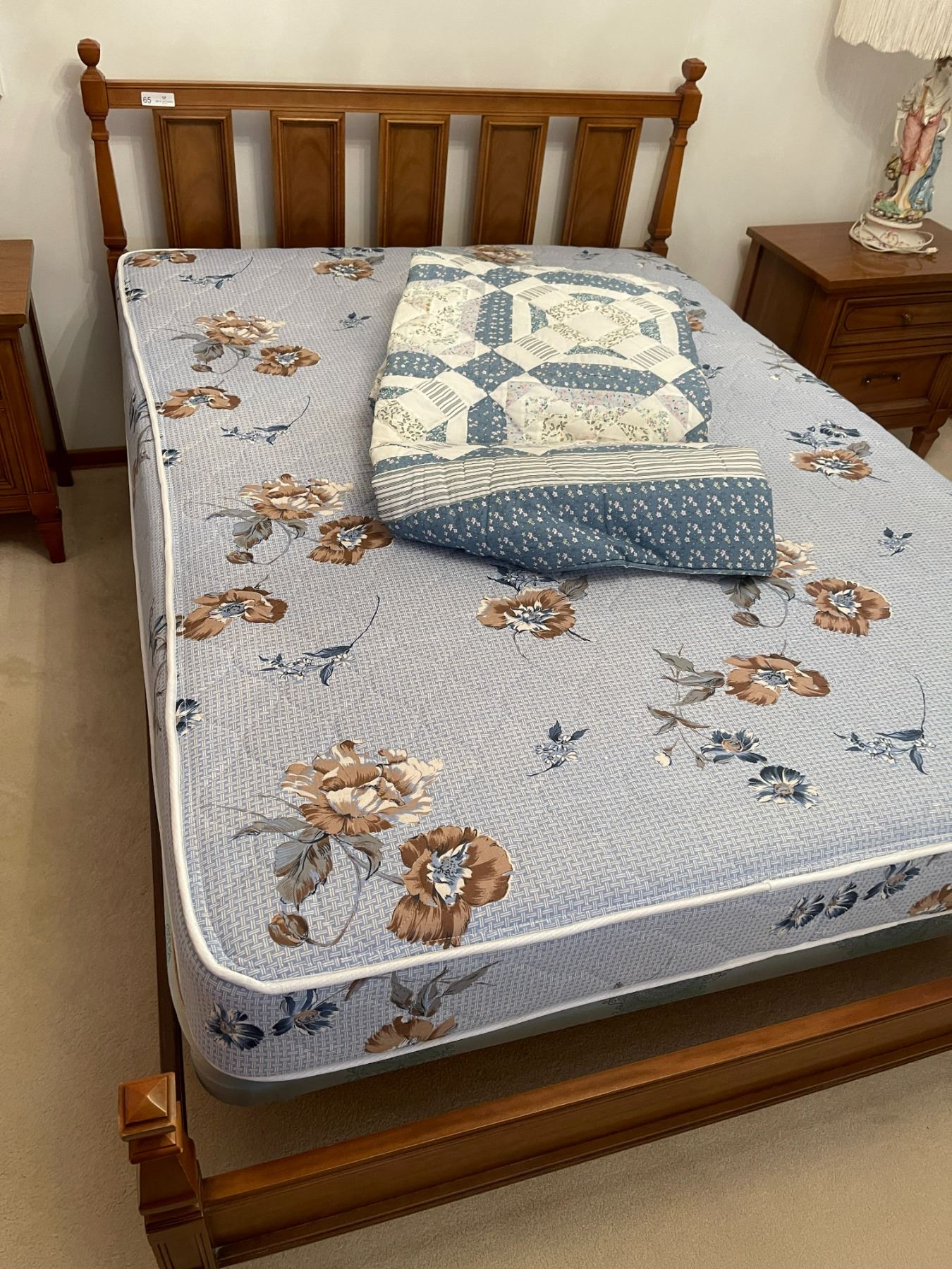Light Maple Wood Bedframe with Double Mattress and Box Spring