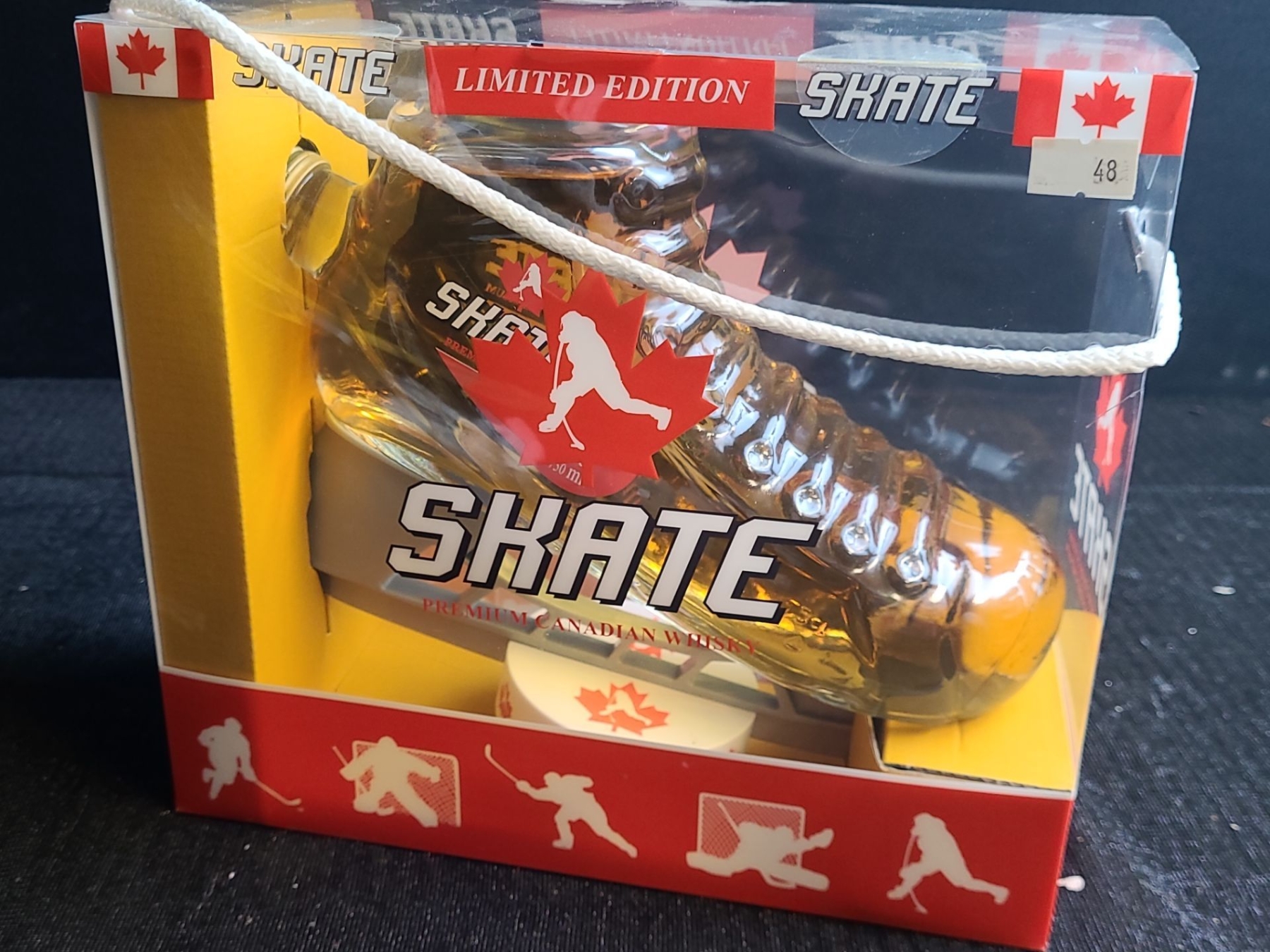 This limited edition Skate Premium Whisky is in a novelty shaped hockey skate, often sold as a gift set/ The Whisky is a blended spirit.