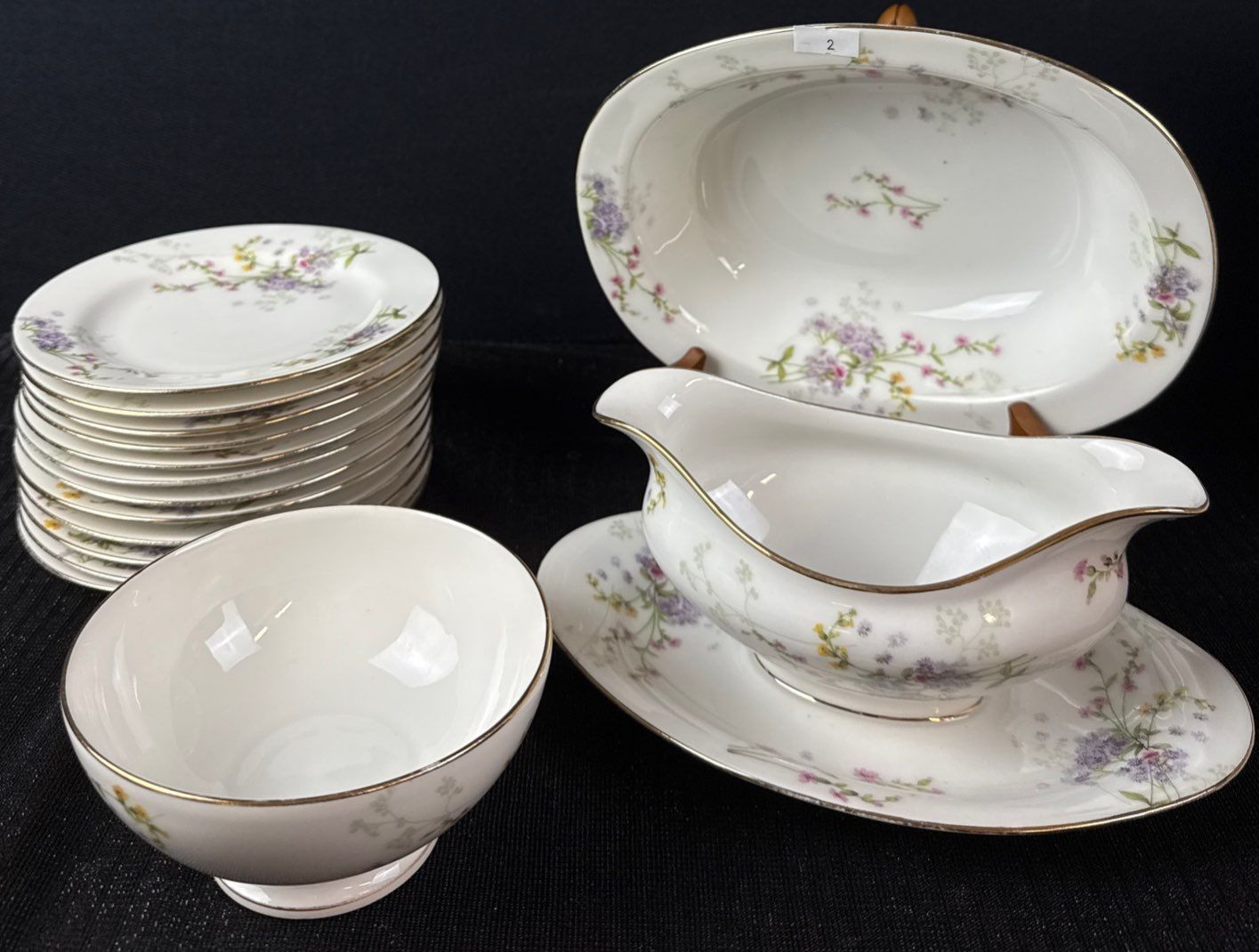 Limoges France Fine China Serving Bowl-12 Bread & Butter Plates Gravy Boat & More