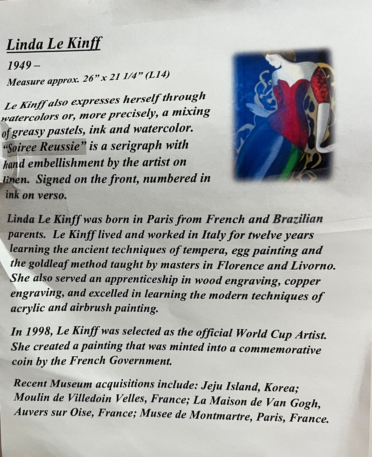 Linda Le Kinff Limited Edition Serigraph 5/150 Titled Soiree Reussie