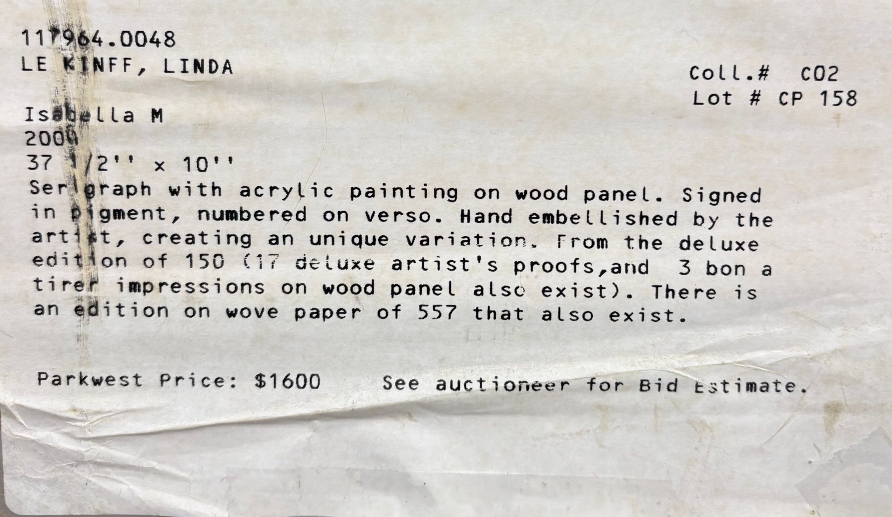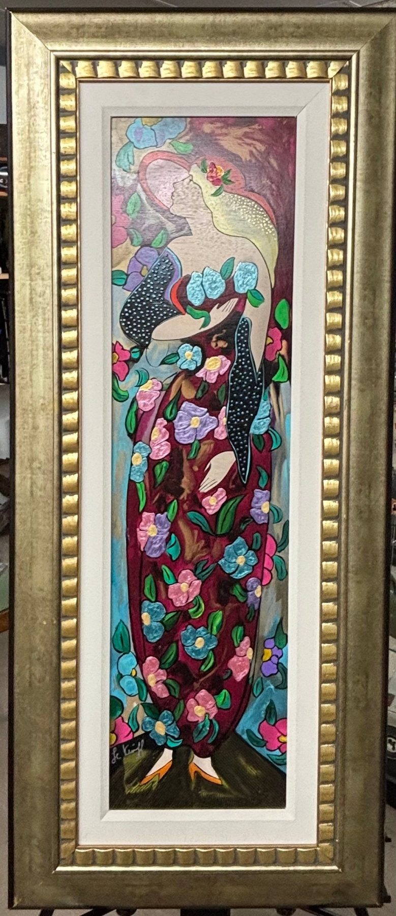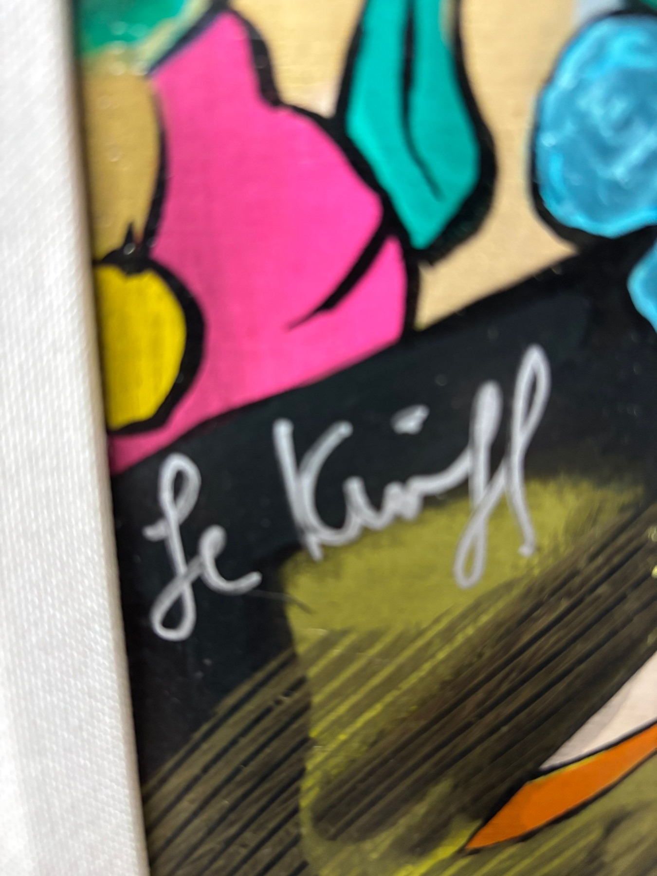 Linda Le Kinff Serigraph with acrylic painting on wood panel. Signed in pigment