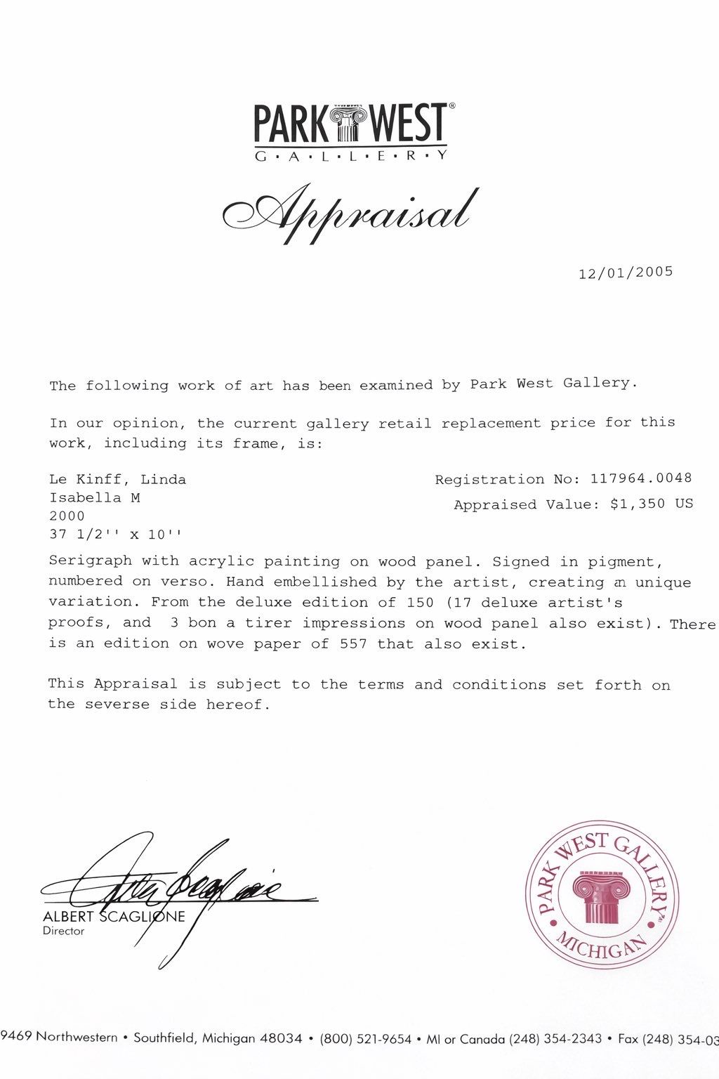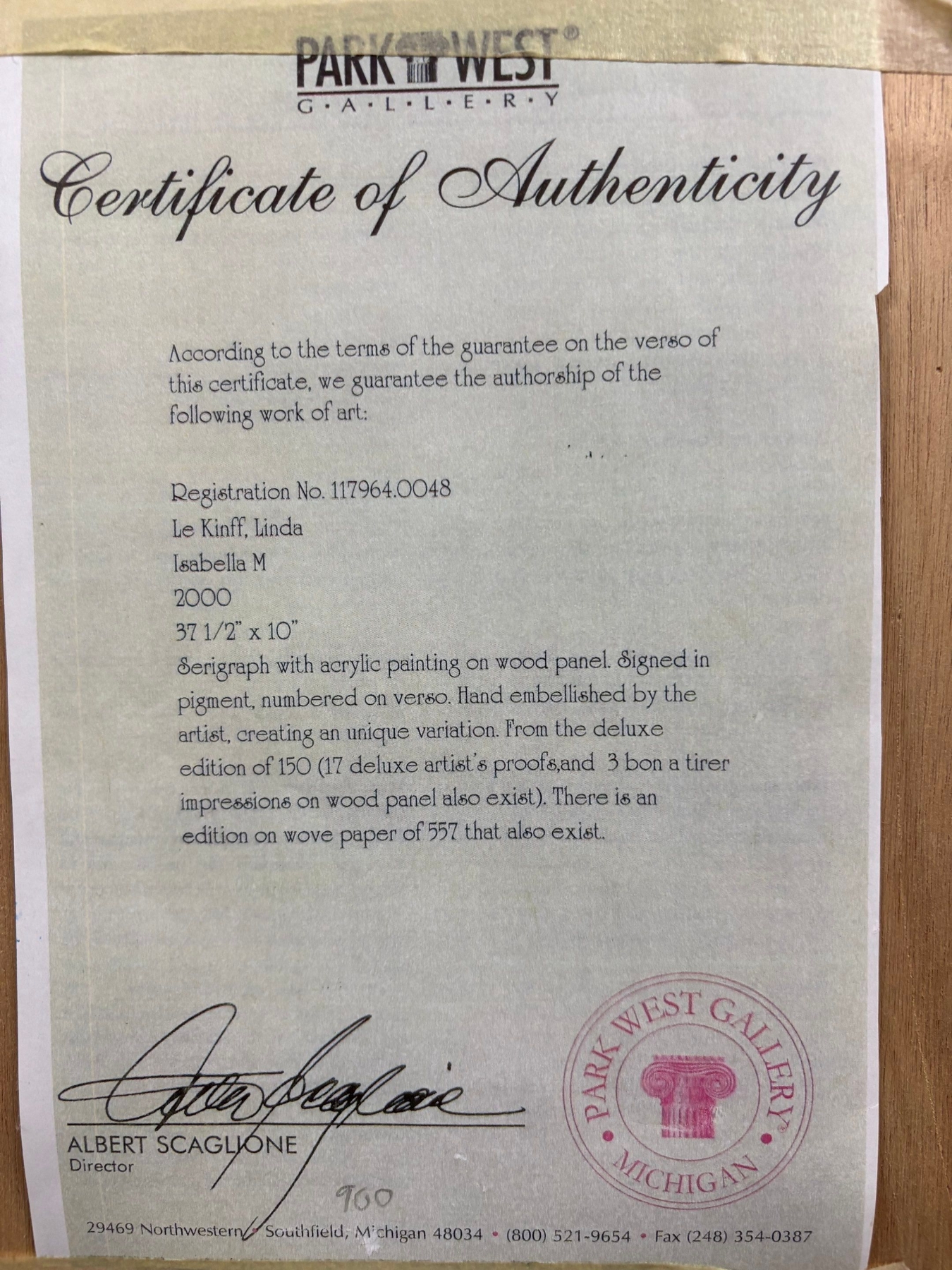 The following work of art has been examined by Park West Gallery.