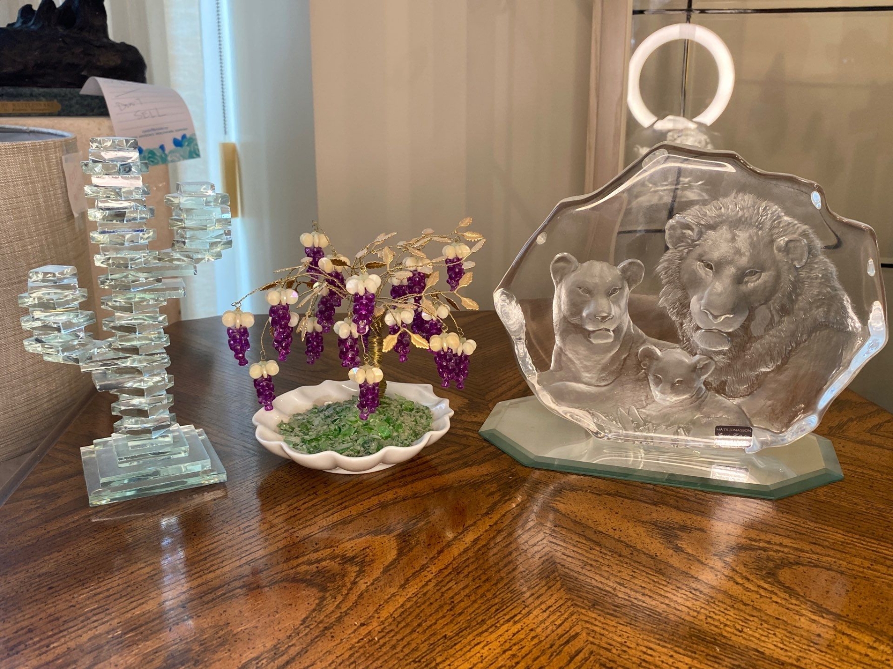 Lions Glass Decor 7T x 8W With Gemstone Trees