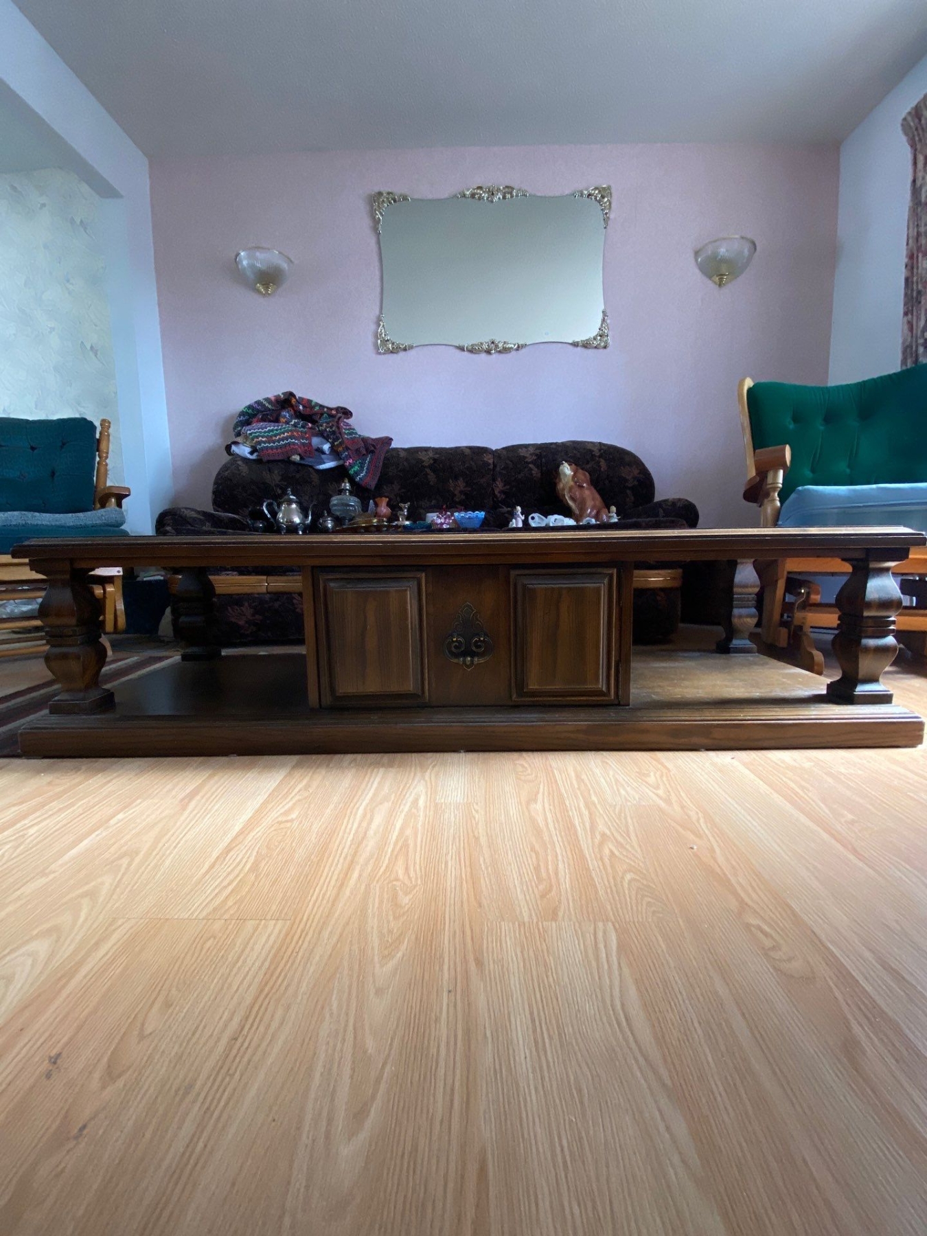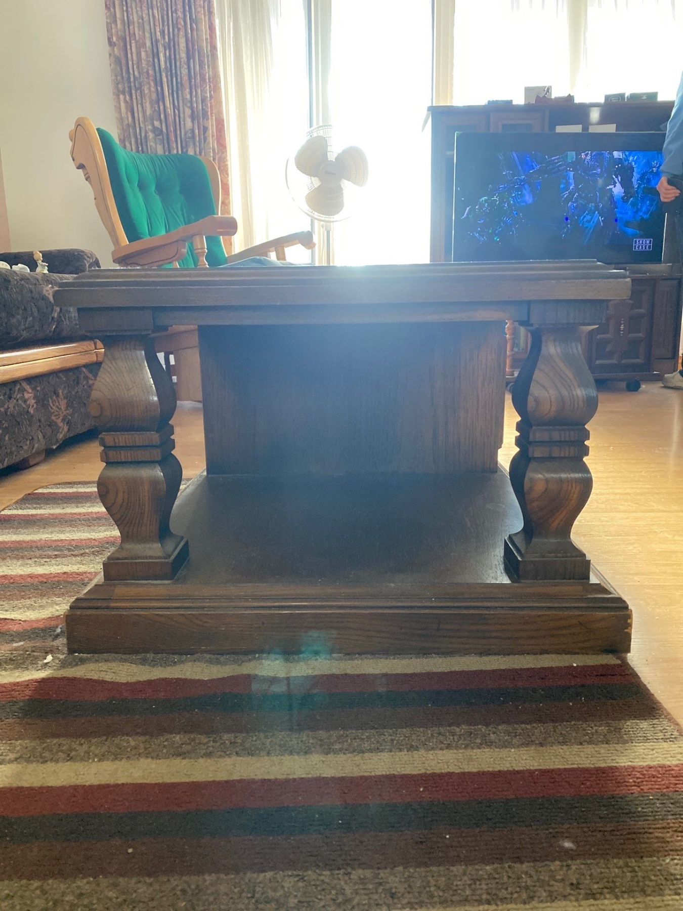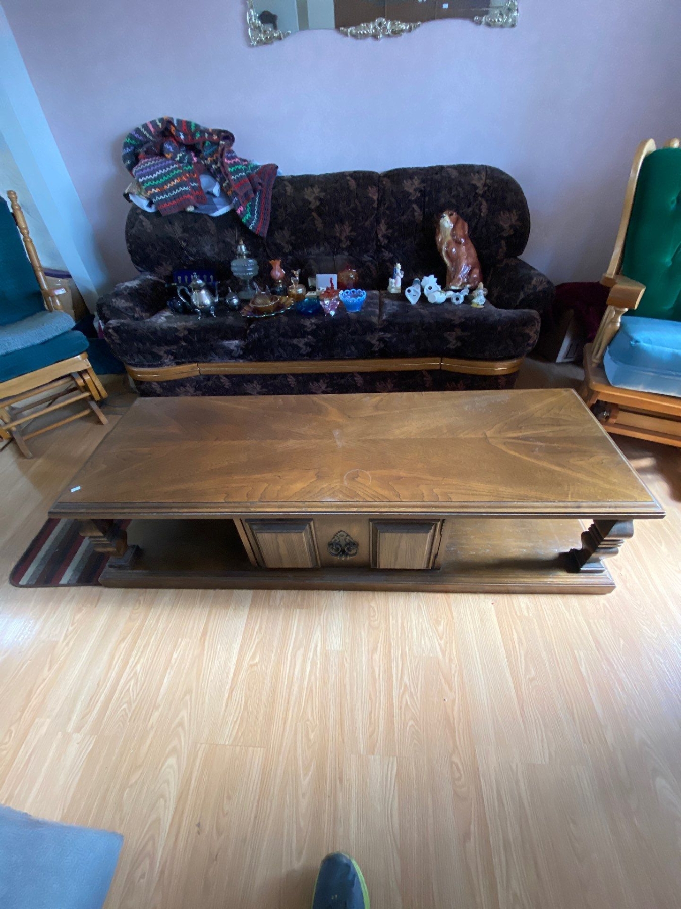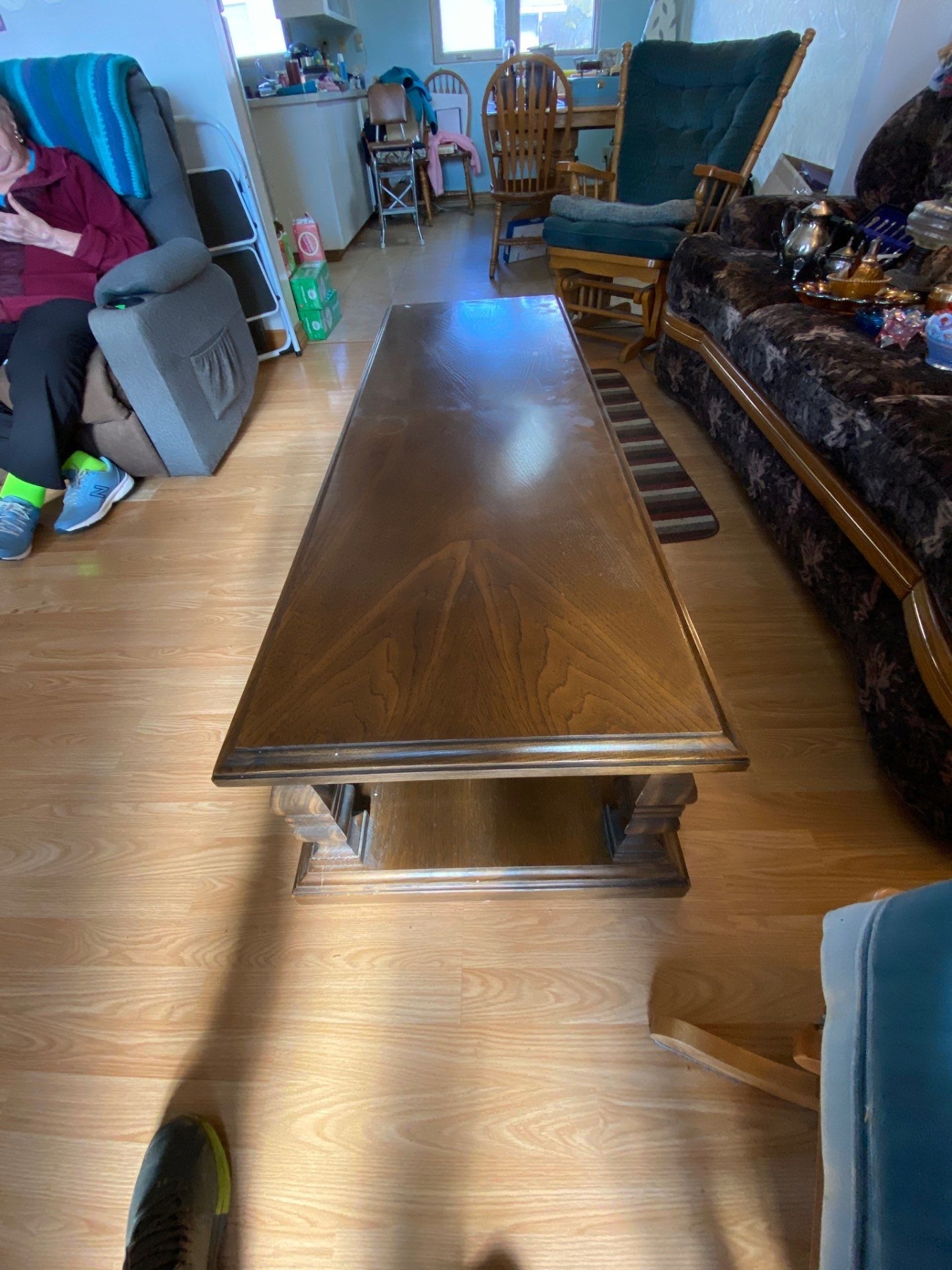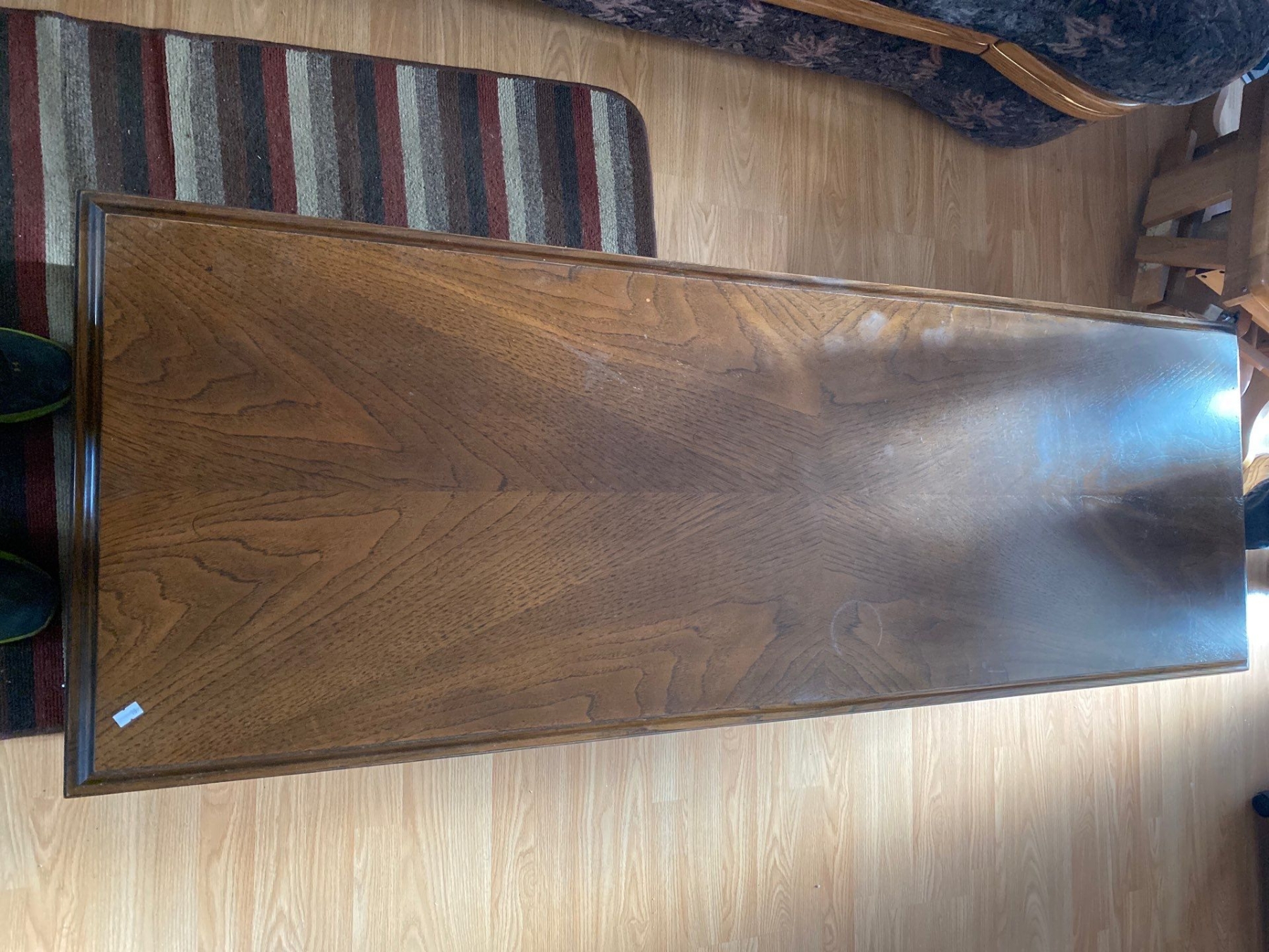 Living room table wood 64 inches long by 22 1/2 inches wide by 16 inches high