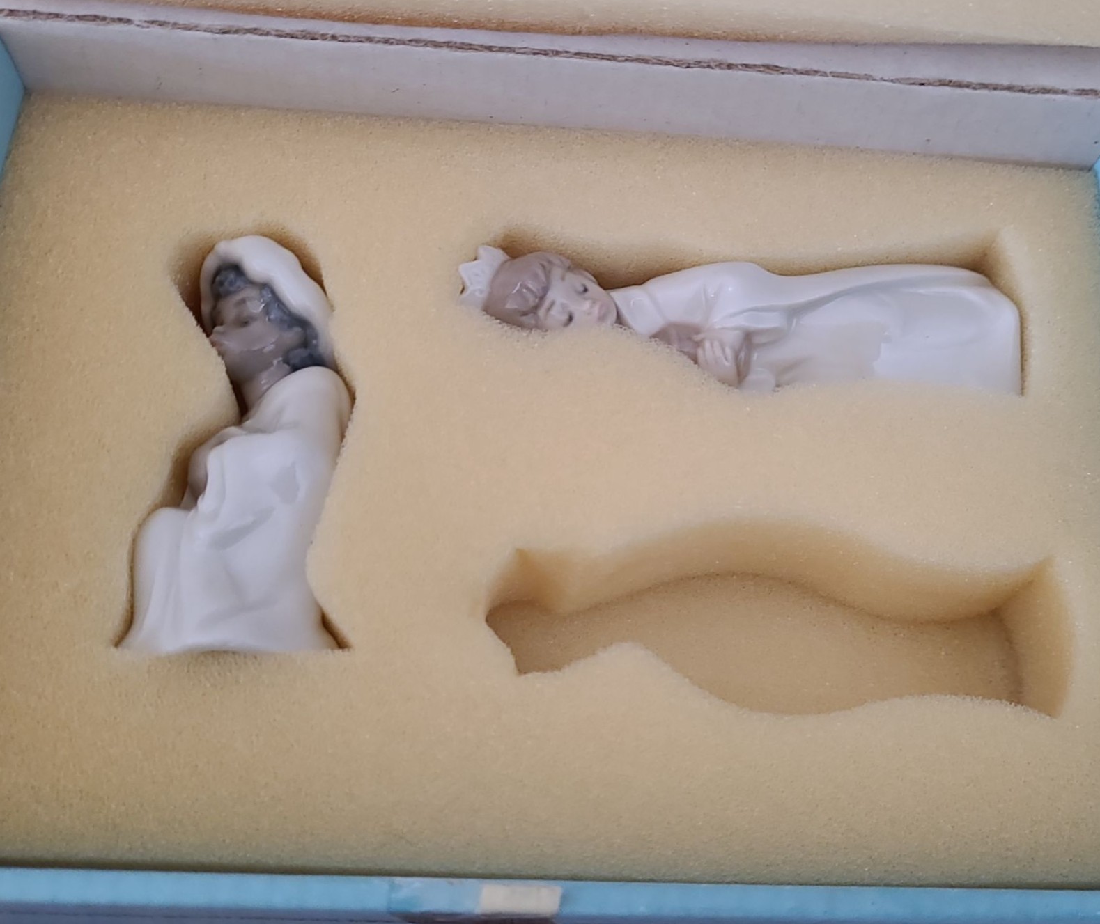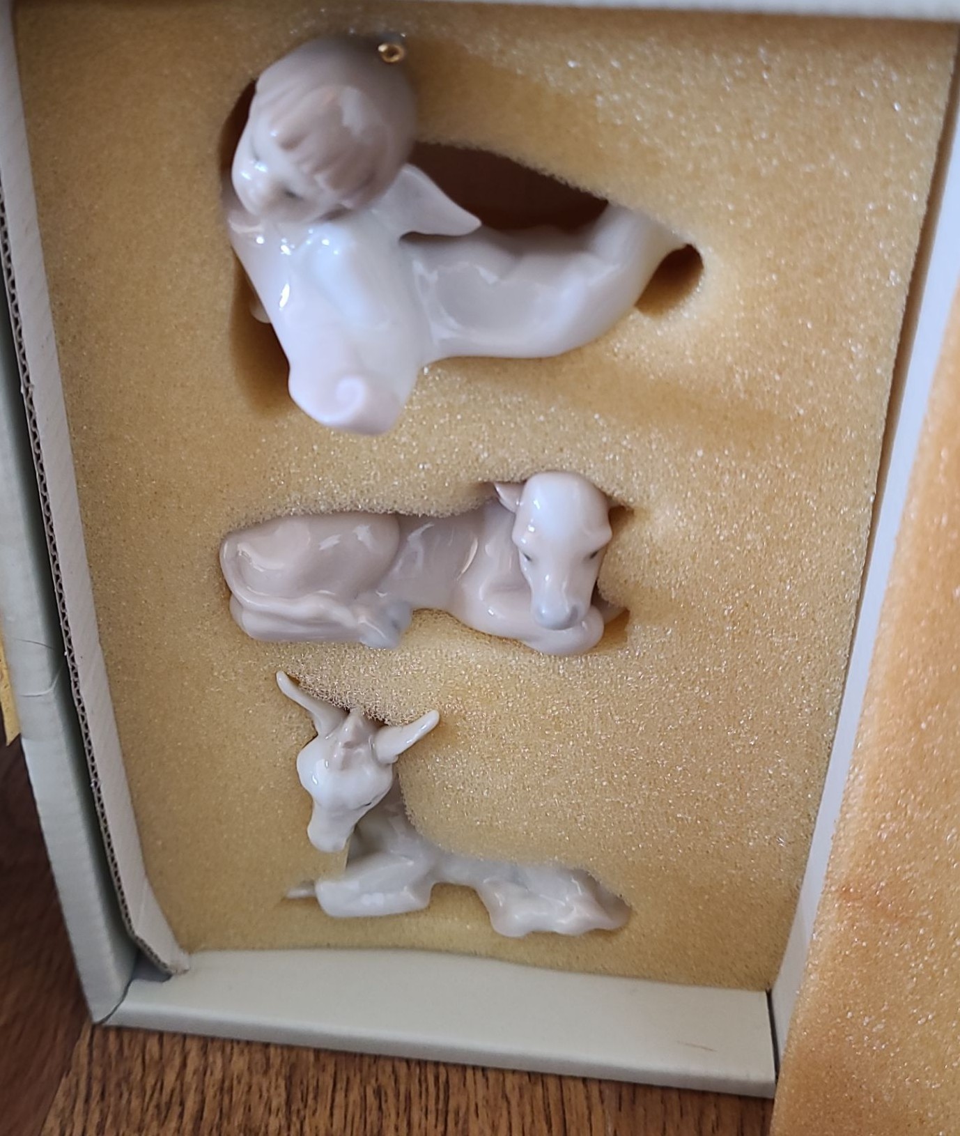 Lladro Decor: Key 6 W, 3.5 D, 1.5 T, Oval Box 3 W, 2 D, 1 T, Baby and Animal Ornaments