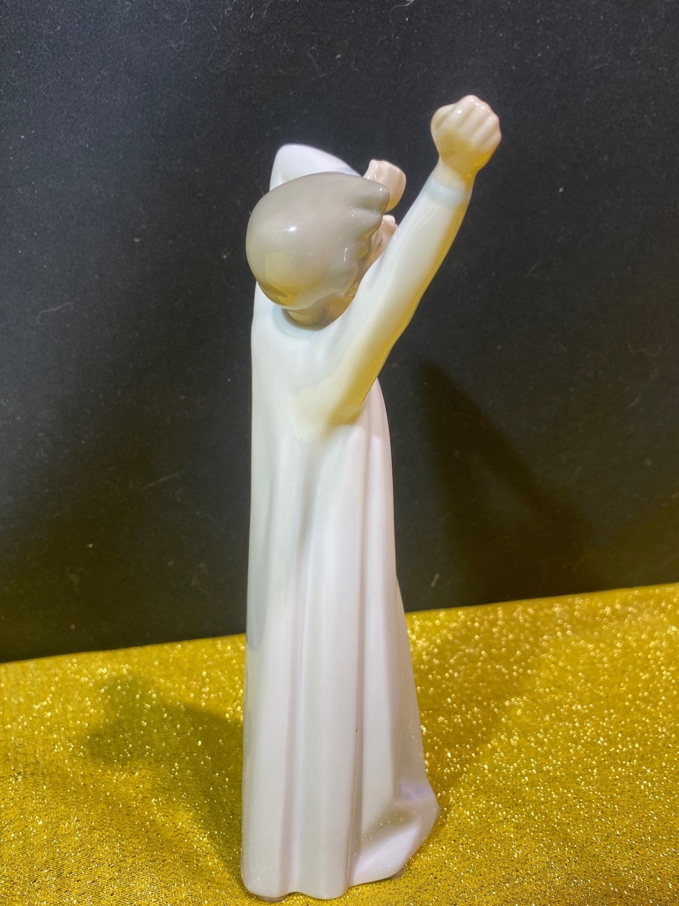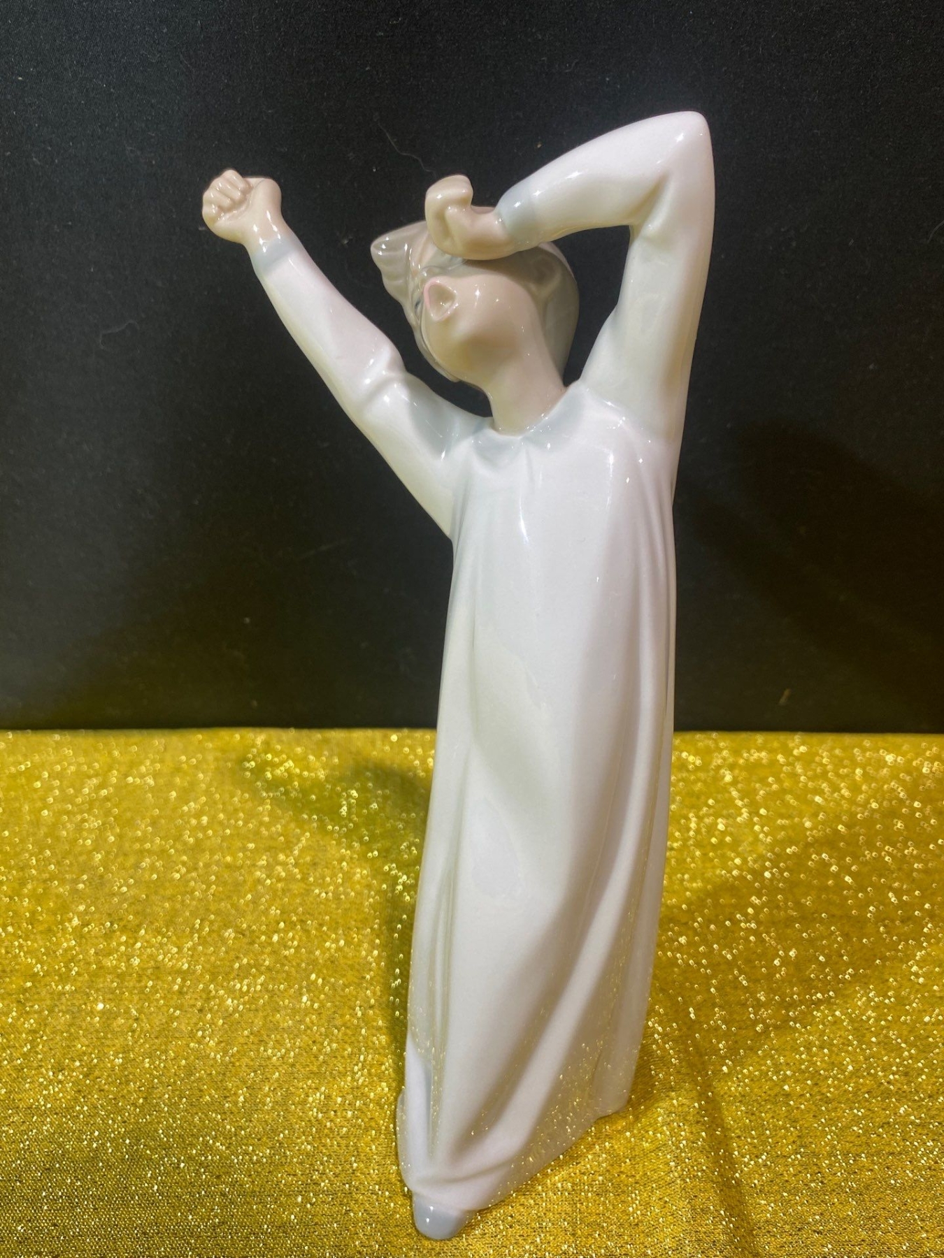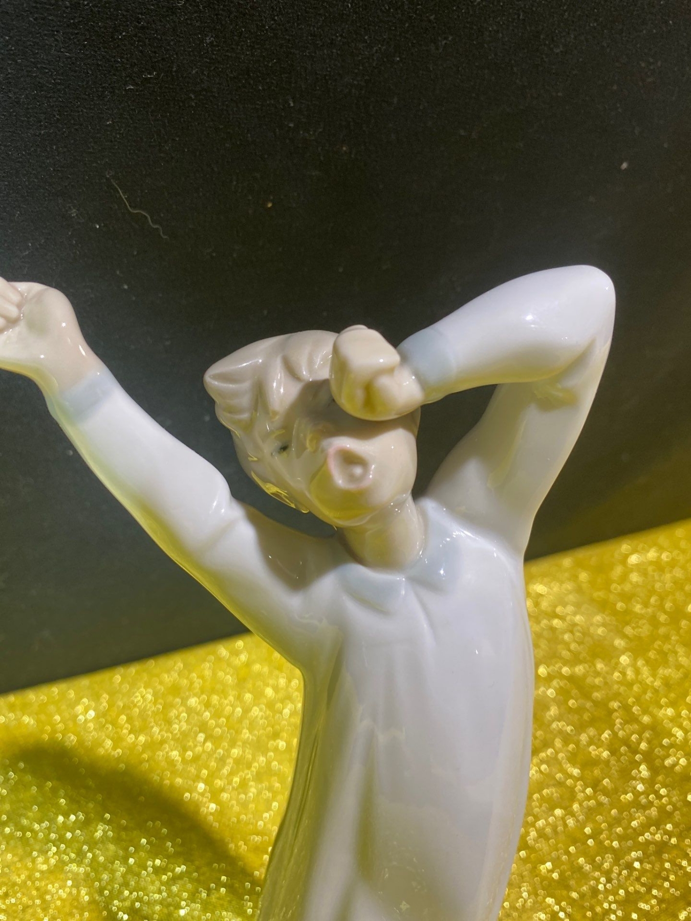 This Lladró porcelain figure, “Boy Yawning”, exemplifies the brand’s renowned artistry and delicate craftsmanship. Hand-painted with soft, lifelike detail, the figure captures the innocent charm and relaxed posture of a young boy in mid-yawn.