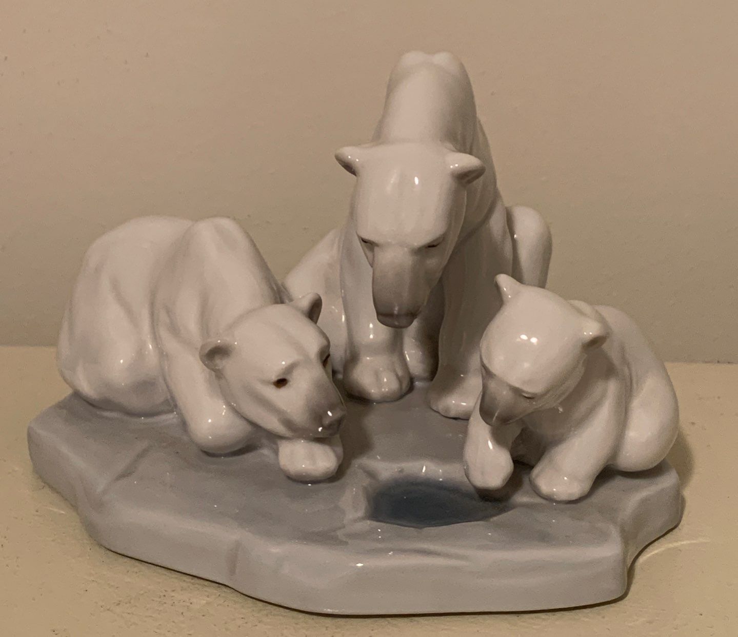 Lladro Porcelain Polar Bear Pack - Family Of Polar Bears Fishing 7x5