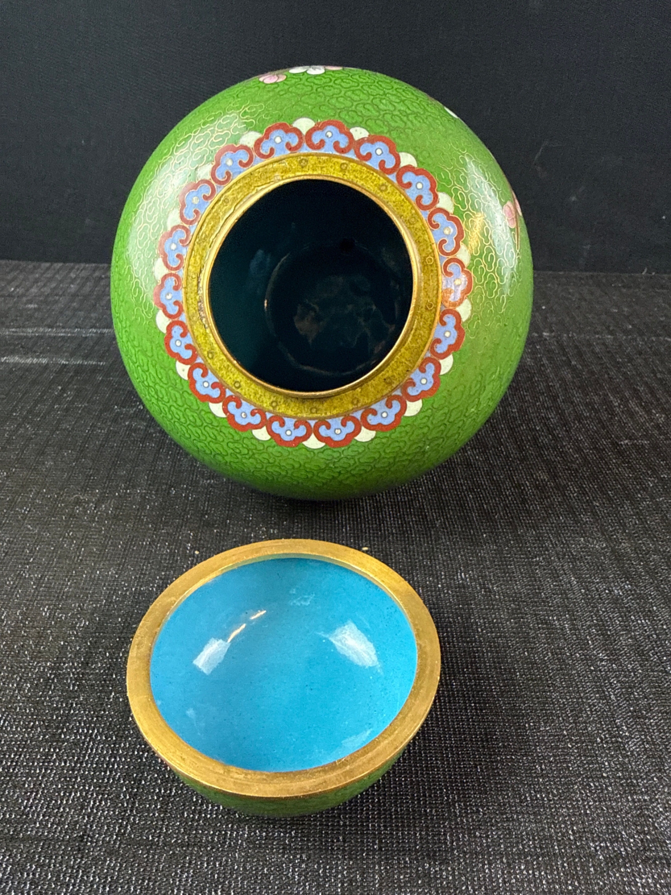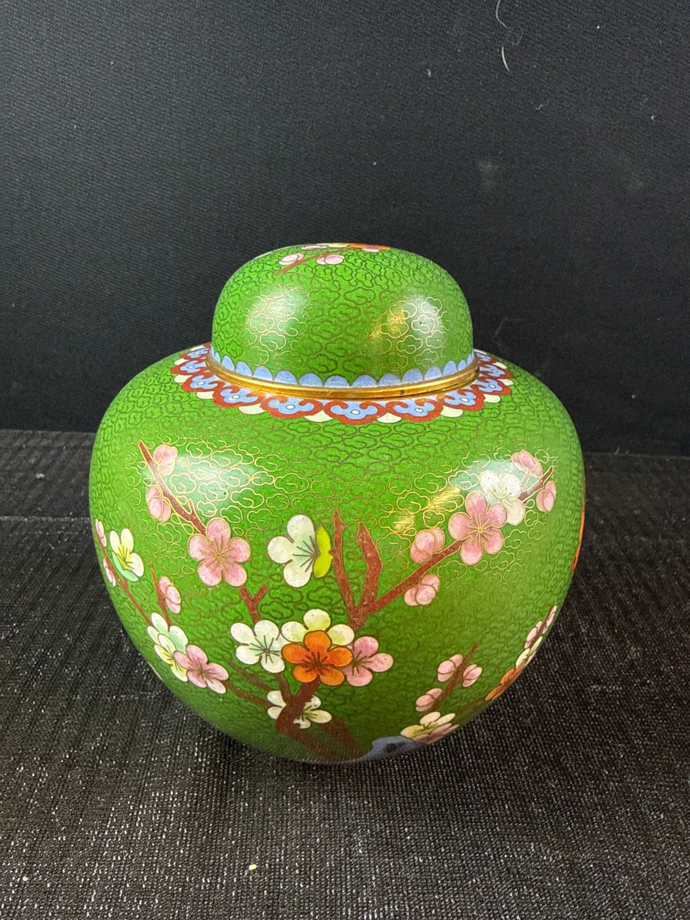 Lot 6 Vintage Chinese Enamel Ginger Jar with label 6.5”