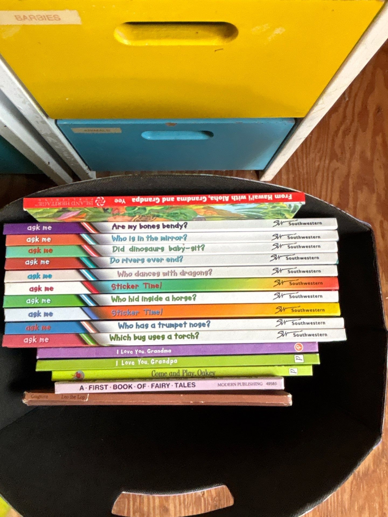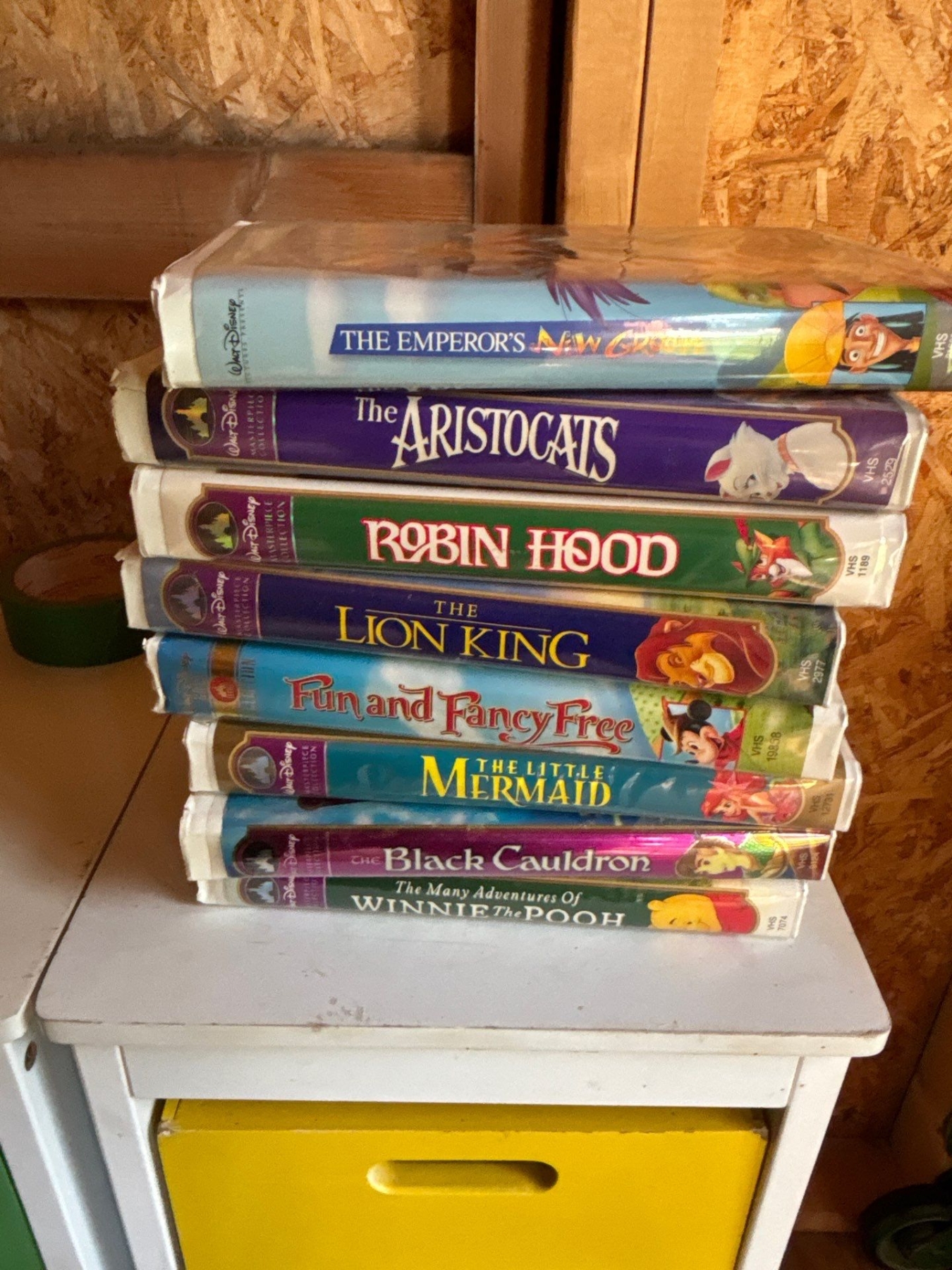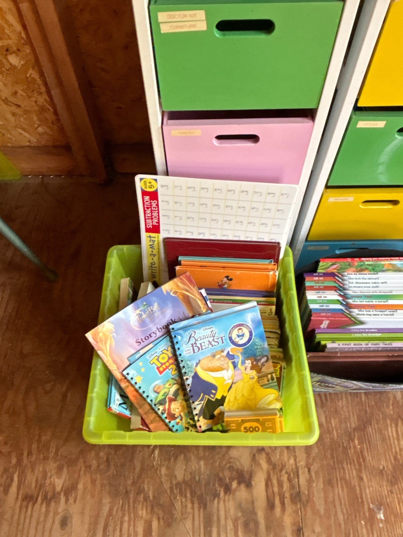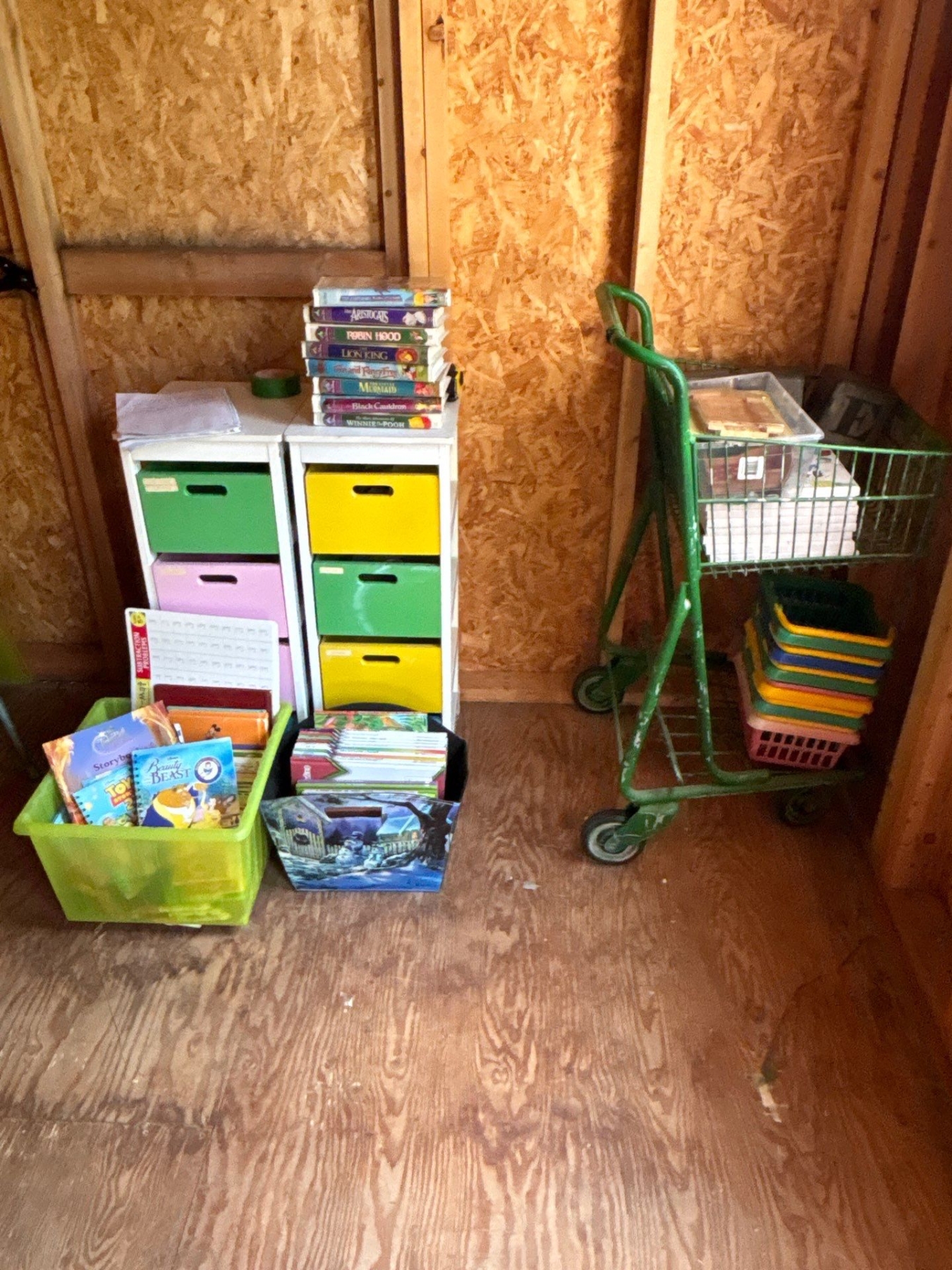 Lot Of Children's Books Shelves Shopping H32" L12" W12" Cart With Toys & Disney VHS Movies
