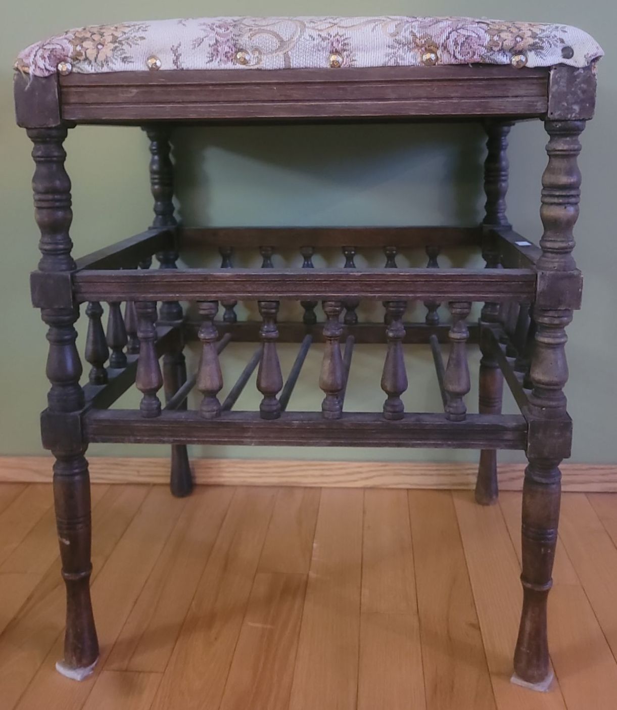 Lovely Antique Wooden Reupholstered Stool - 18W, 14D, 22T