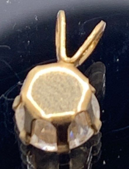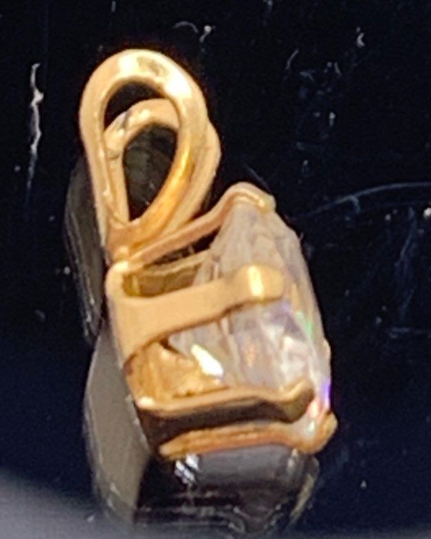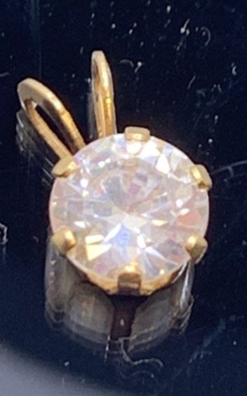 Lovely Gold Pendant w/ Colorless Stone, Weighs 0.6g; Illegible Stamp, Tests like 14k