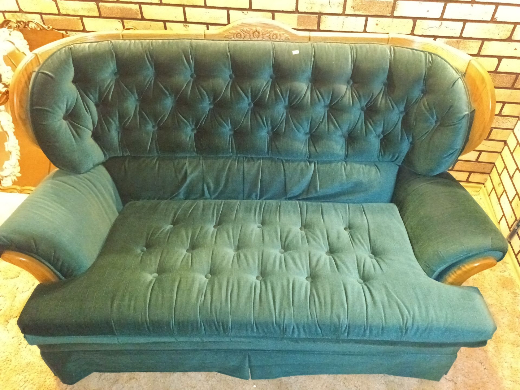 Lovely Green Velvet Sofa -- 62W., 36D, 39T