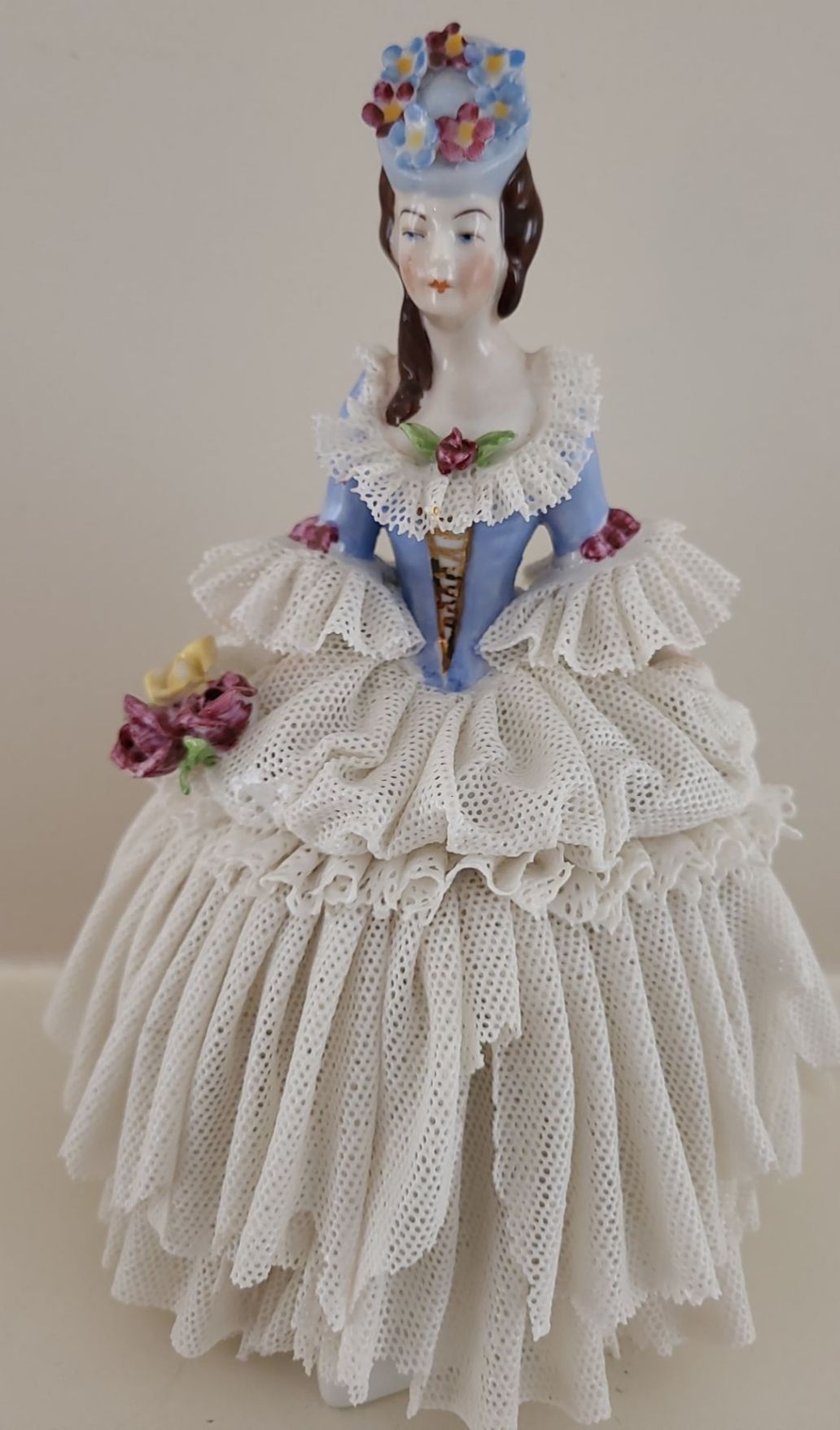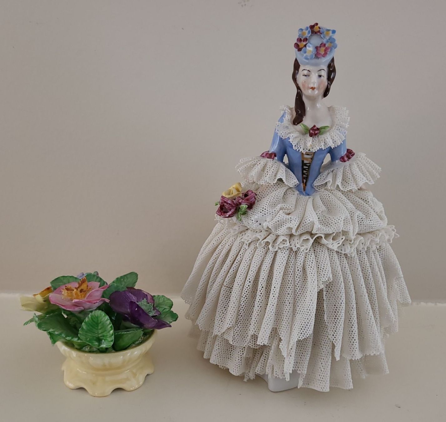 Lovely Porcelain Woman By Bavaria (7T) w/ Lovely Floral Bone China Arrangement By Coalport