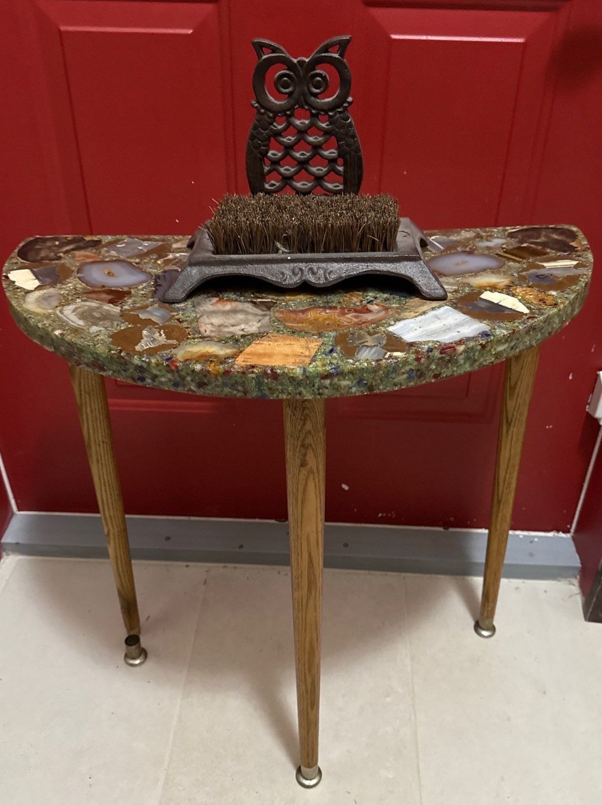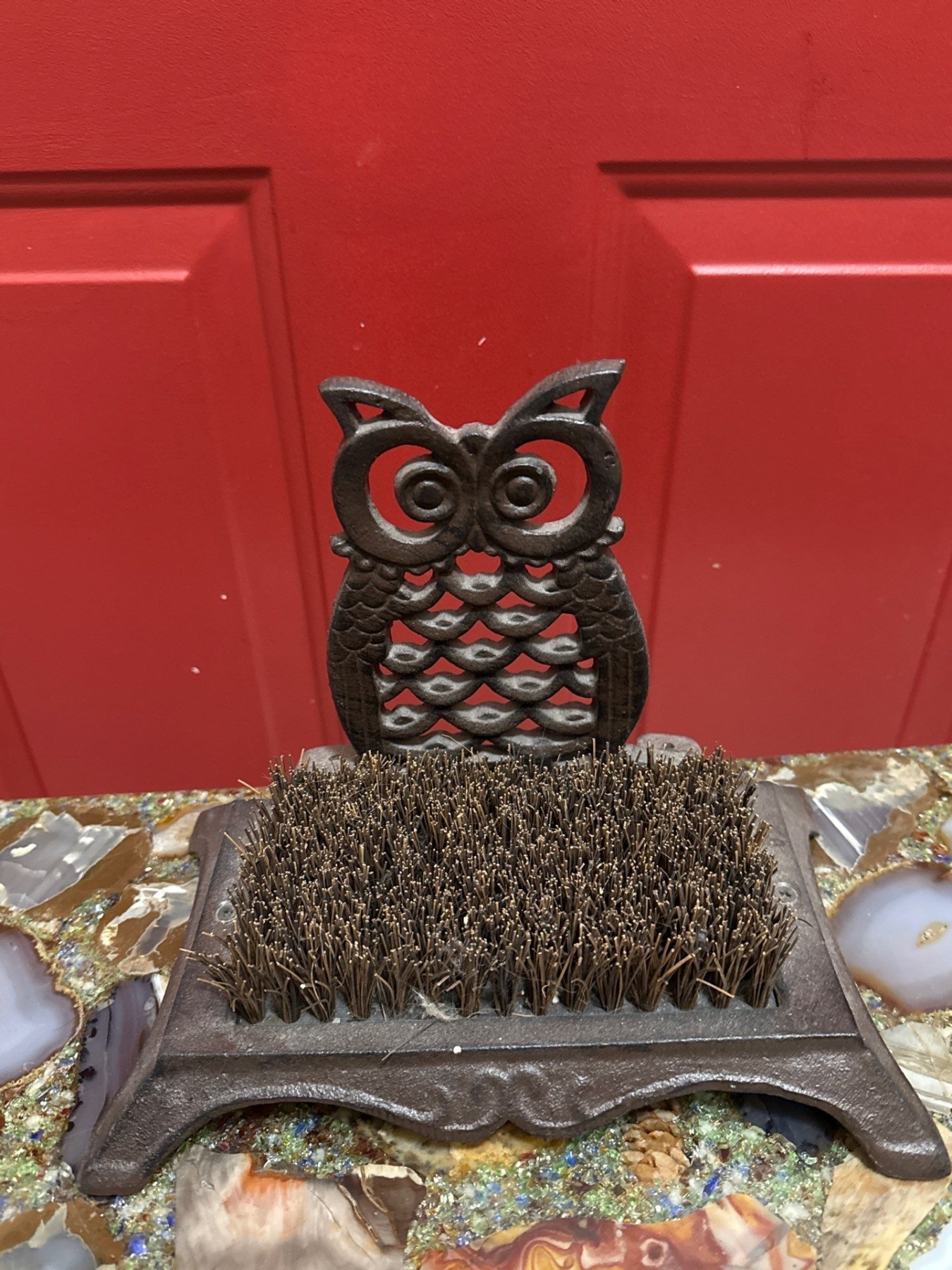 Lovely Specimen Side Table w/ Wood Legs (23W, 23T) w/ Cast Iron Owl