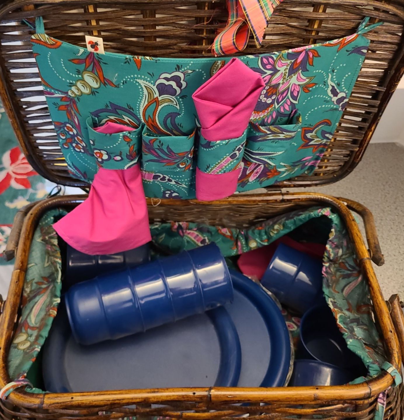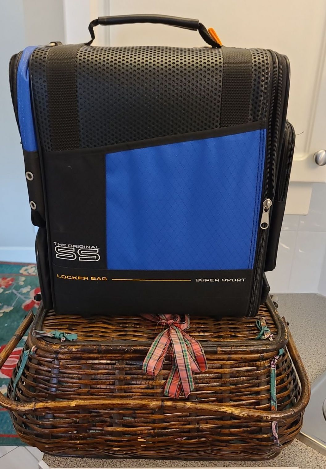 Lovely Wooden Basket w/ Picnic Kit Inside & Ogio Sport Locker Bag