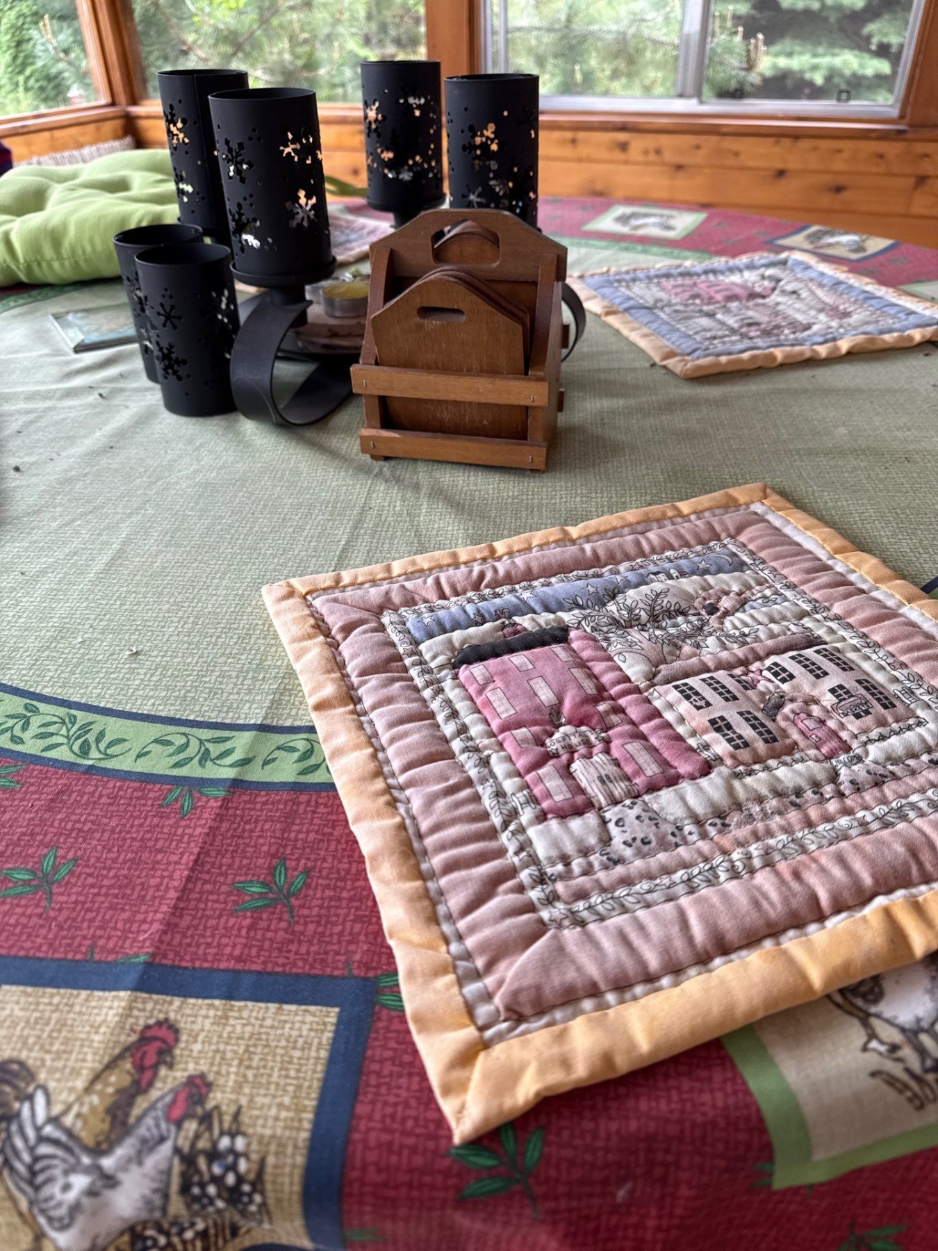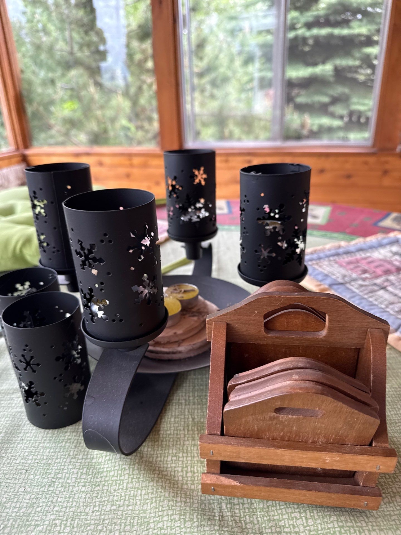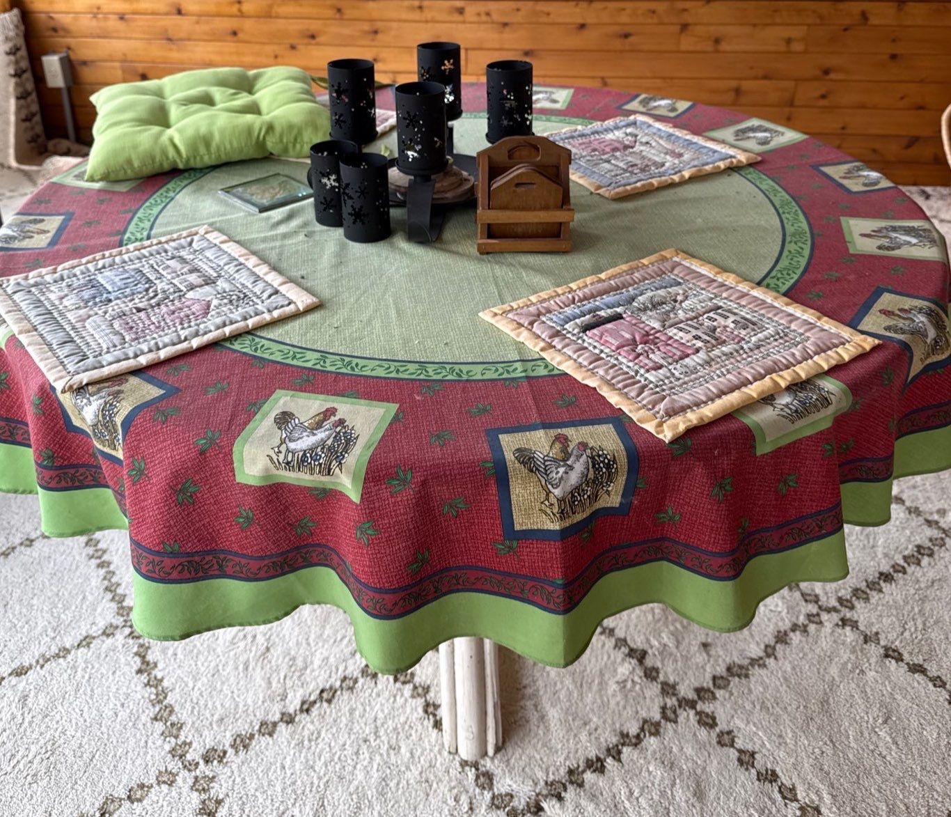 Lovely Wooden Round Table w/ Table Contents - Table is 47W, 26.5T