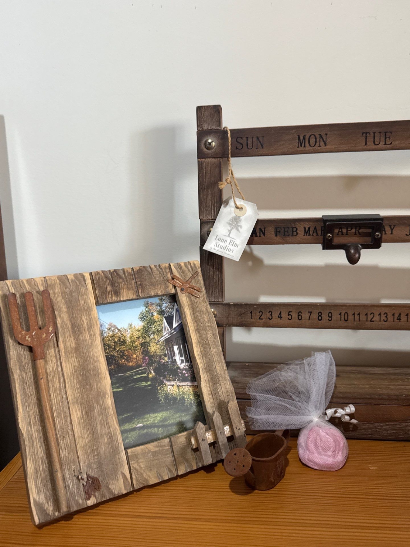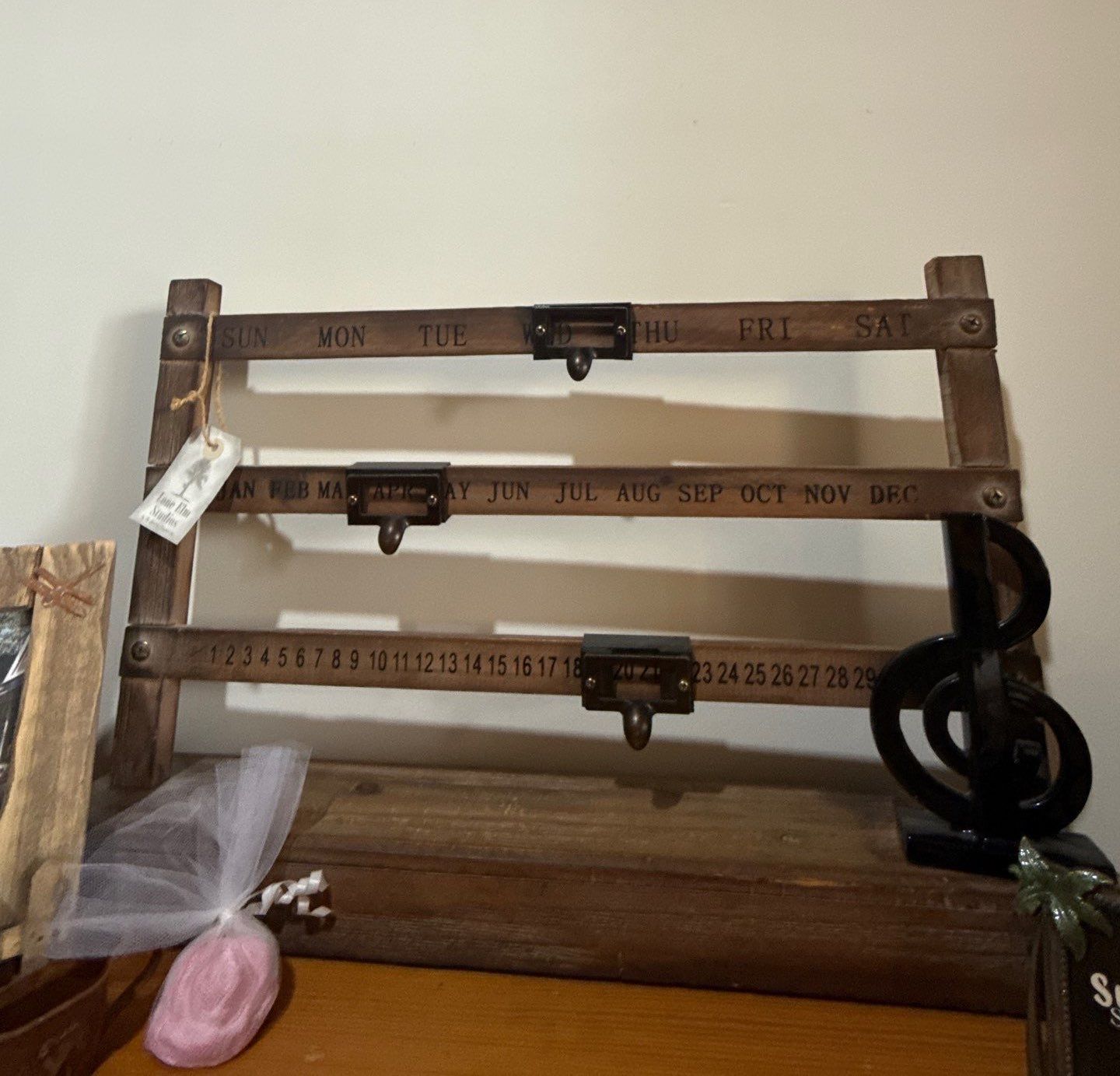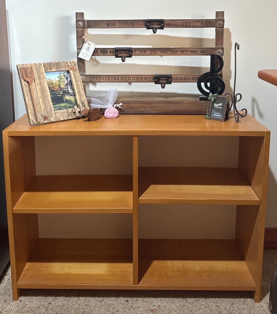 Lovely Wooden Shelf w/ Rustic Decor Items - Shelf is 31.5W, 22.5T