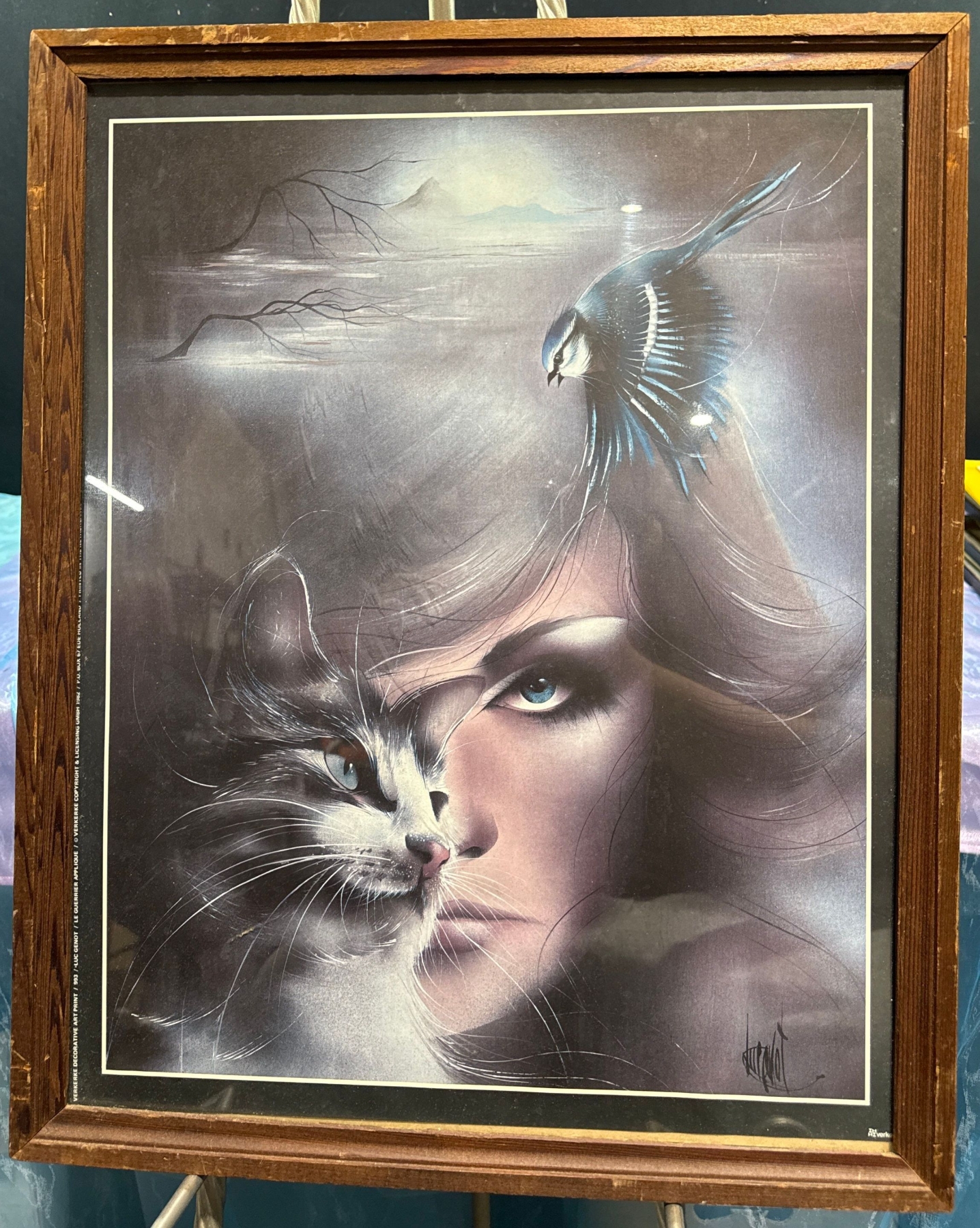 Luc Genot Portrait with Cat and Blue Bird Print 993 15Wx19H