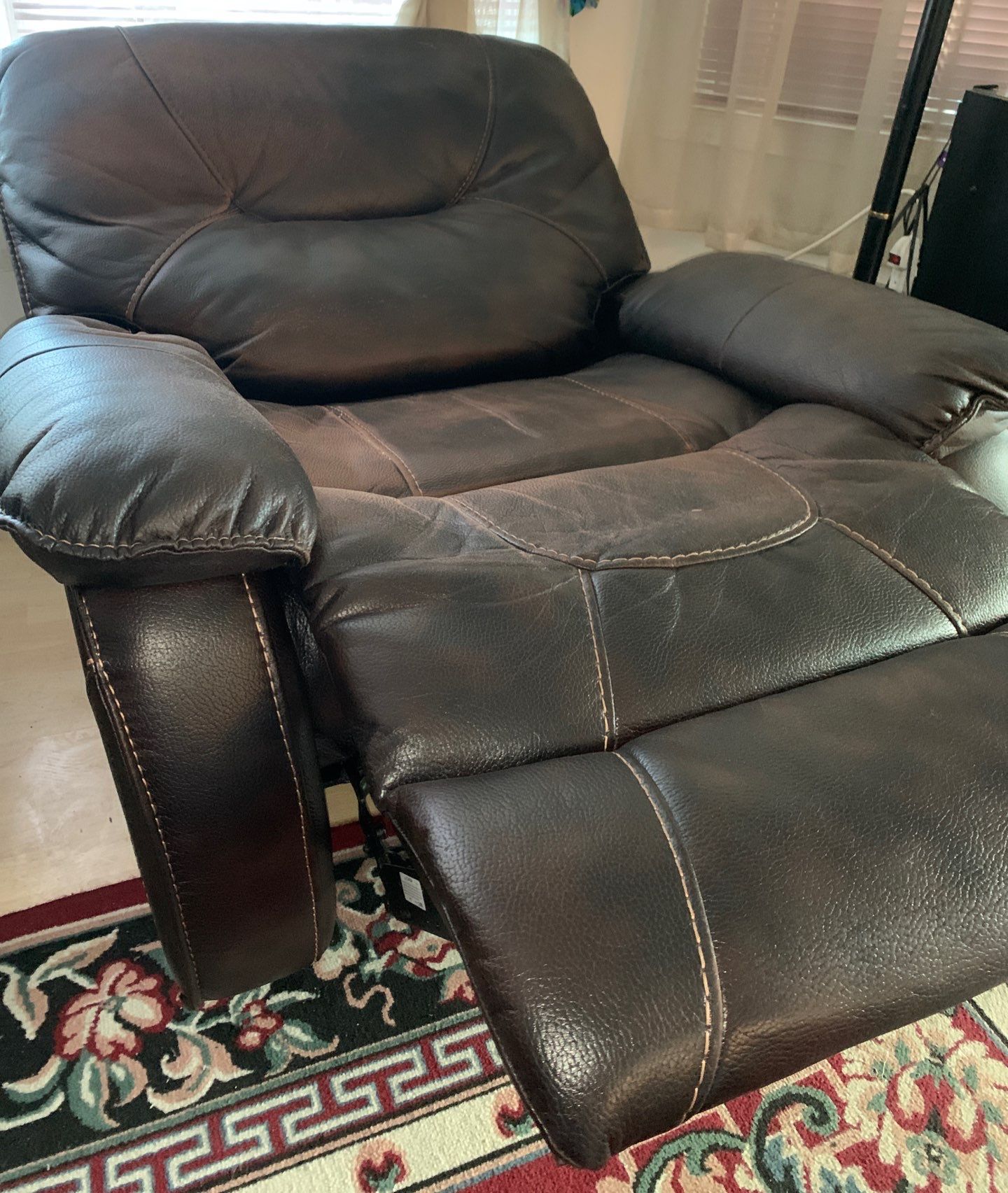 Lux Leather Overstuffed Electric Recliner 42x42x42 - Complete Horizontal Position
