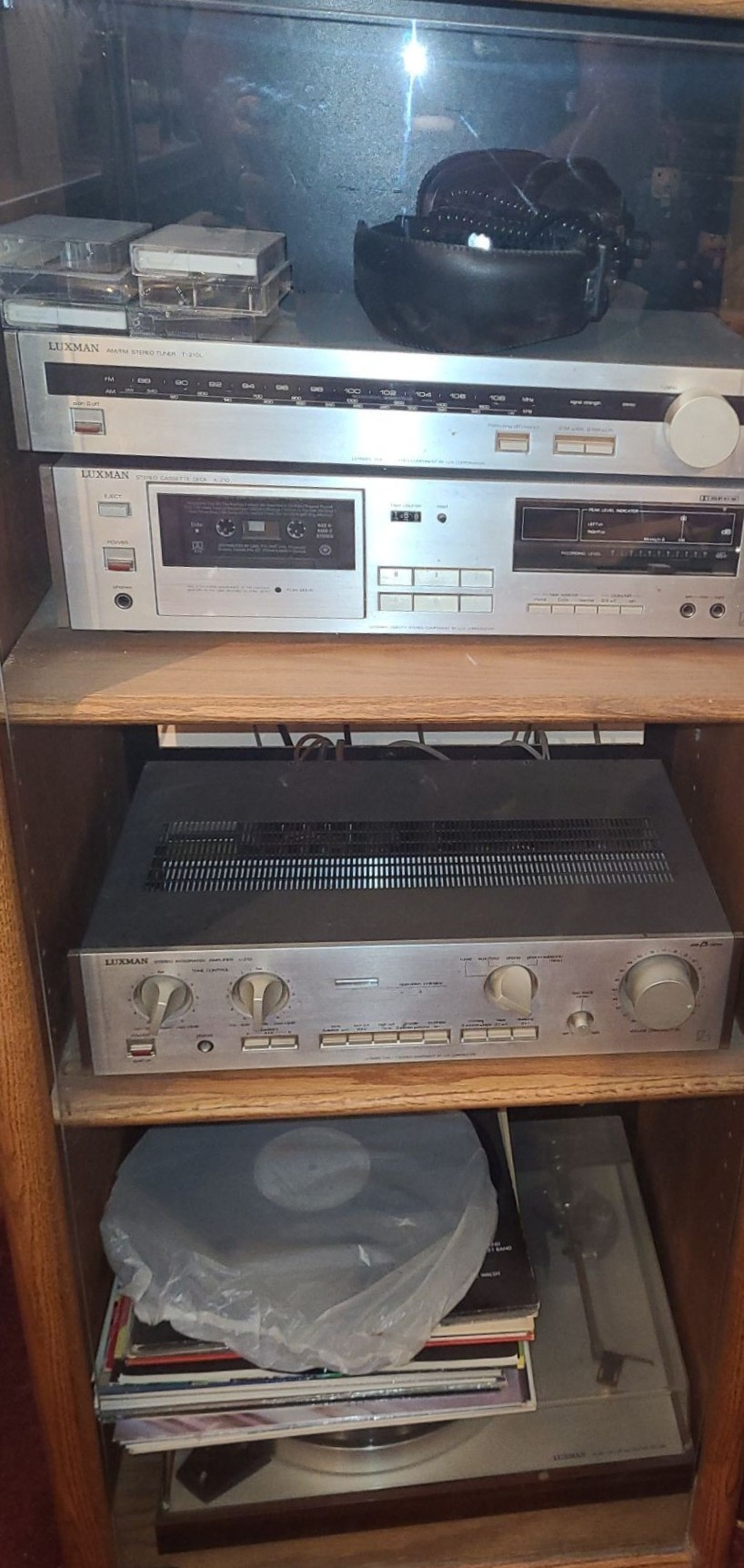 Luxman Stereo: Cassette K-210, Tuner T- 210L, Amp L-210, Turntable, Stand: 21 W 17 D, 48 T, Records