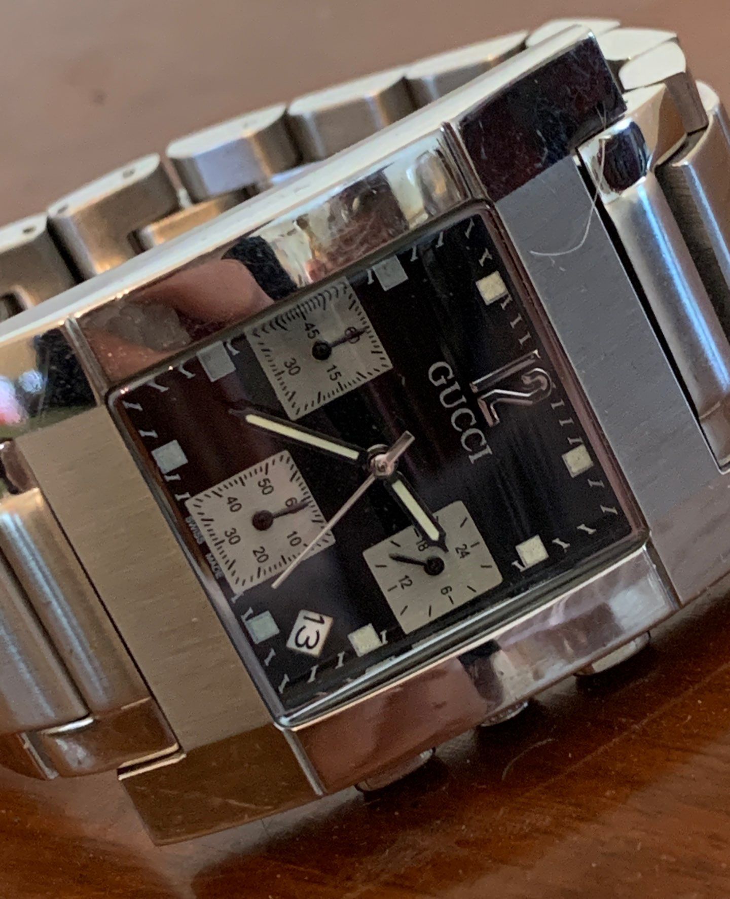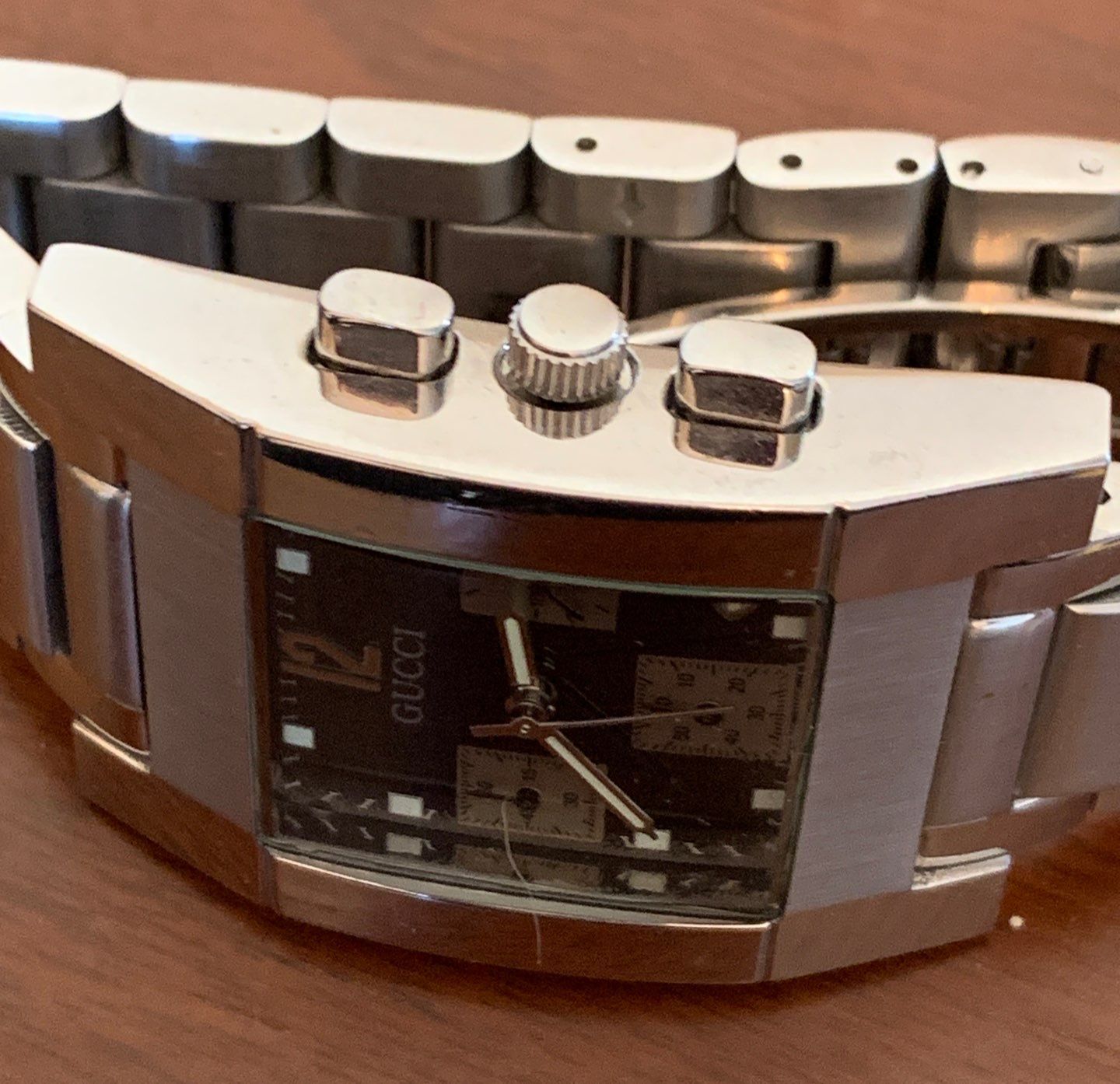 Luxury GUCCI Time Piece 7700 Series Swiss Made Chronograph Serial 0035-818 Stainless Steel Design