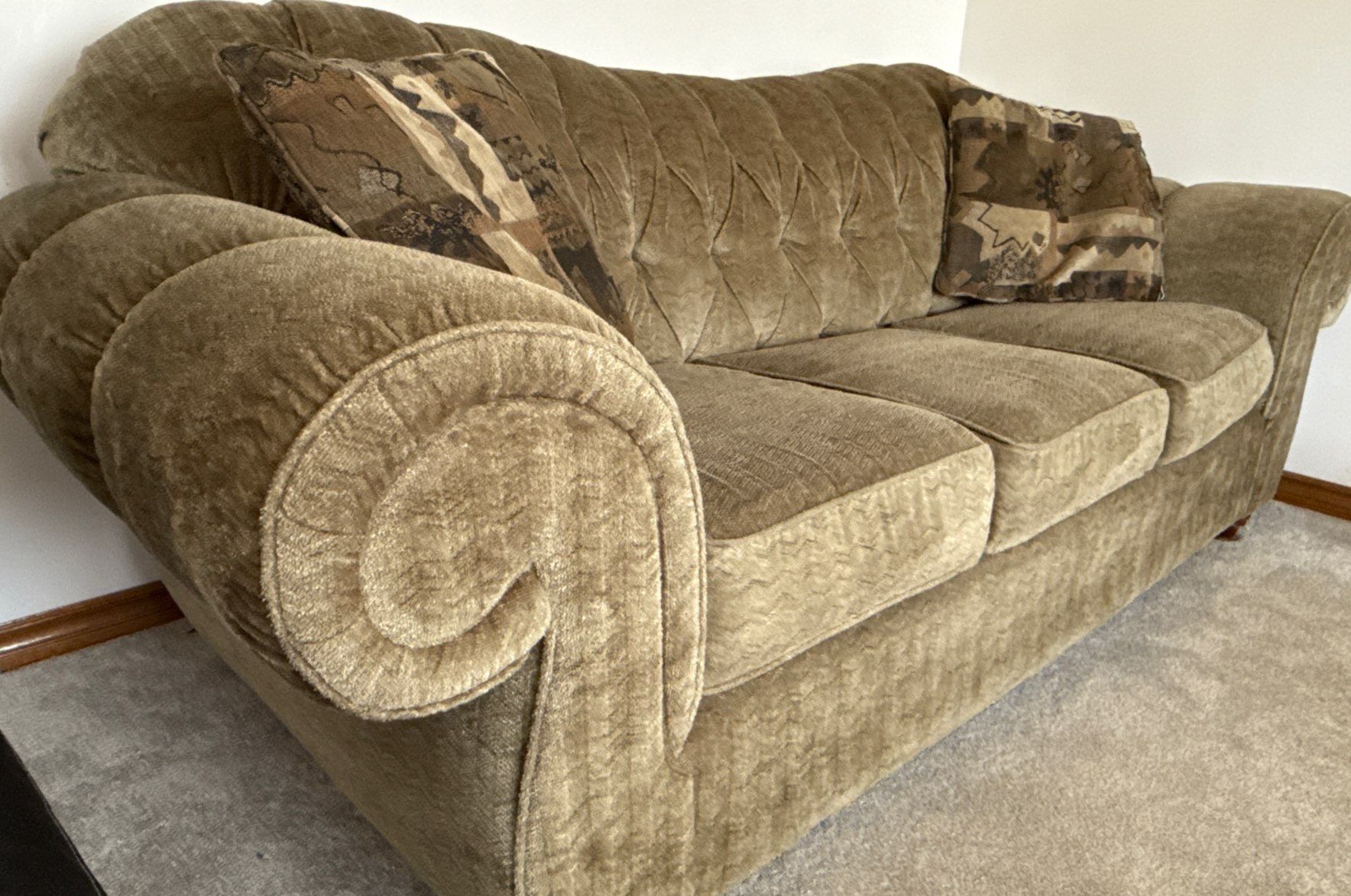 Luxury Oversized Plush Sofa - Tufted Olive Upholstery 83x41x40 3 Seater