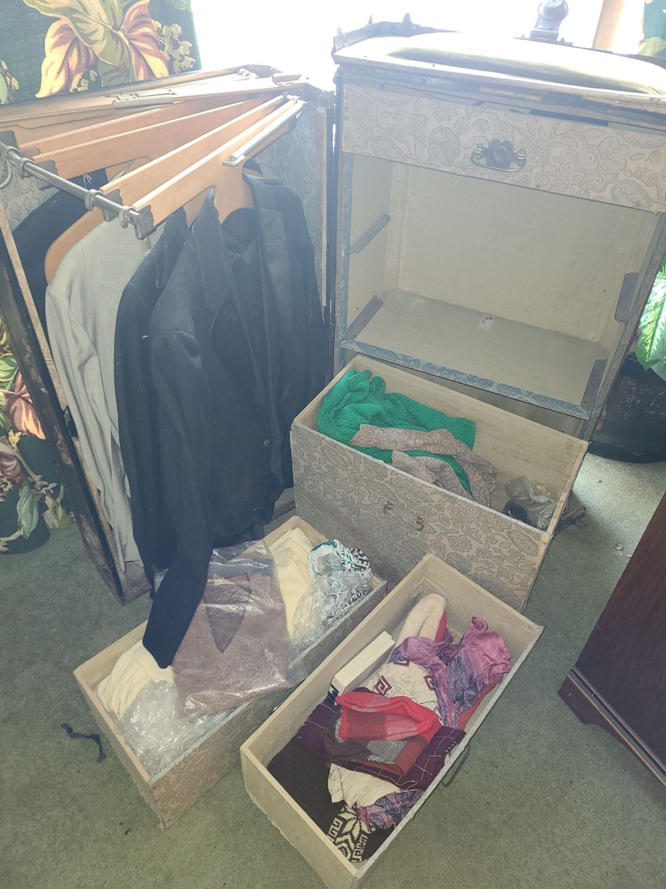 M Langmuir Green Antique Steamer Trunk Wardrobe, all Drawers Included 40 L, 23 T,  20 W When Flat