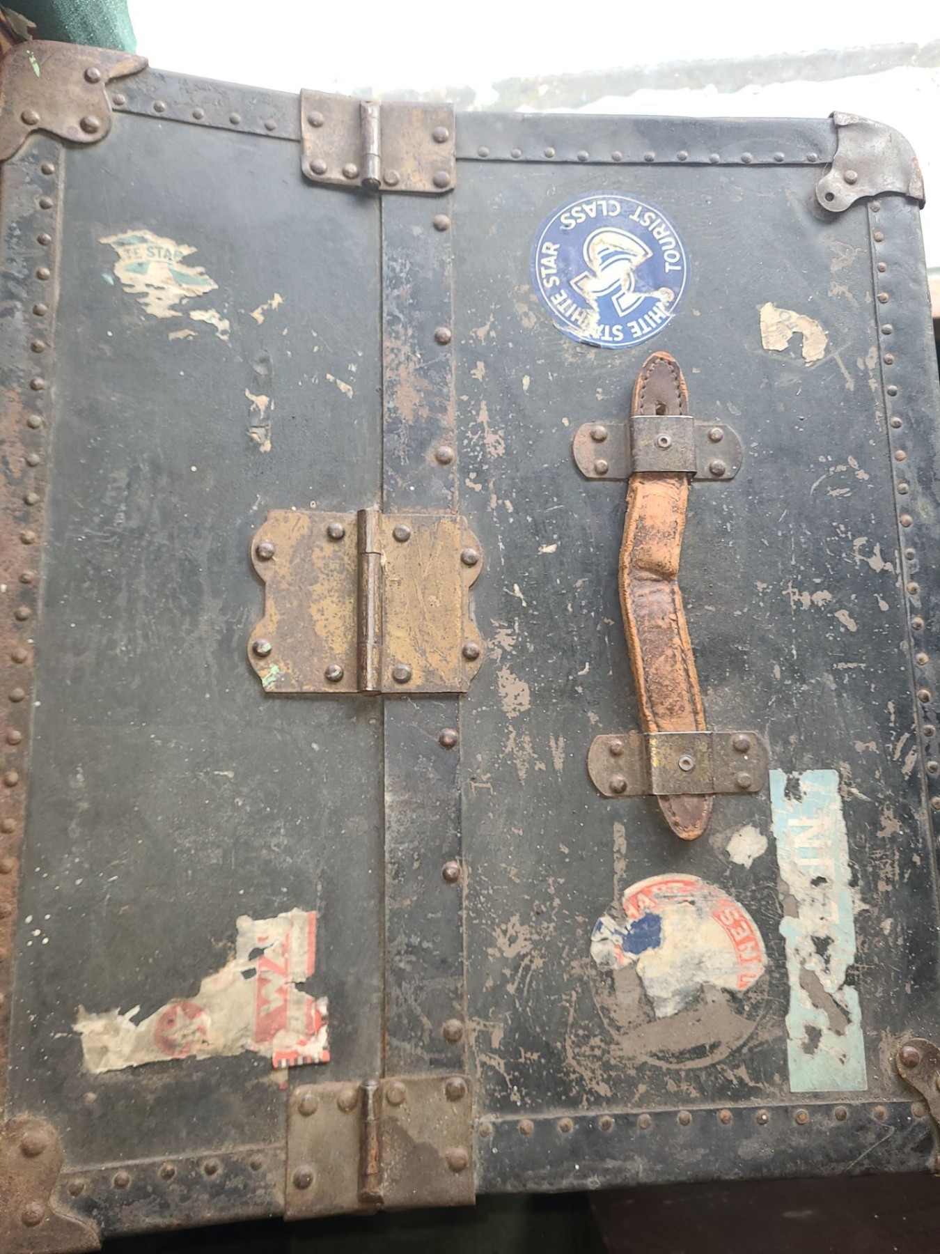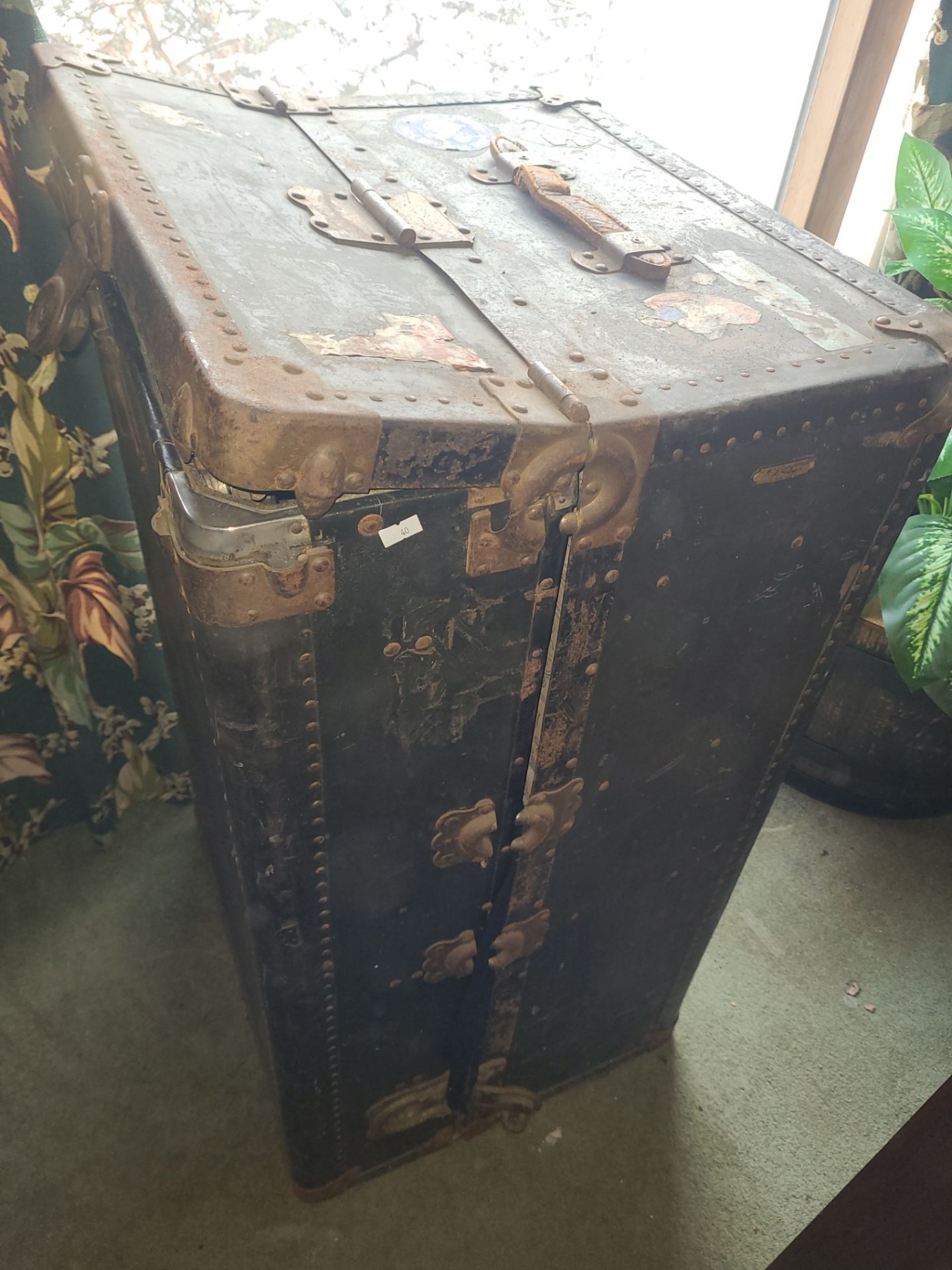 M Langmuir Green Antique Steamer Trunk Wardrobe, all Drawers Included 40 L, 23 T, 20 W When Flat