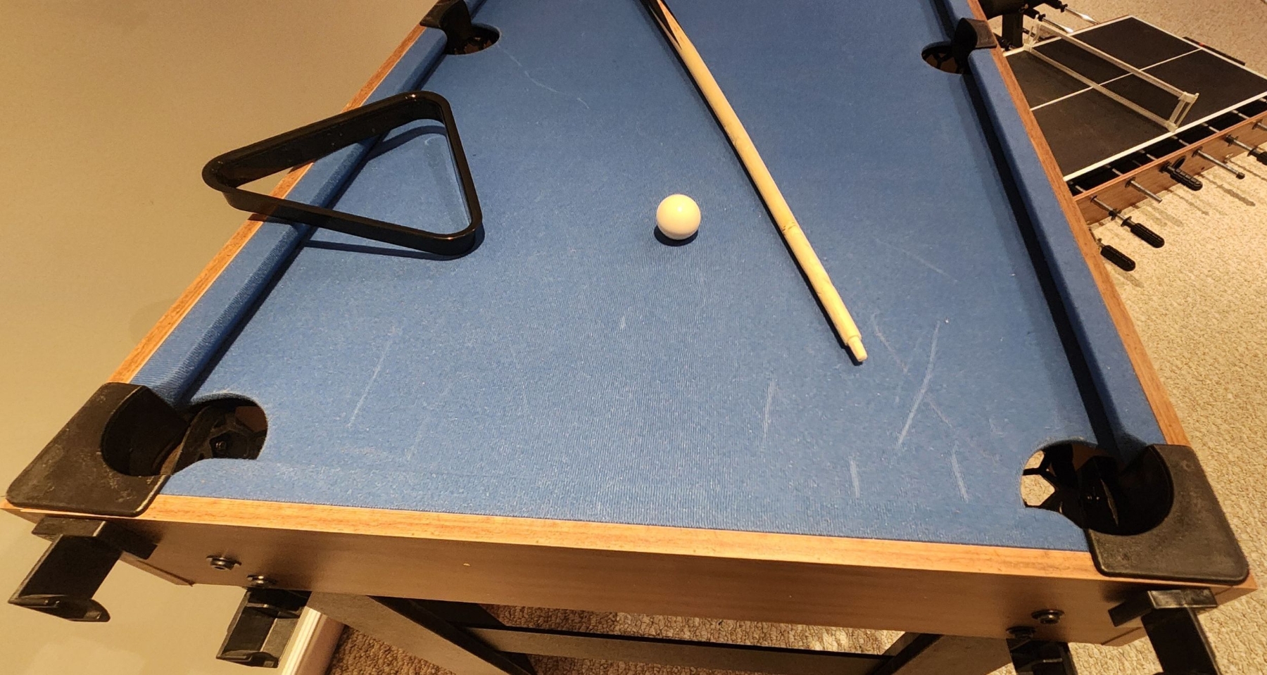 Most accessories are included, The pool cues are not included and the ping pong paddles are also not included (MIA) The compact footprint makes it ideal for basements, rec rooms, or smaller spaces.