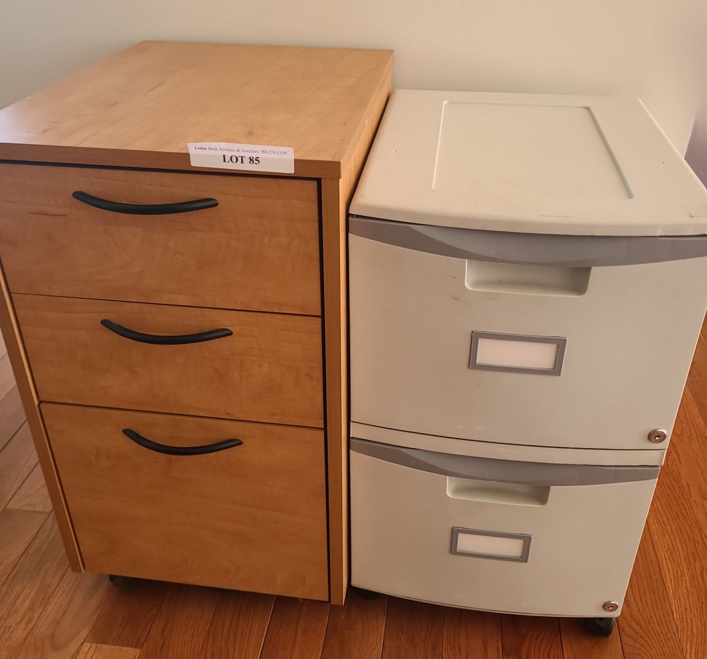 MDF 3 Drawer w File Cabinet 16 w, 28 h, 20 d.  Plastic 2 Drawer Filing w Key 14 1/2 w, 26 h, 18 d