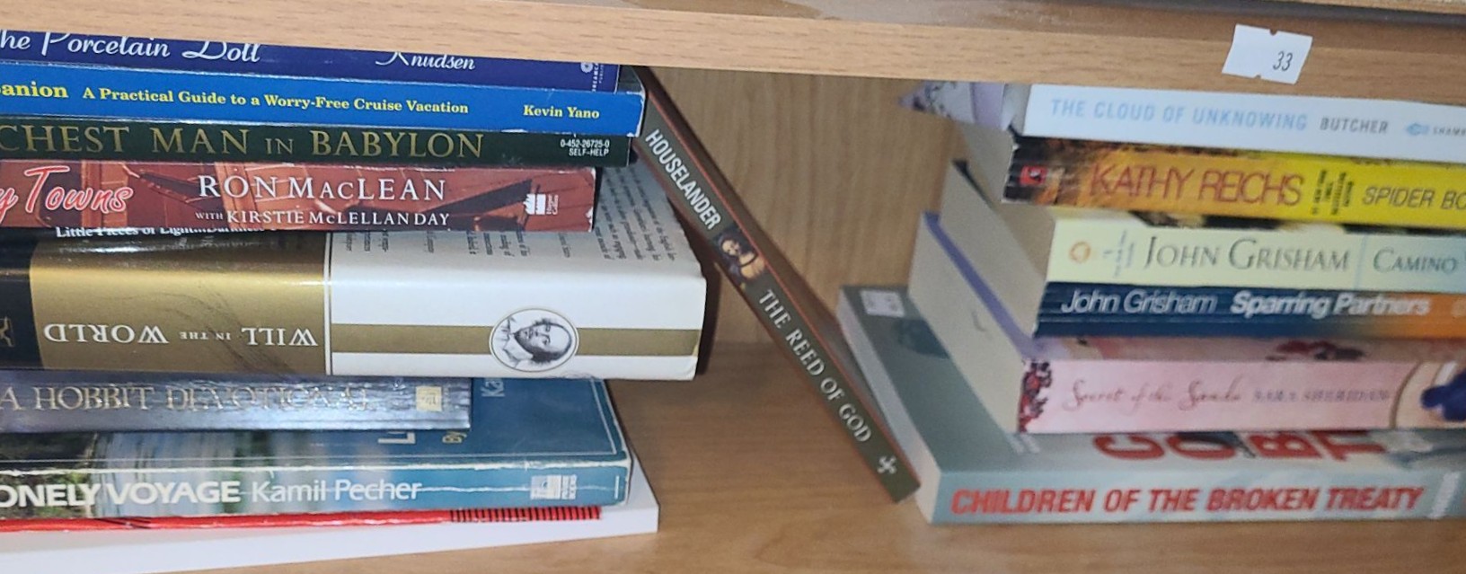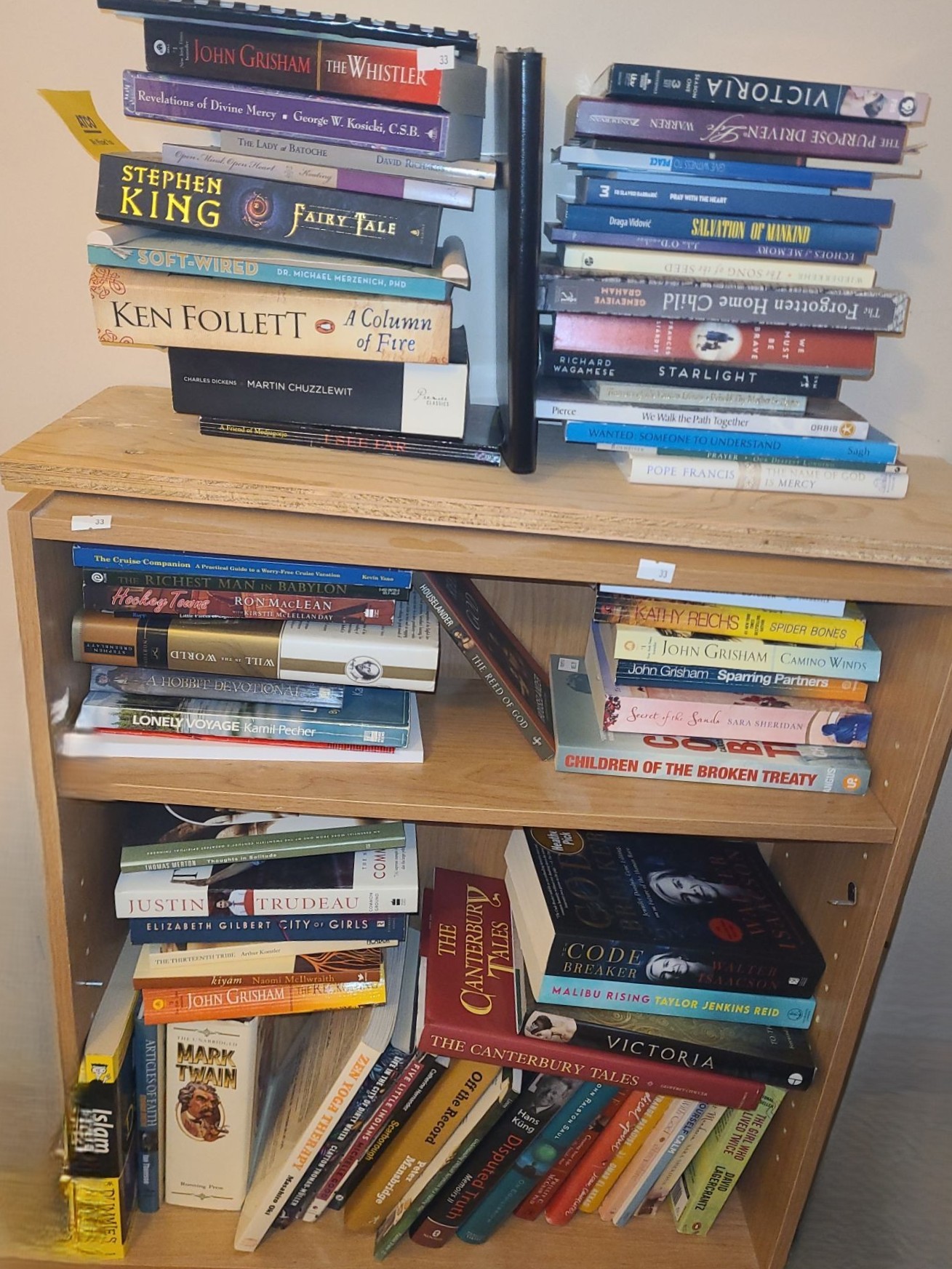 MDF Bookcase 24 W, 8 D, 30 T w/ Books Including: John Grisham, Stephen King, Mark Twain and More!