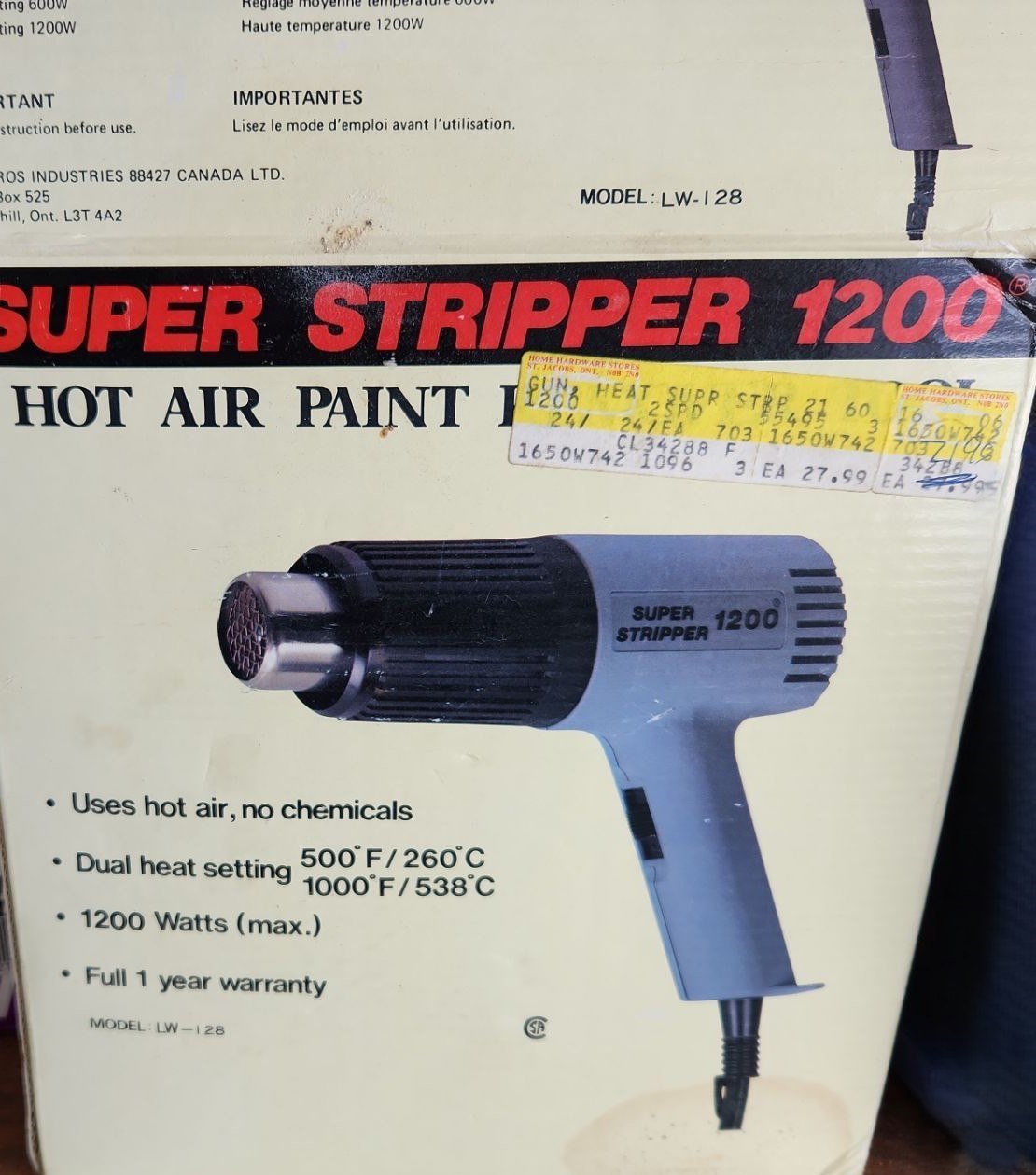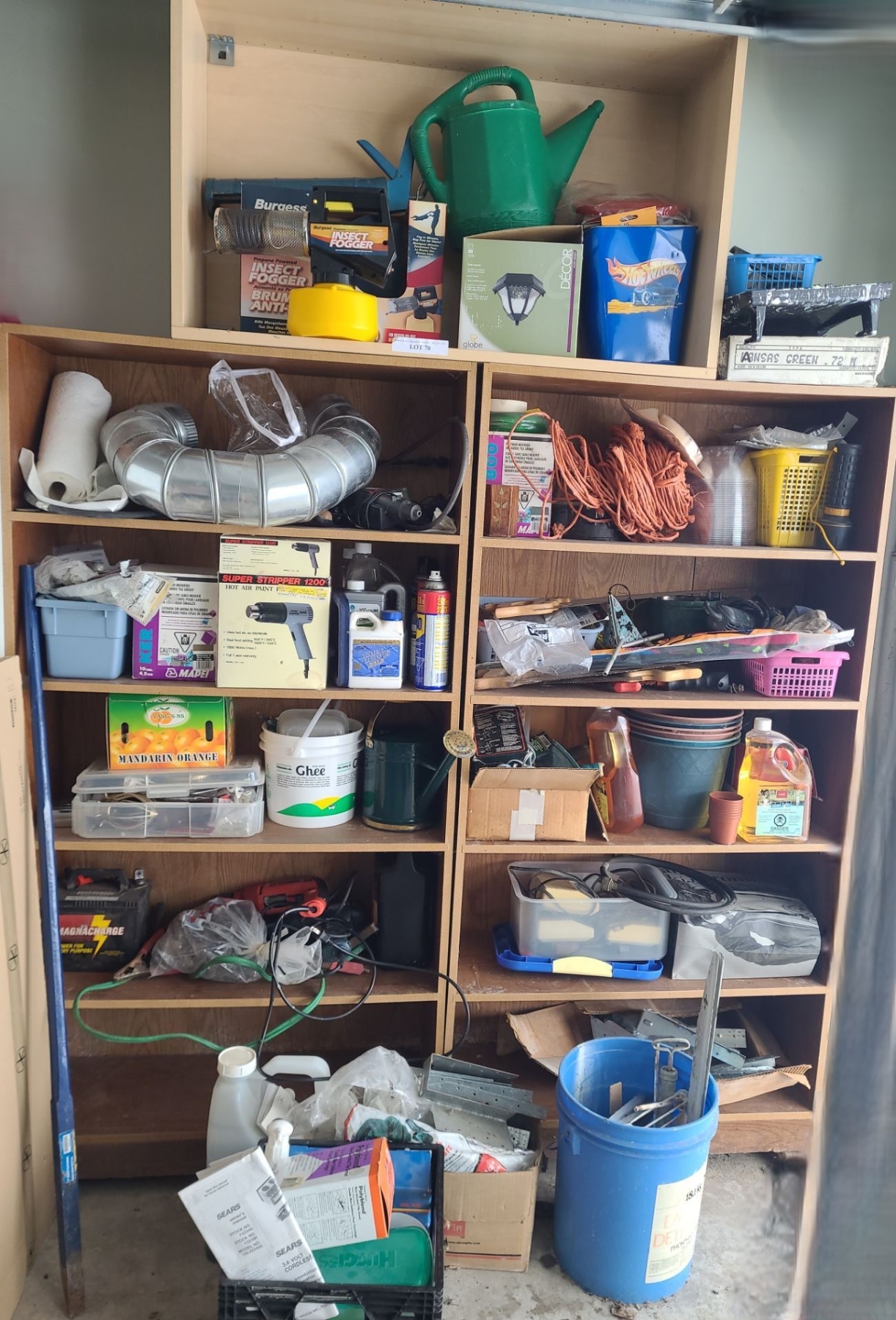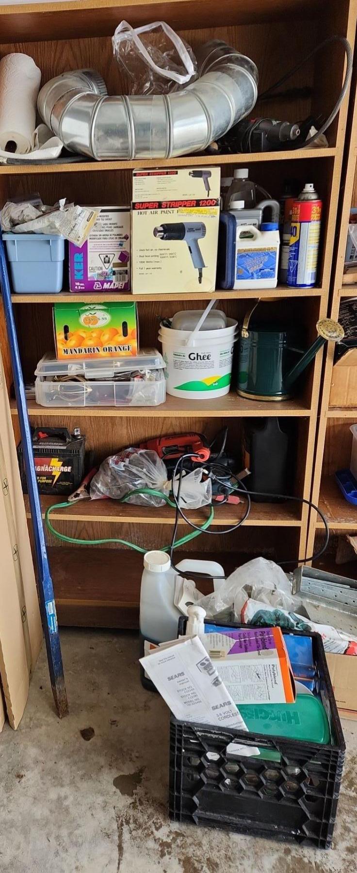 Bookcases: 33 w, 65 h, 12 d (each), B&D DR 220 Electric Drill and King Canadian 8309 Electric Drill, Superstripper 1200 Hot Air Gun