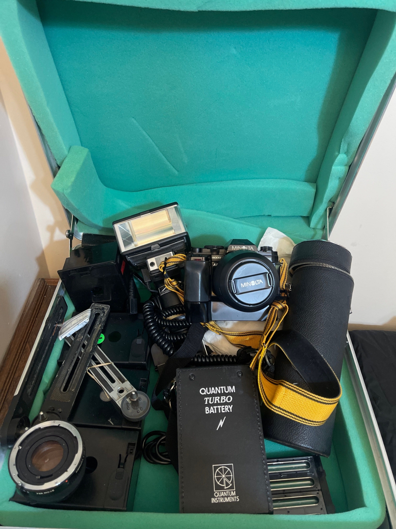 MINOLTA MAXXUM 9000 w/ Assorted Photography Accessories & Protective Cases
