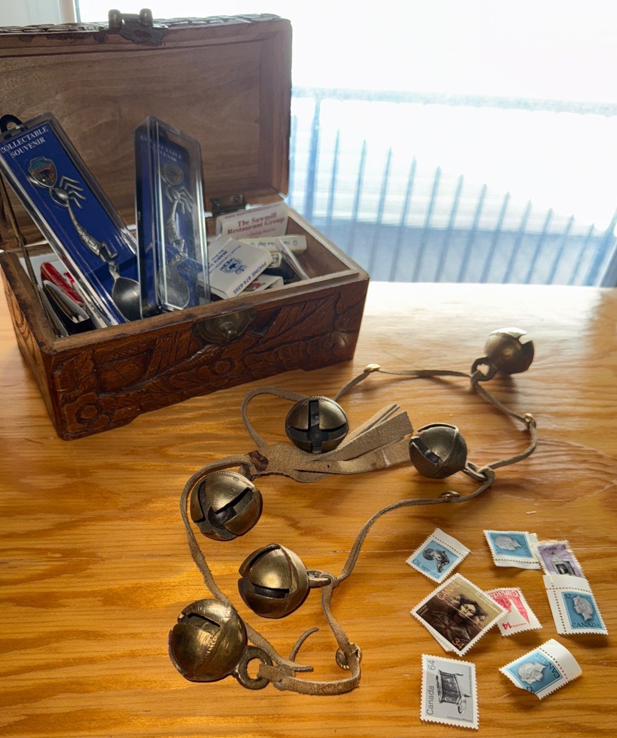 MISC Home Finds - Antique Sleigh Bells Stamps Decorative Spoons & Match Collection
