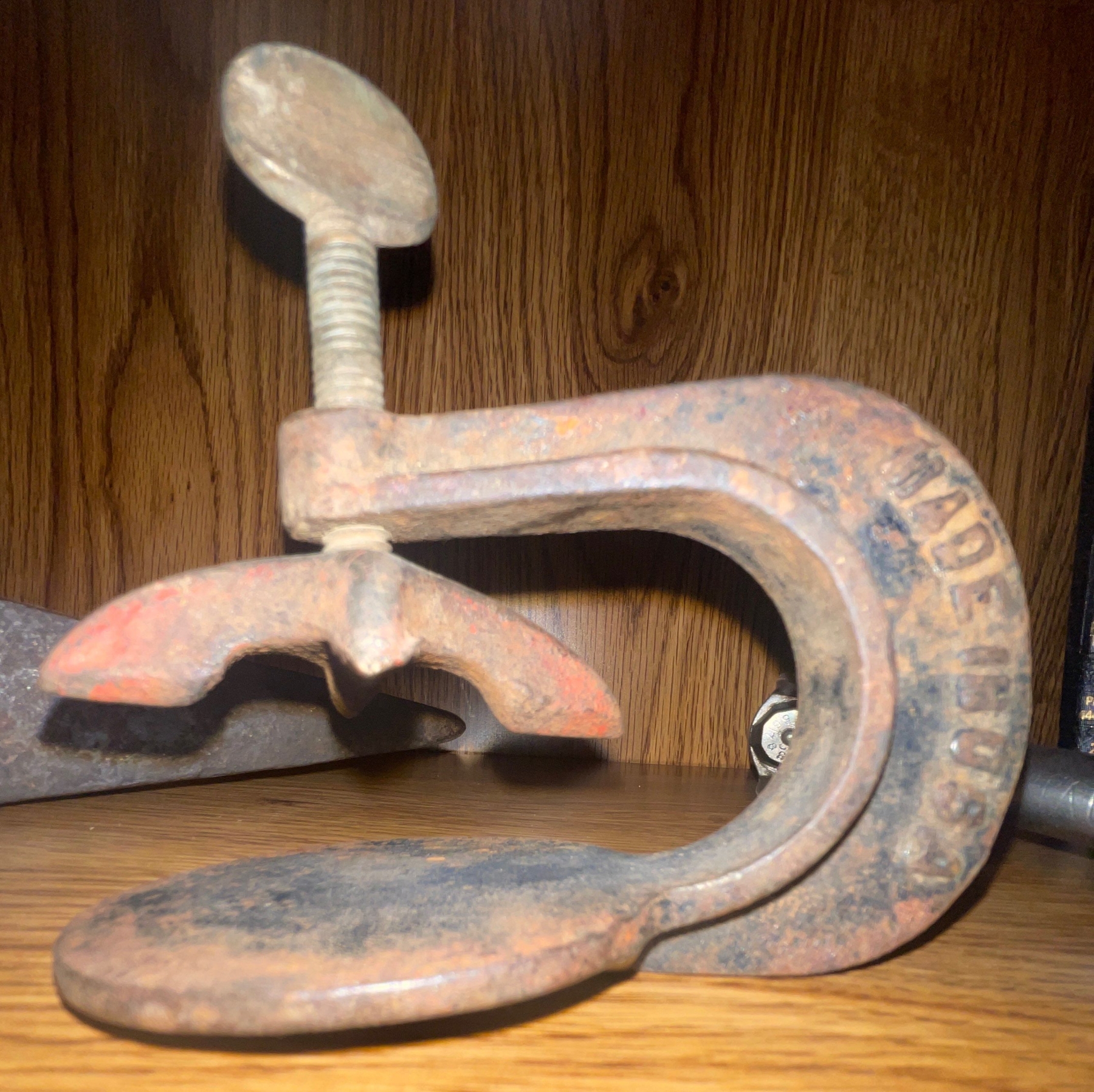 Made in USA Vintage Shaler Iron Hand Clamp Tire Repair, Keen Kutter Saw Set & Cast Iron Railway Hammer Head ++Books
