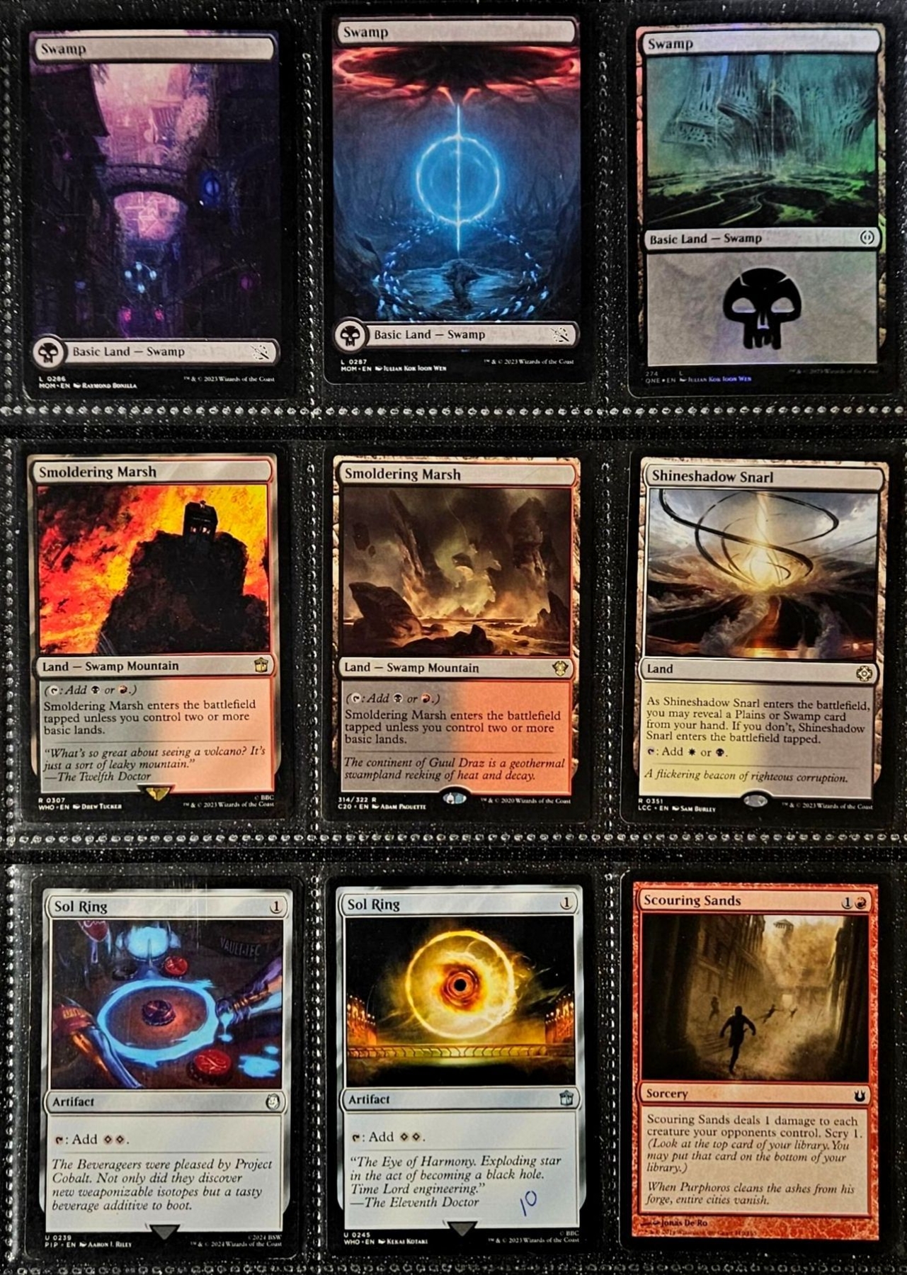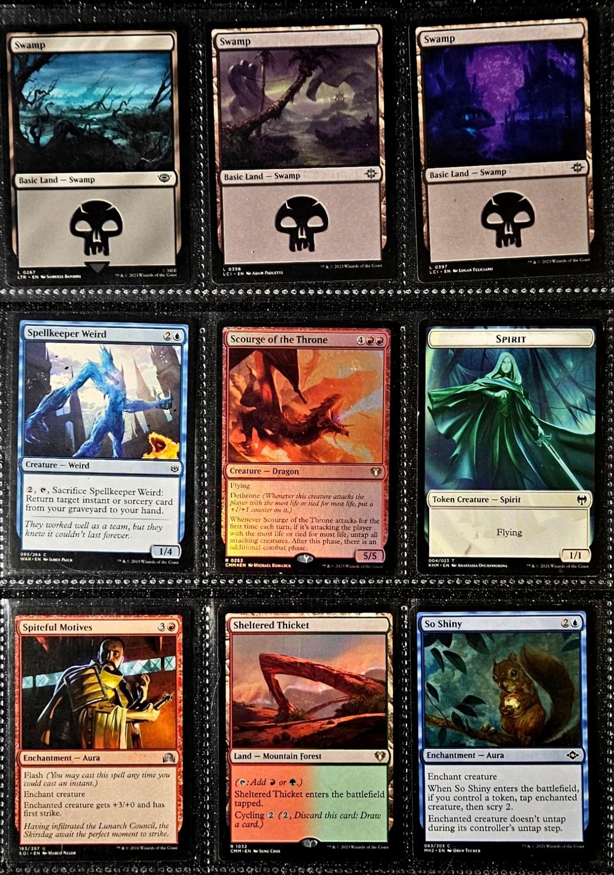 Set of three binder sleeves may contain any rarity or variant of cards. Refer to photos of items in listing for specific cards.