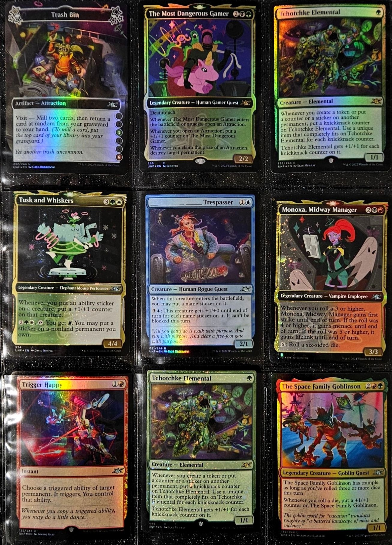 Set of three binder sleeves may contain any rarity or variant of cards. Refer to photos of items in listing for specific cards.